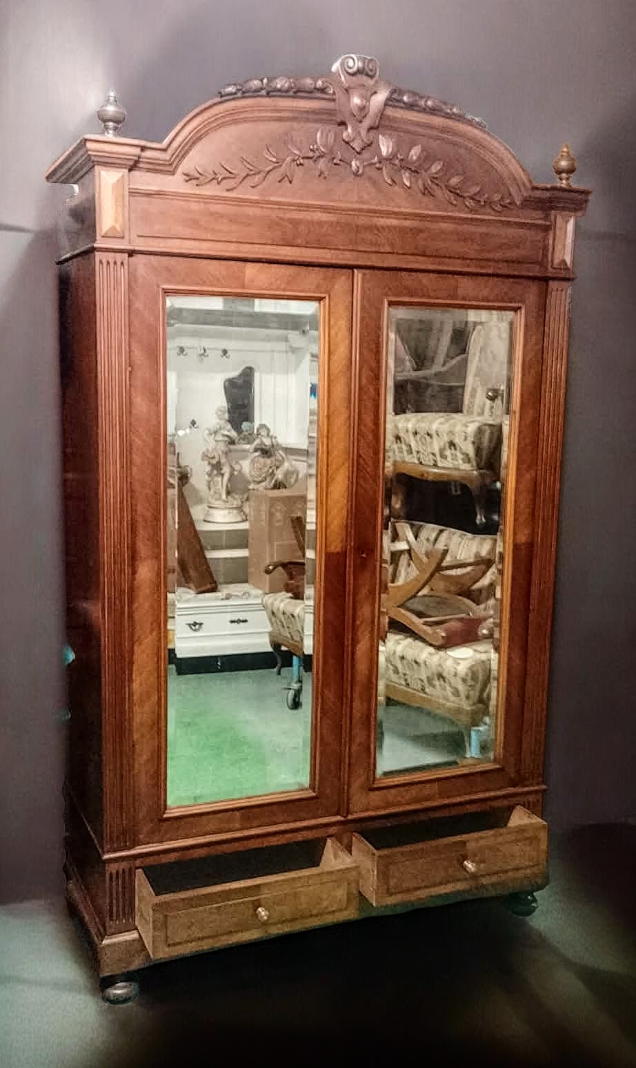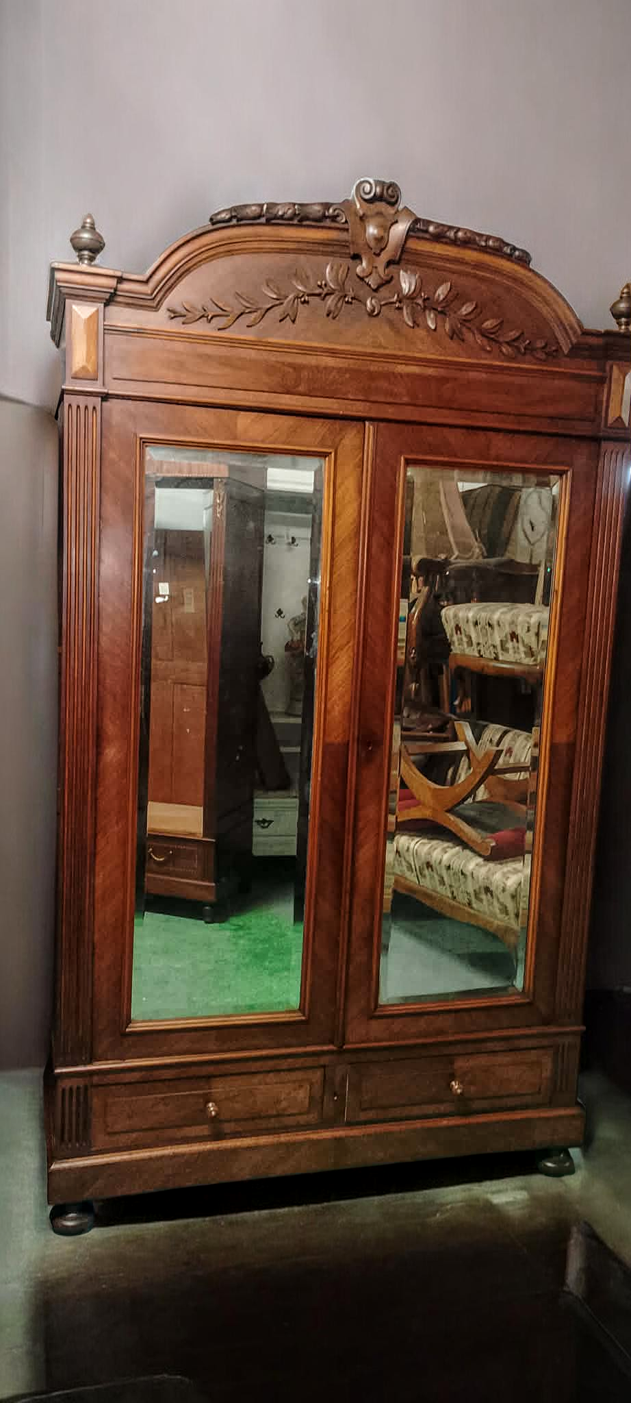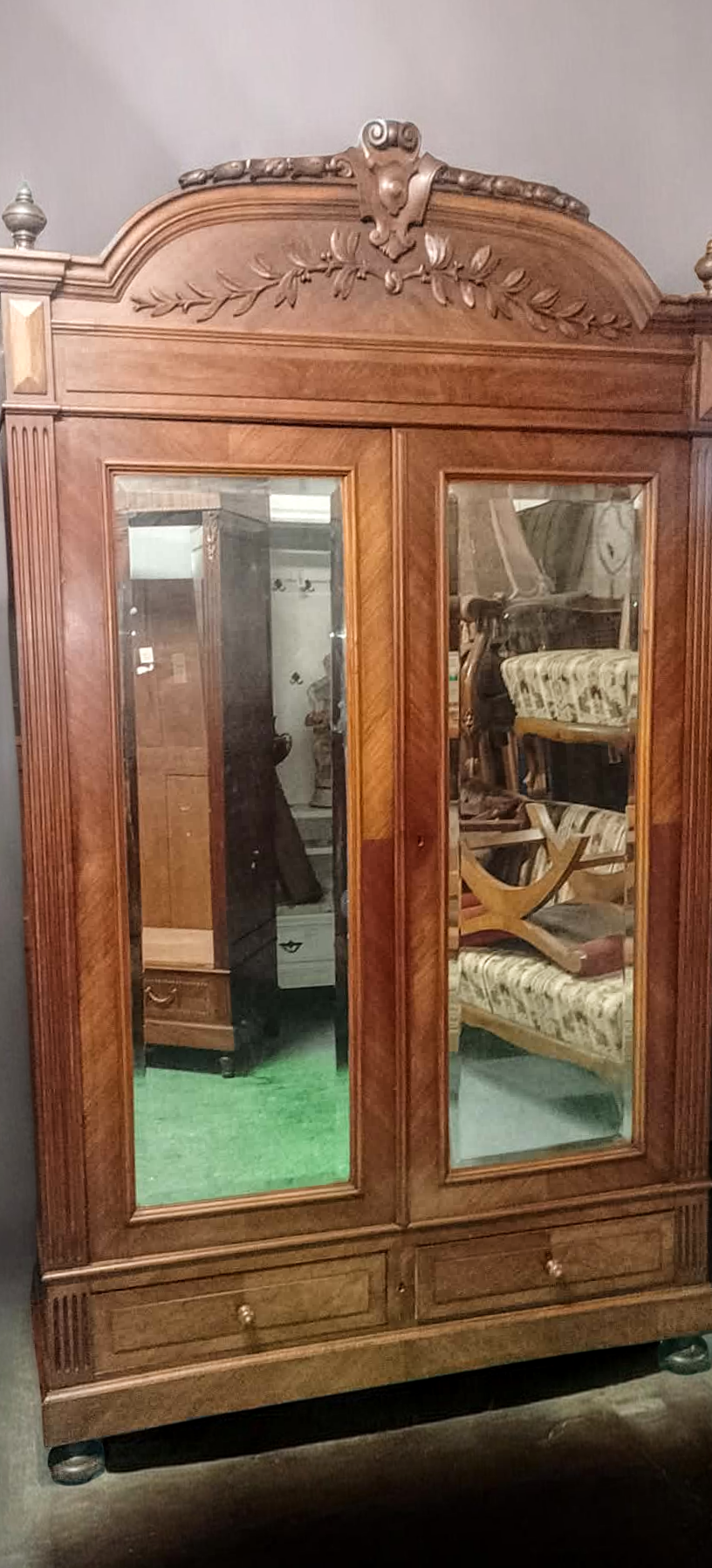 Eladásra kínálunk egy antik ,2 ajtós tükrös ruhás szekrényt,gardróbot .