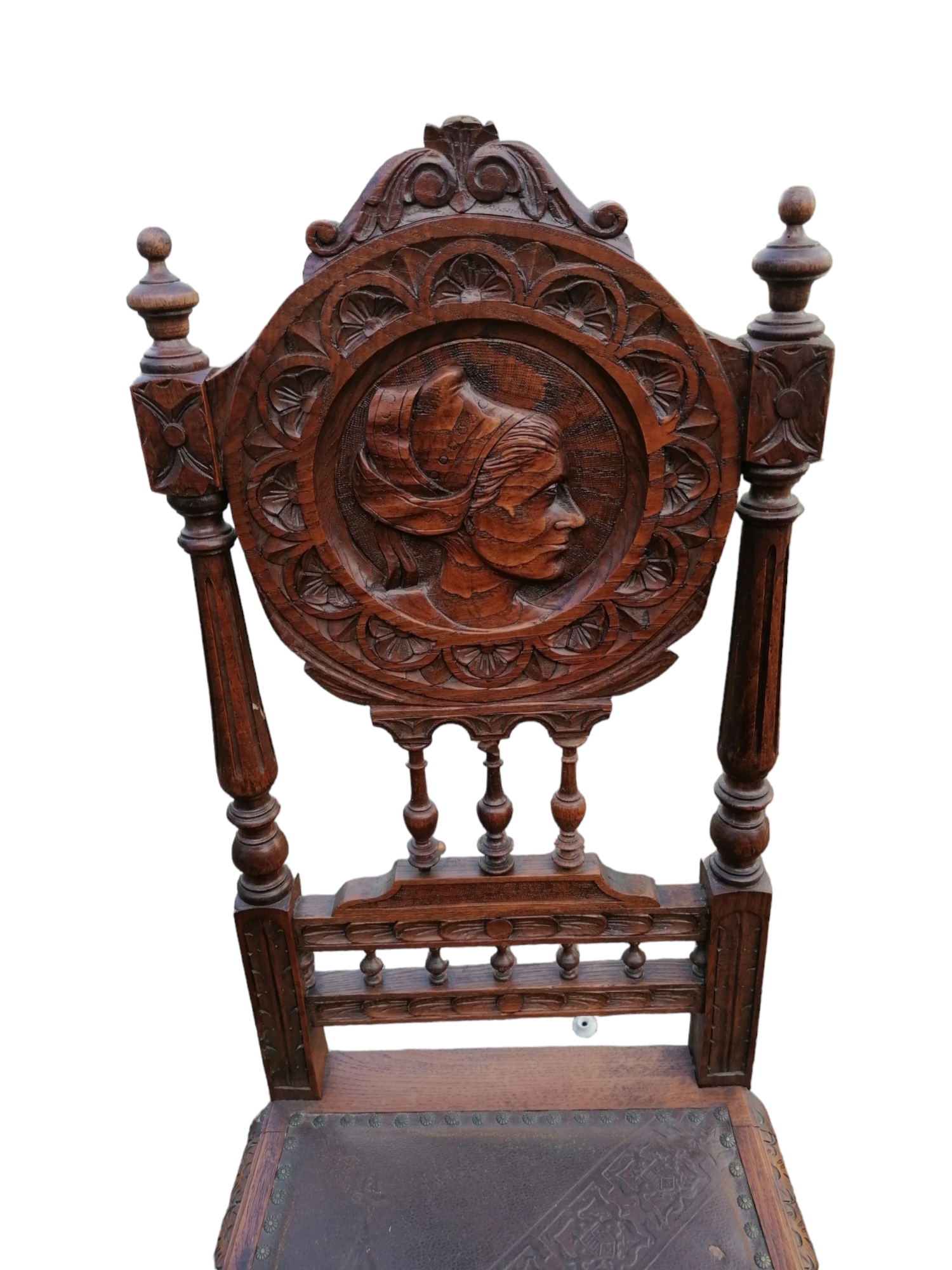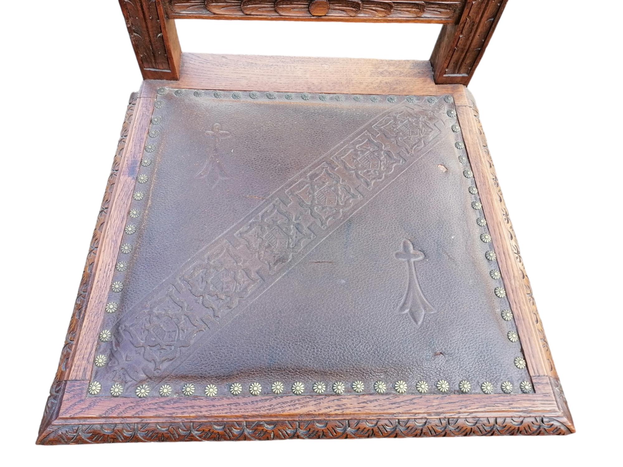 A székek ülőlapján eredeti nyomott mintás valódi bőr kárpitozás.