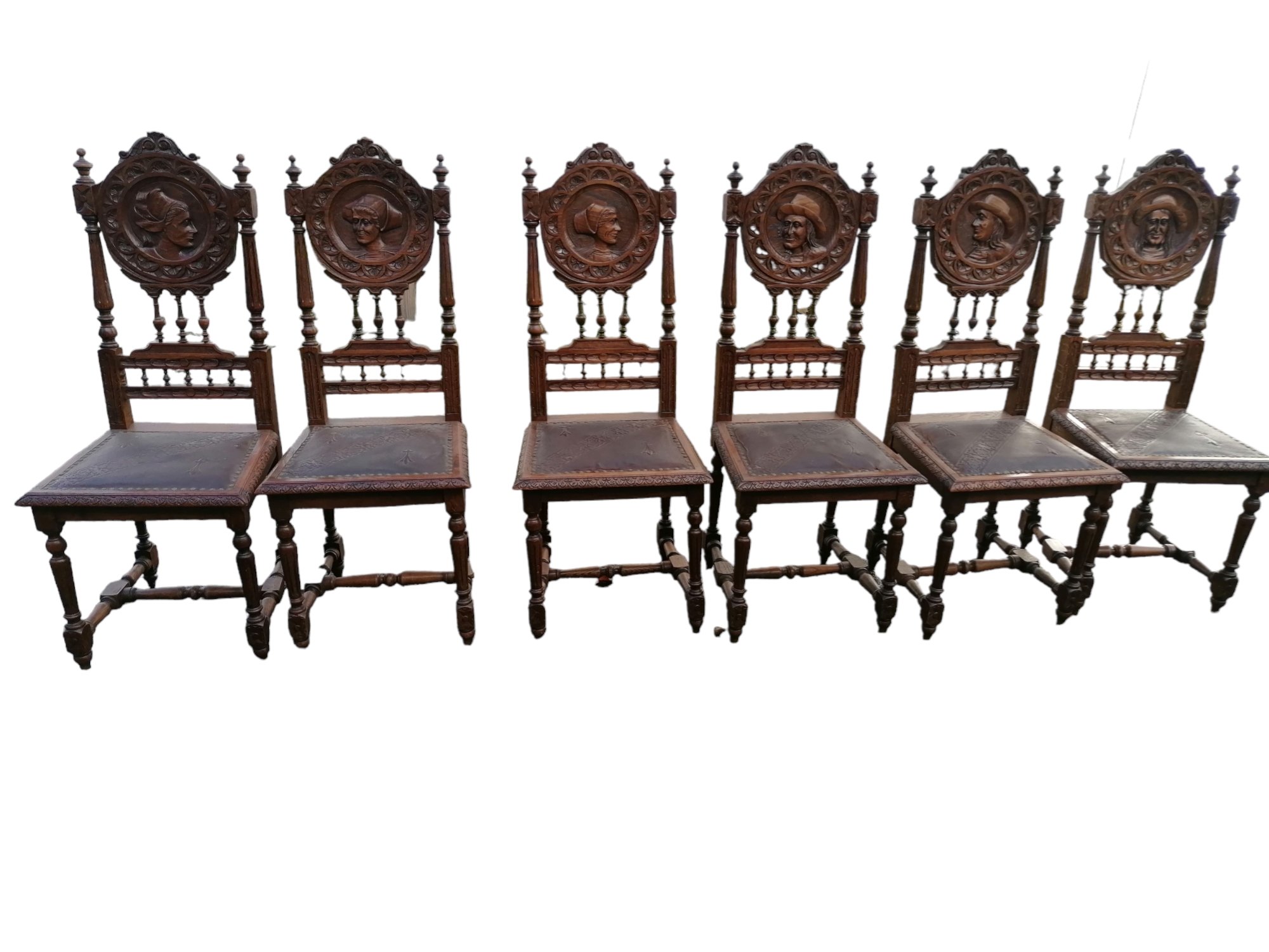 Mindegyik háttámlán különböző férfi és női ábrázolás,3 férfi és 3 női.