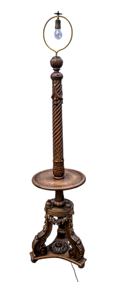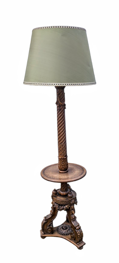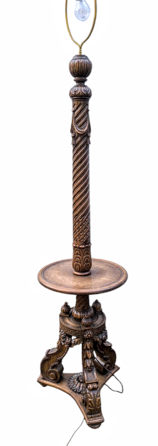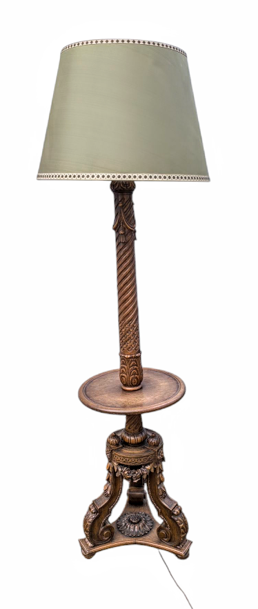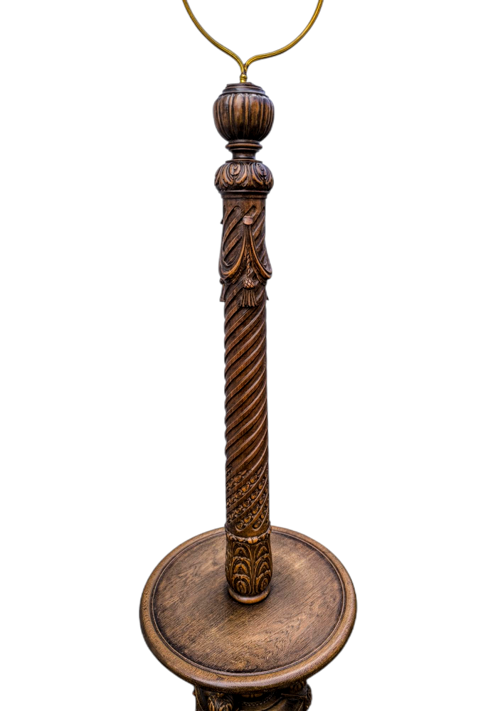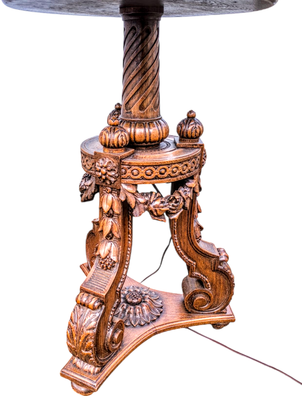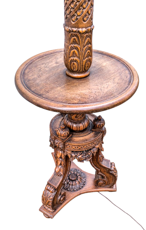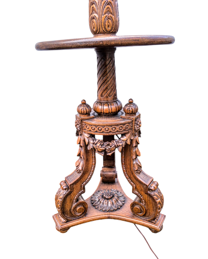 Eladó egy antik mívesen kidolgozott tölgyfa állólámpa.