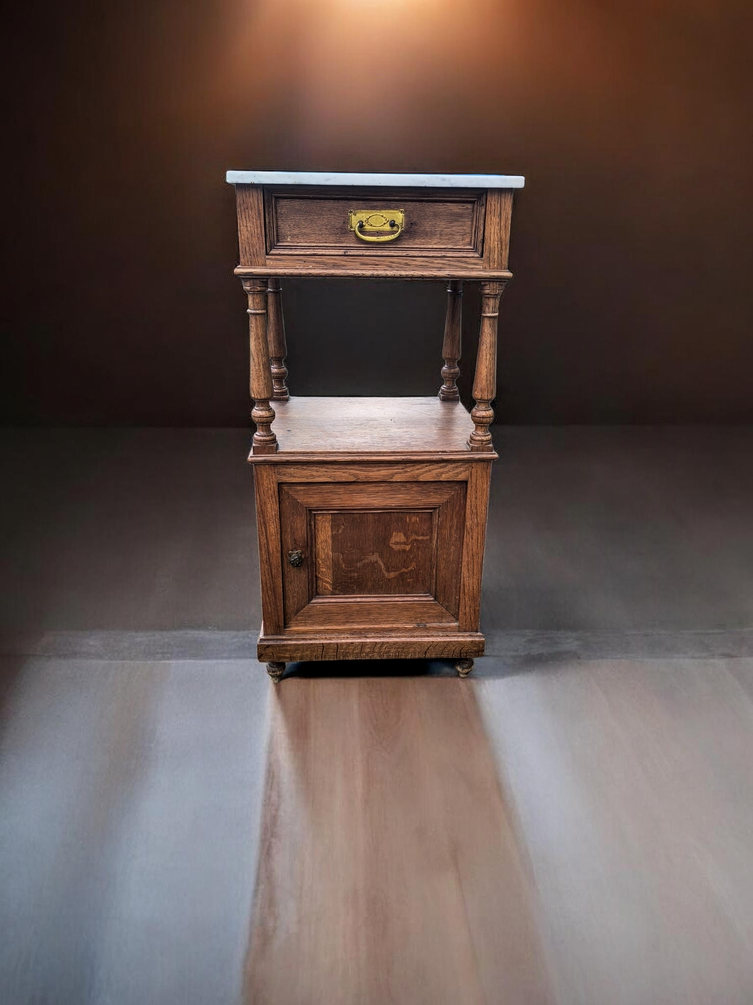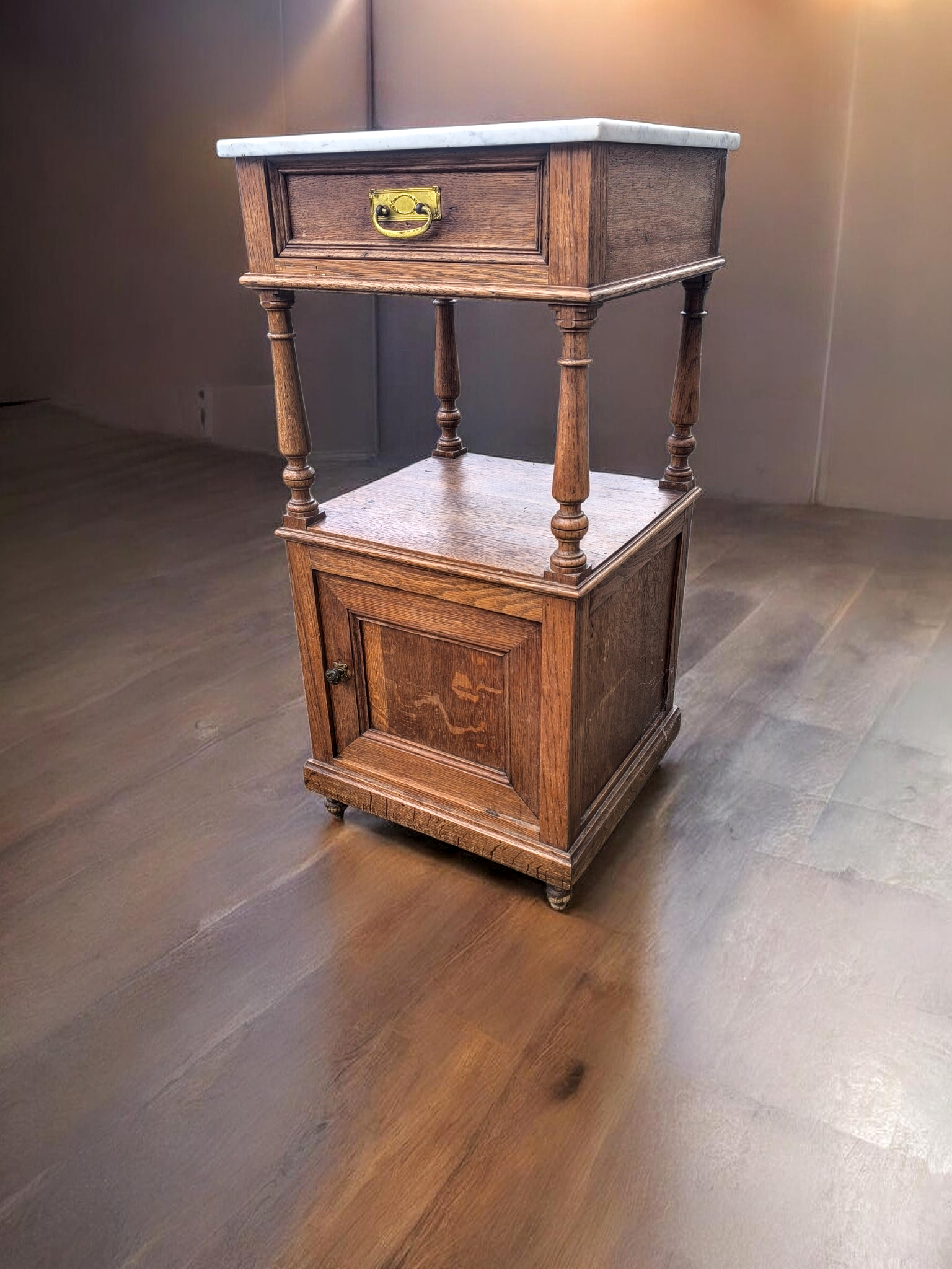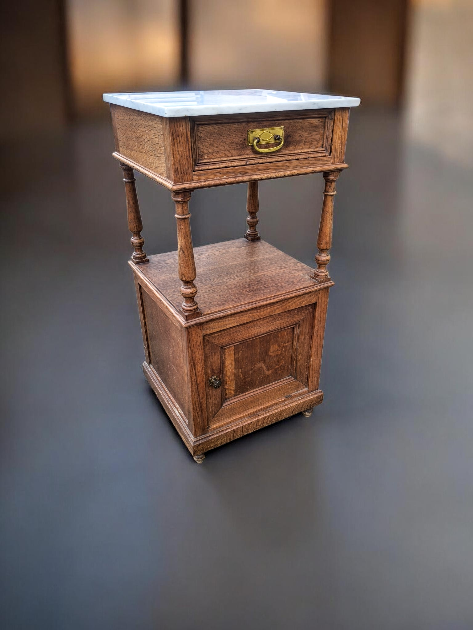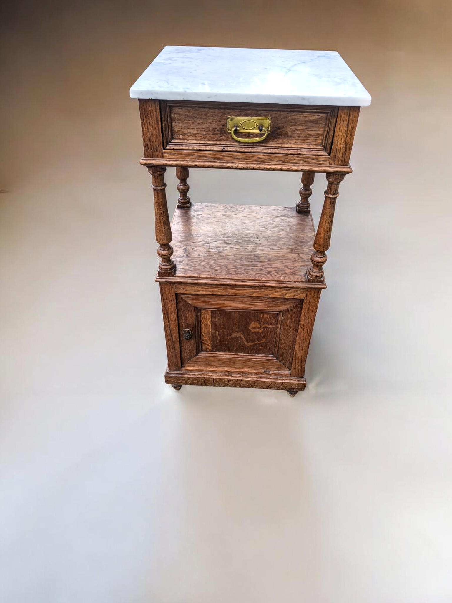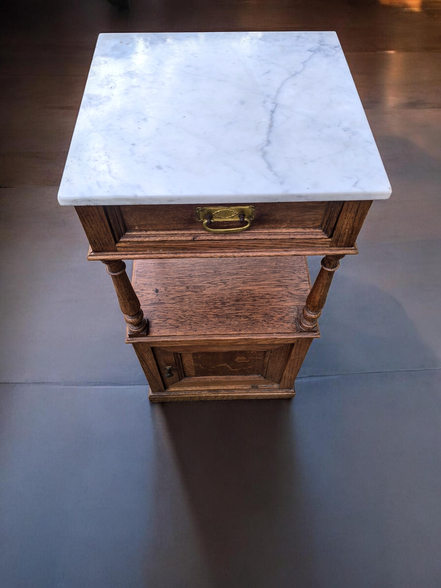 Eladó egy antik márványlapos kis komód vagy éjjeli szekrény.