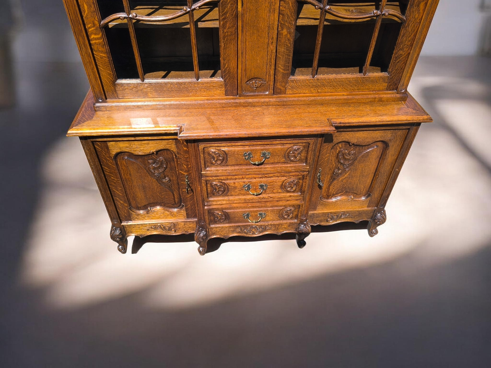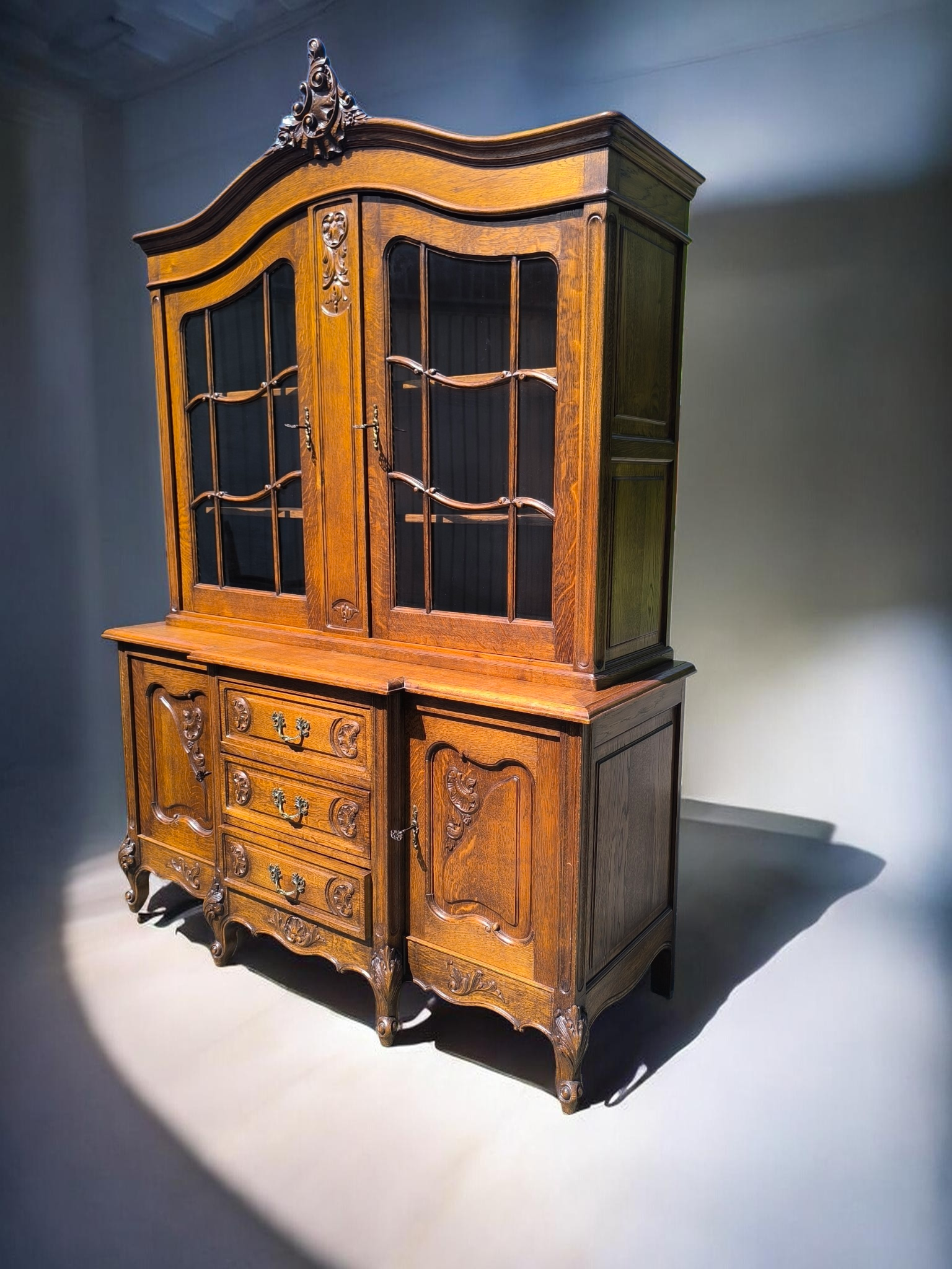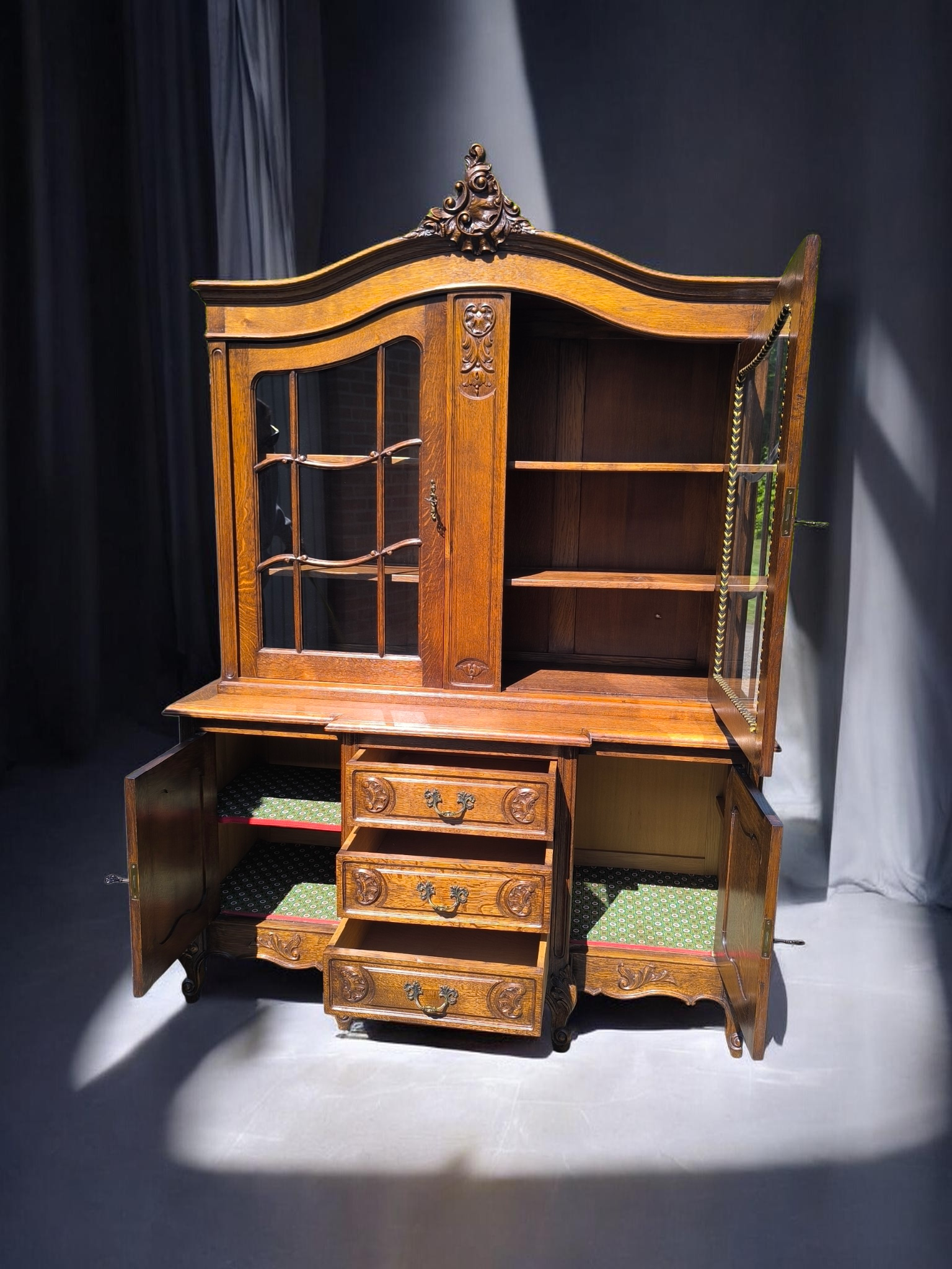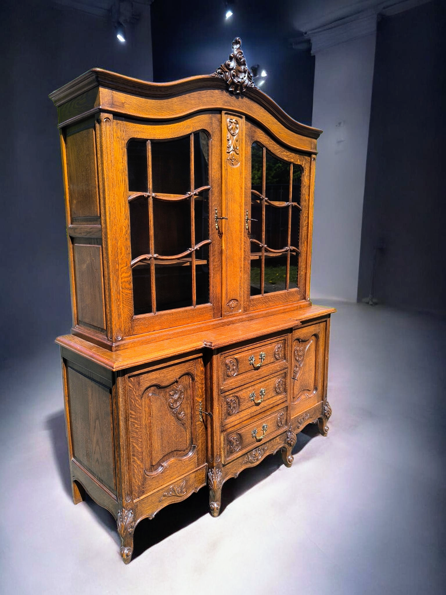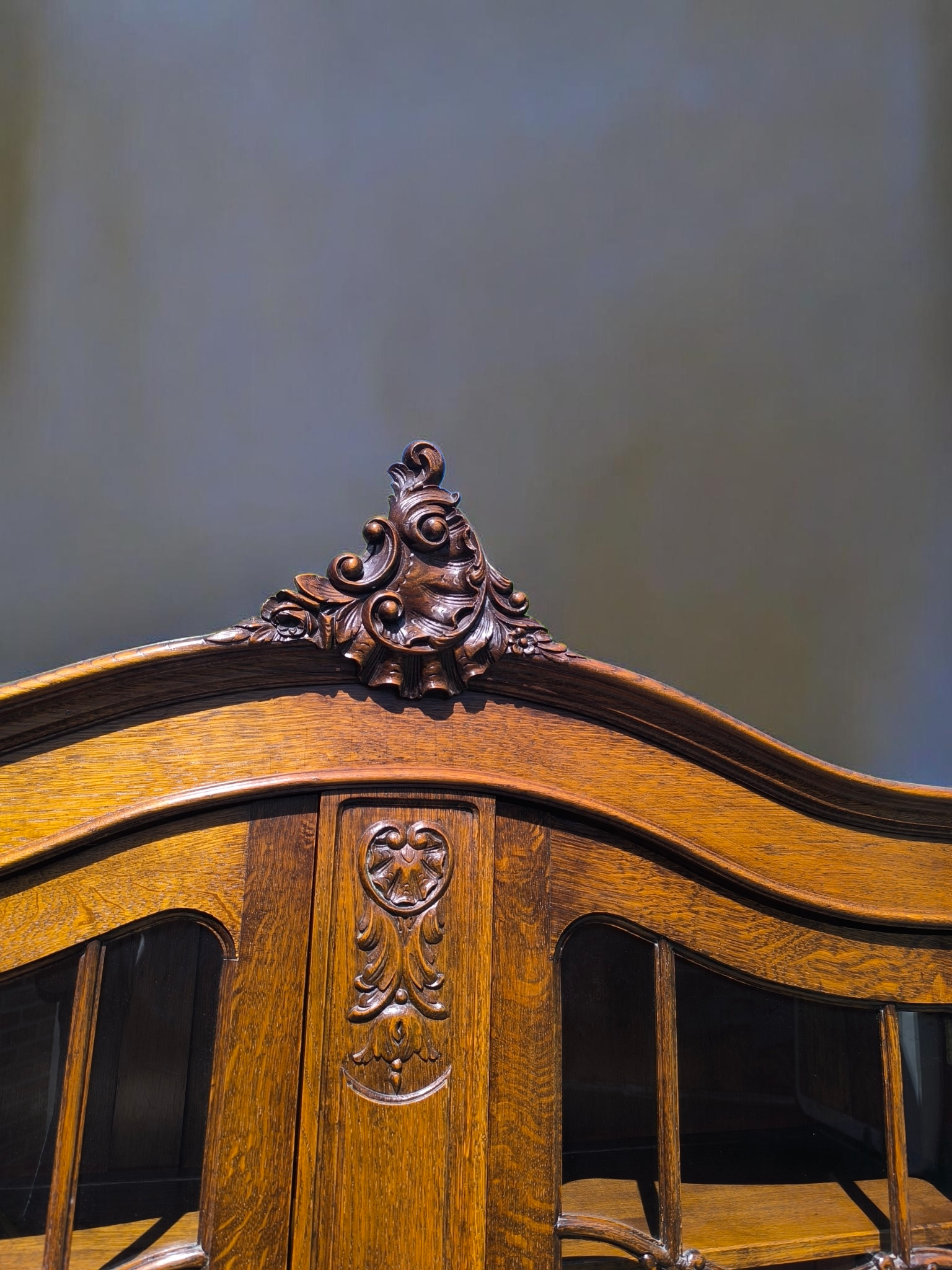 Eladó a képeken látható, impozáns megjelenésű, neobarokk (Louis XV) stílusú két részes vitrin,tálalószekrény.