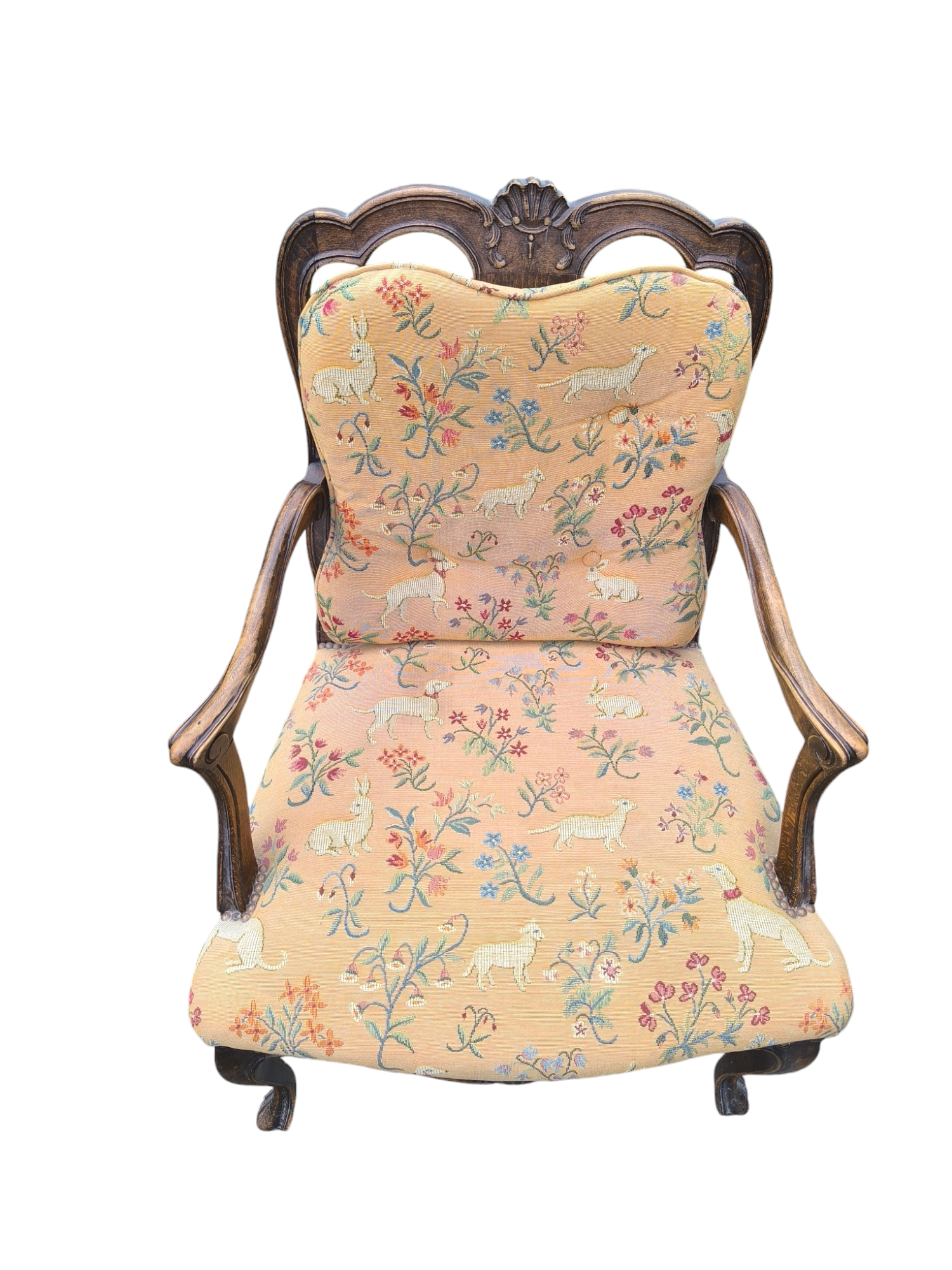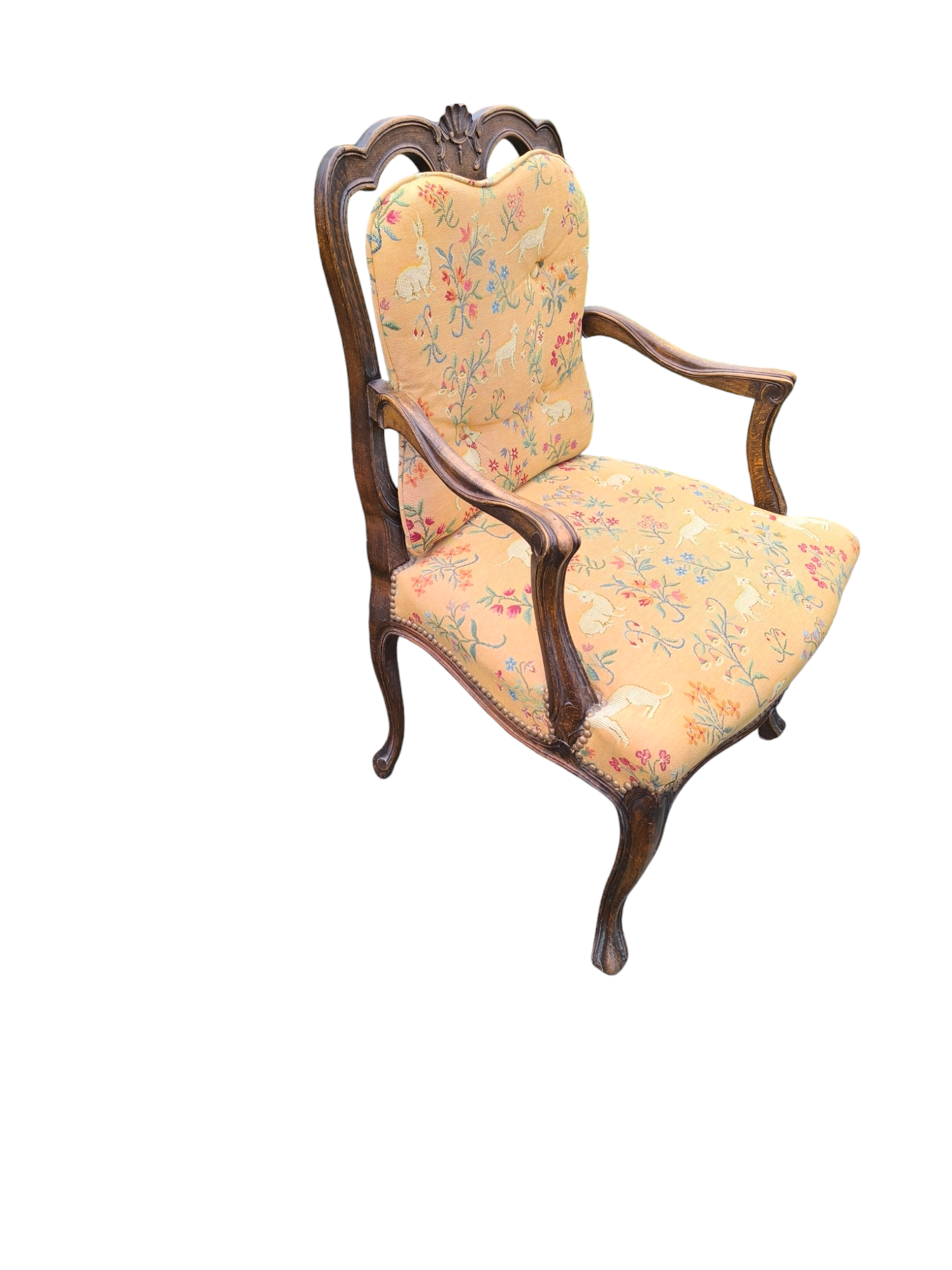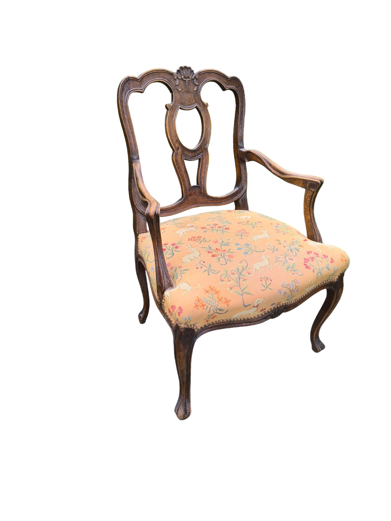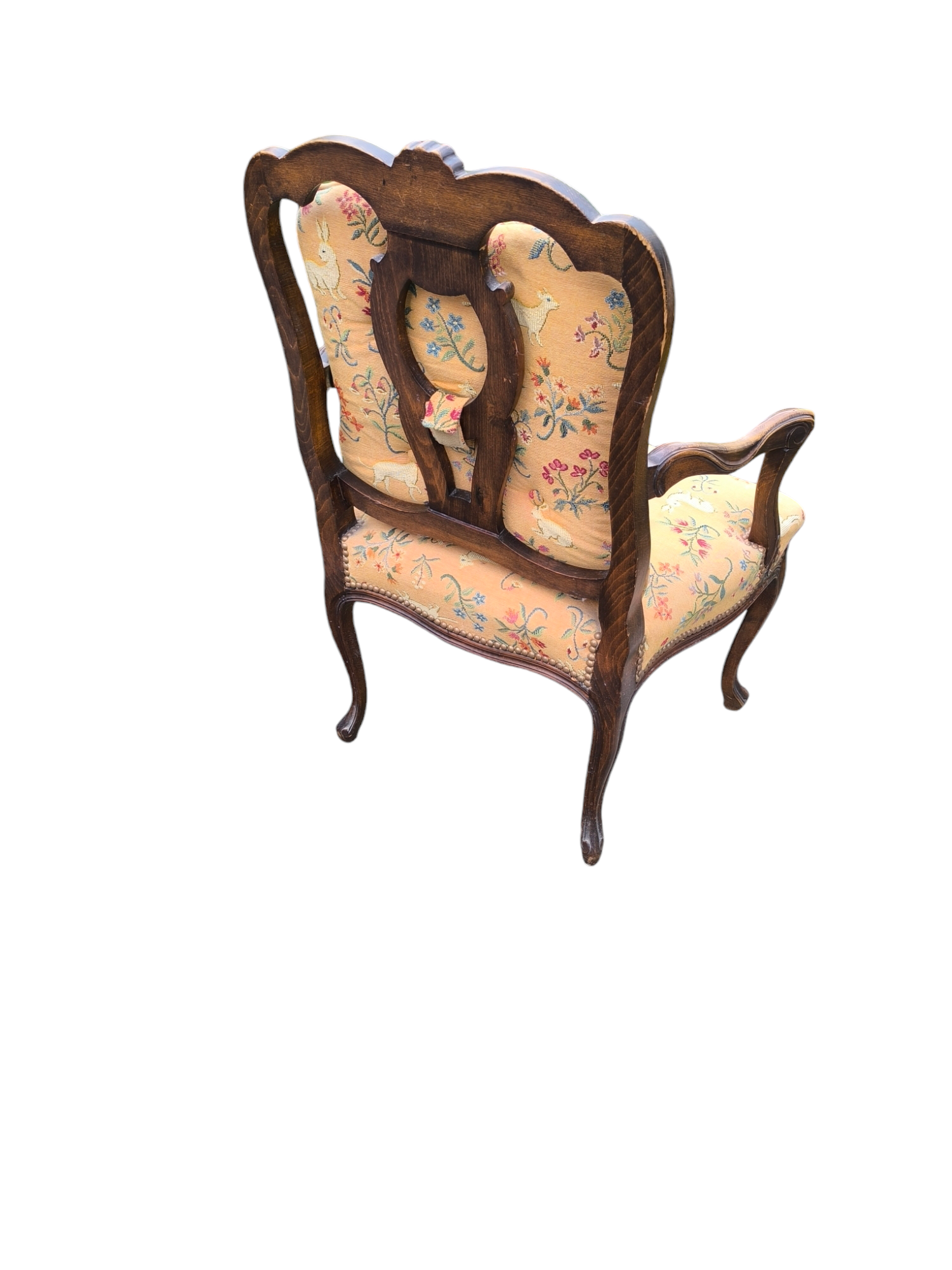 Eladó egy antik neobarokk karosszék ,fotel. Ülőlapja folt és szakadásmentes kárpittal rendelkezik, karfája, háttámla dúsan faragottak.