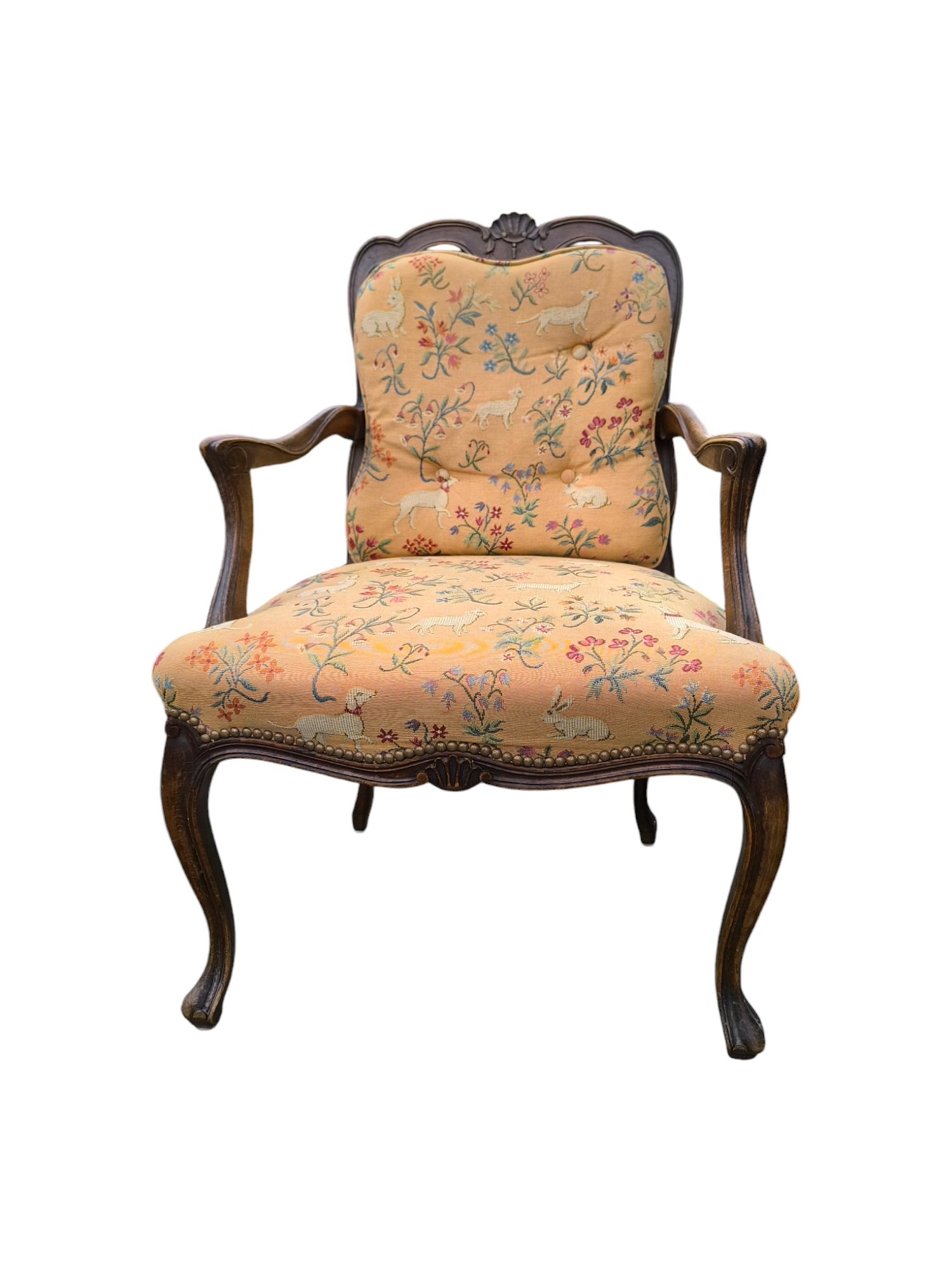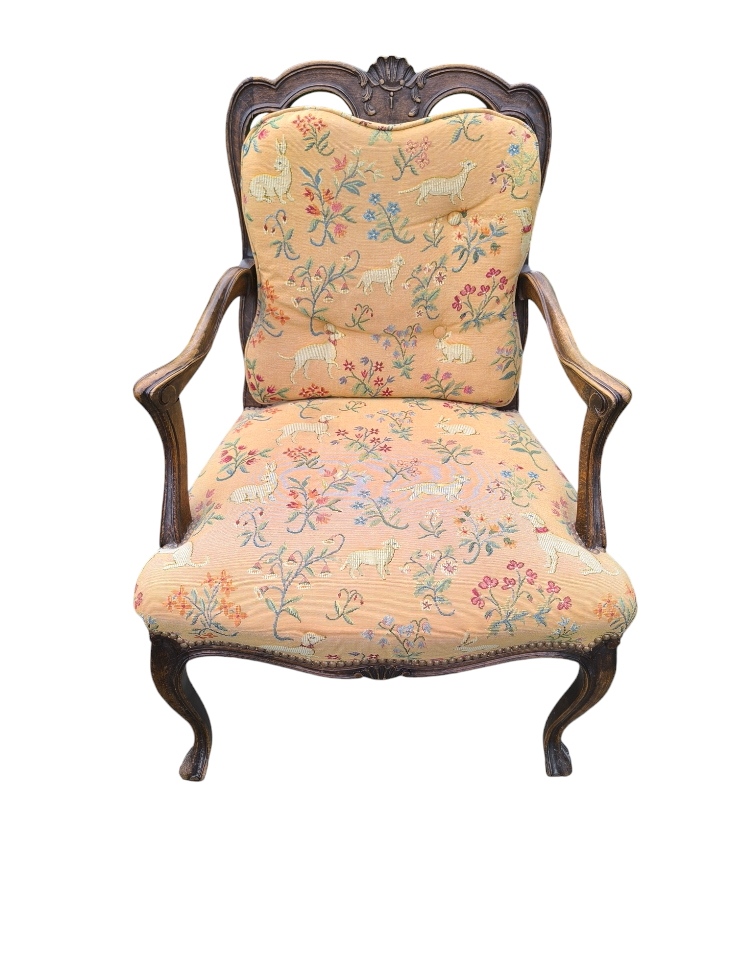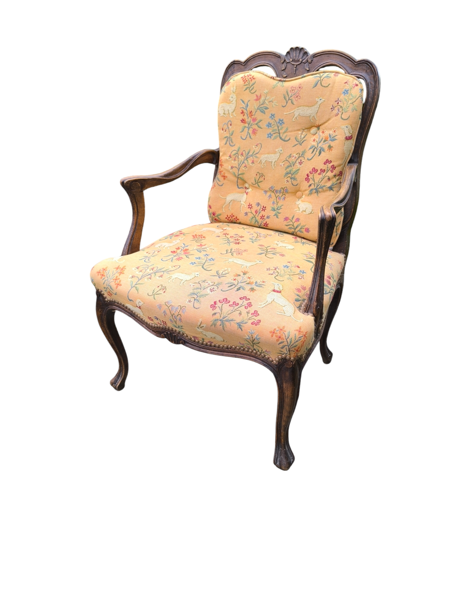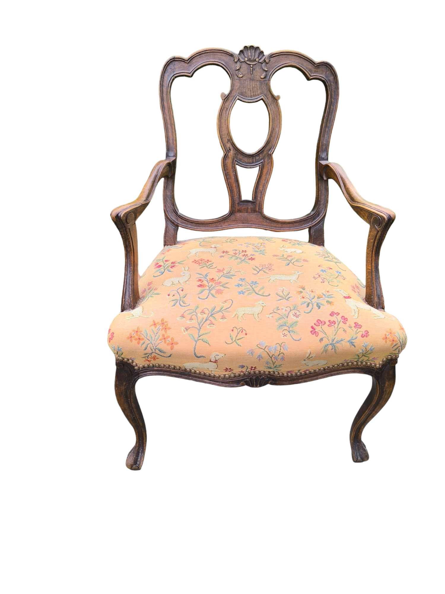 Eladó egy antik neobarokk karosszék ,fotel. Ülőlapja folt és szakadásmentes kárpittal rendelkezik, karfája, háttámla dúsan faragottak.