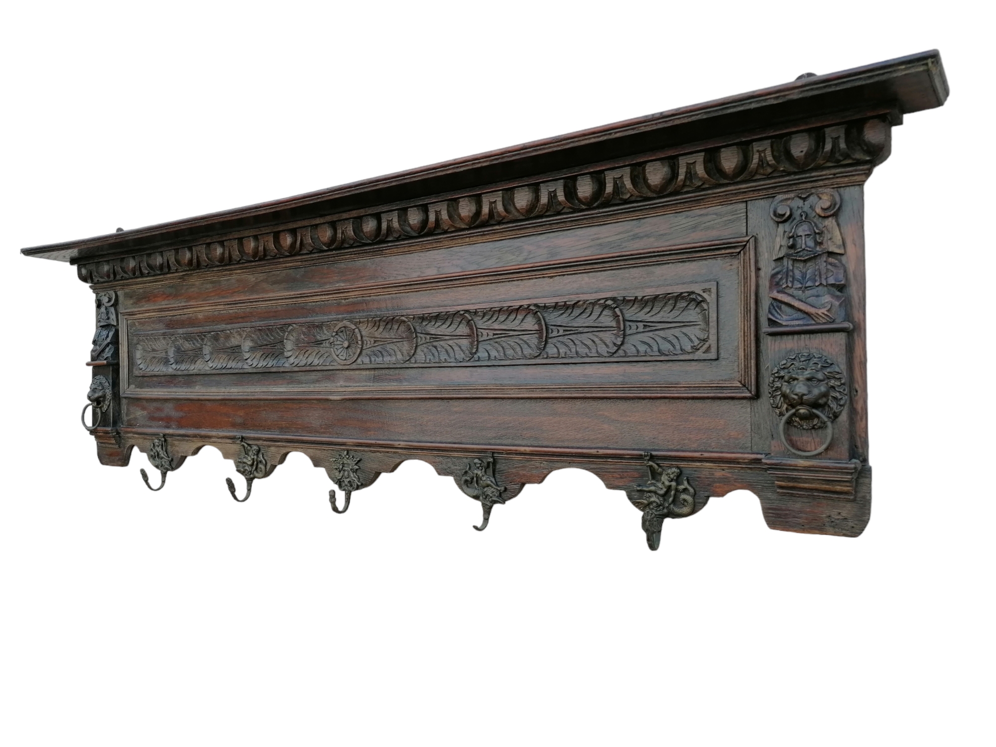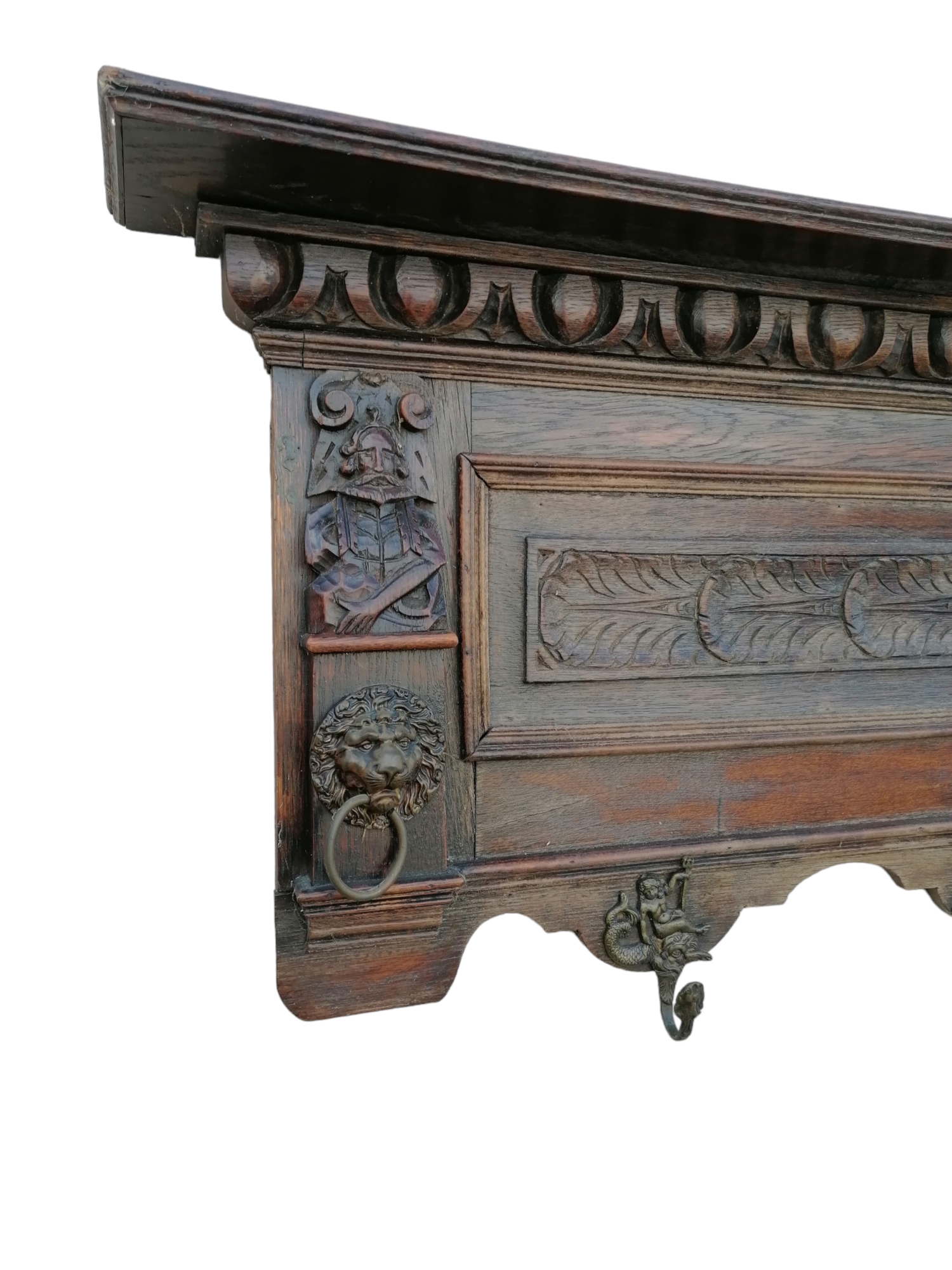 Antik neoreneszánsz 175 cm hosszú fali fogas-akasztó