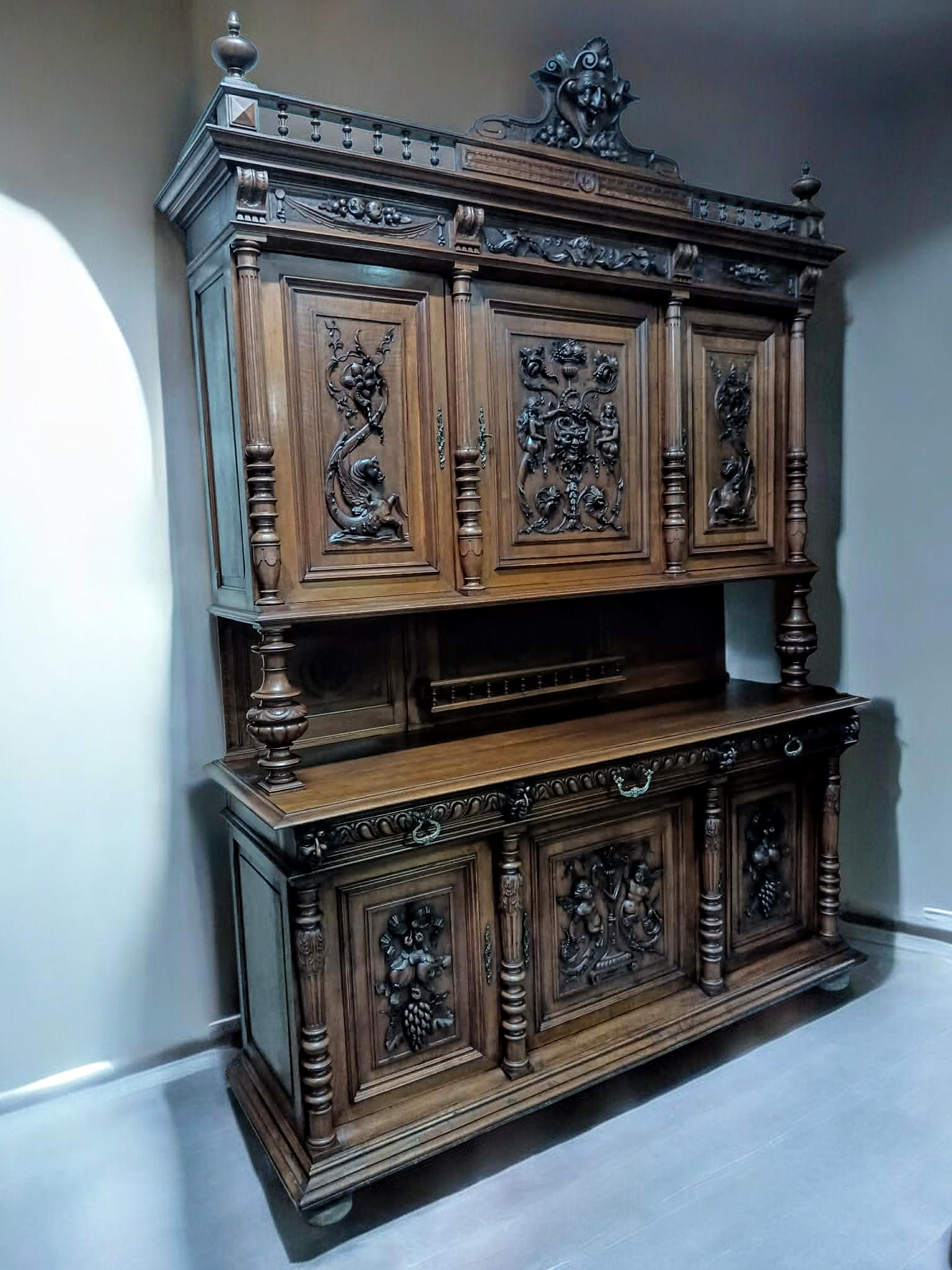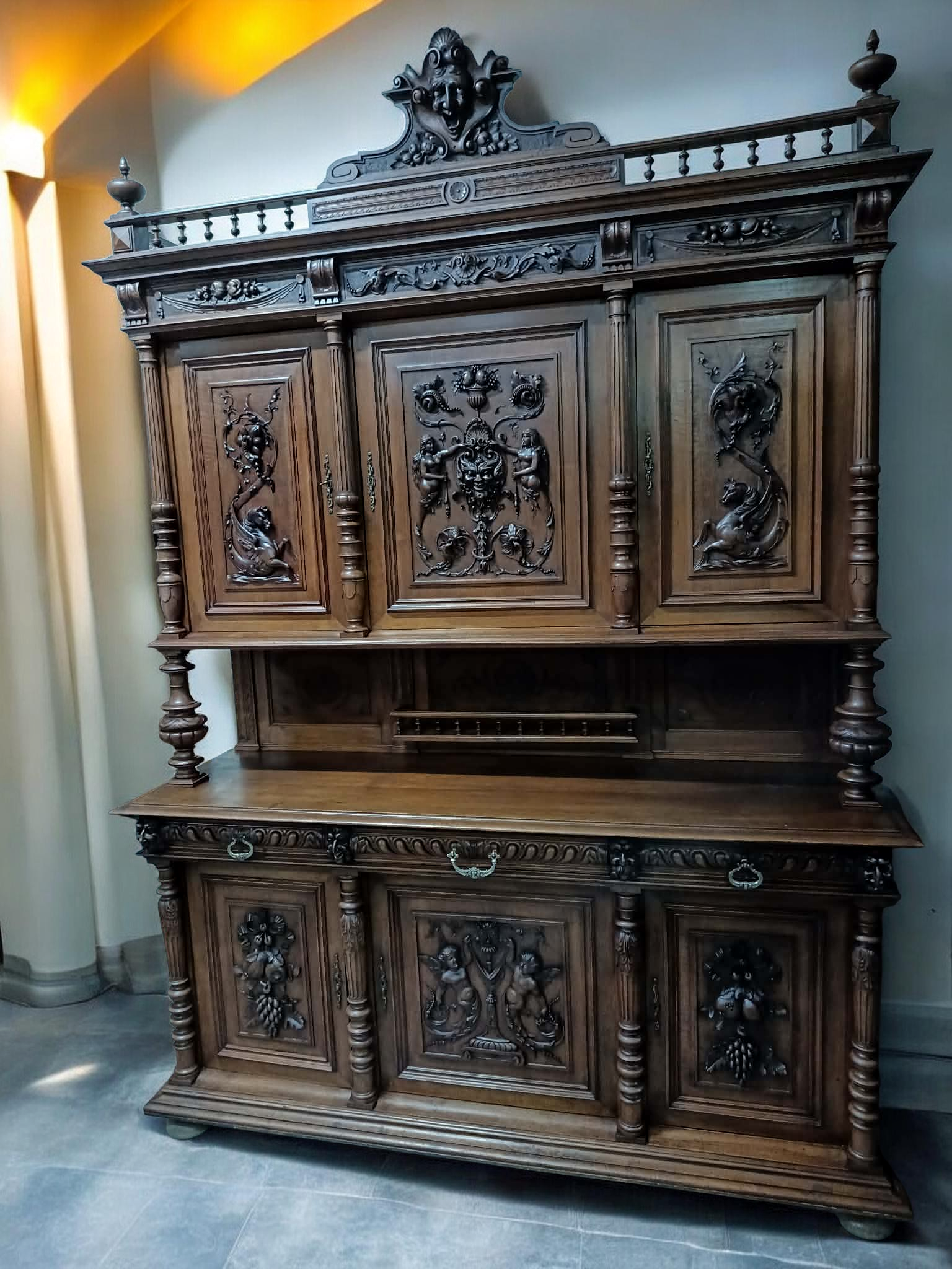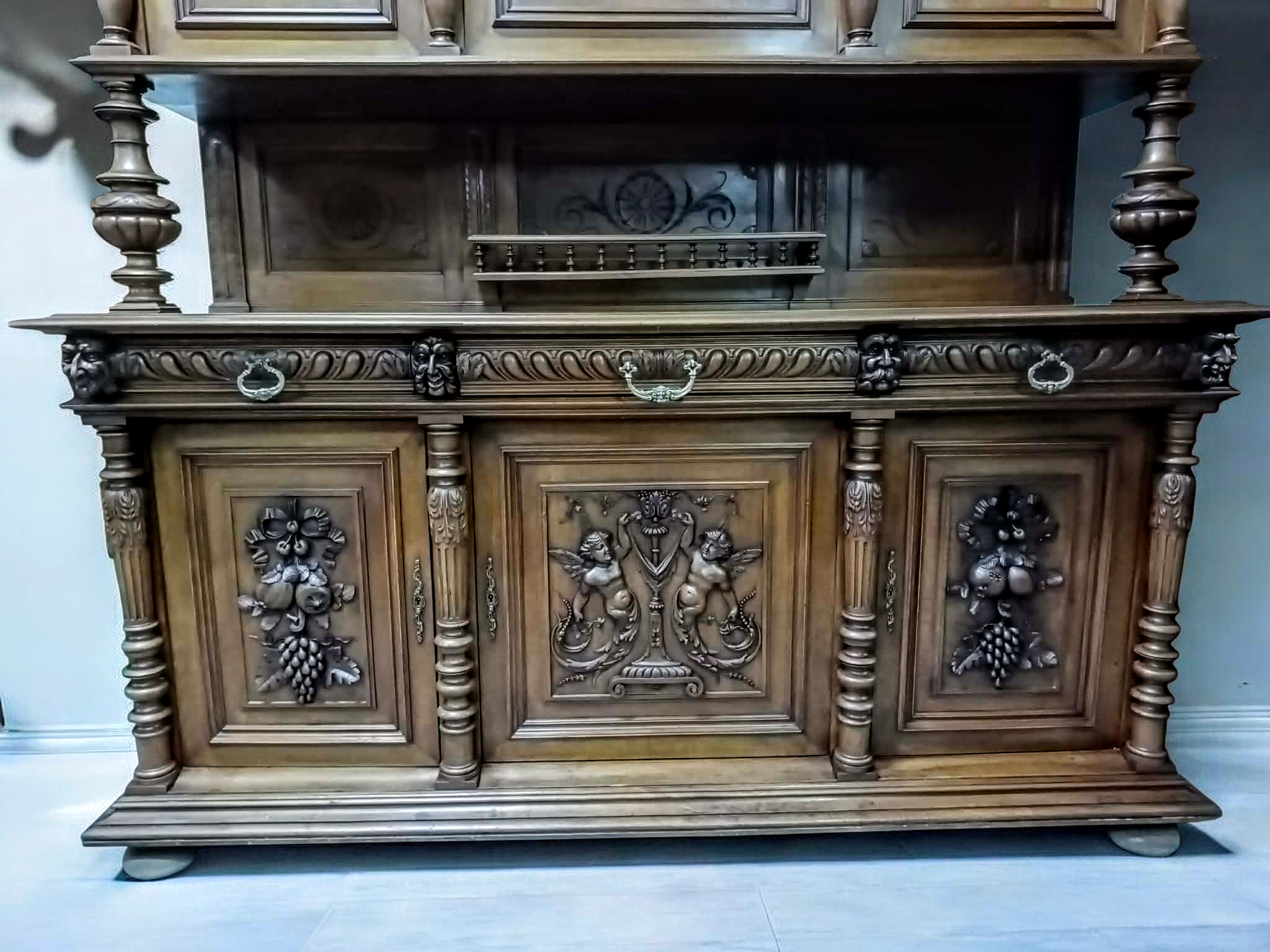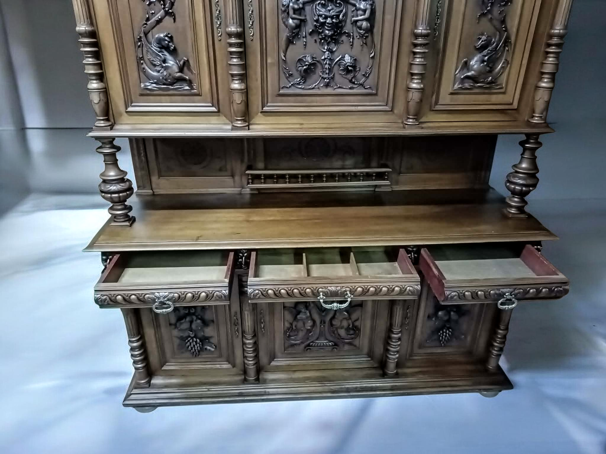 Eladó egy antik neoreneszánsz stílusú diófából készült tálalószekrény az 1860-1890 évekből.