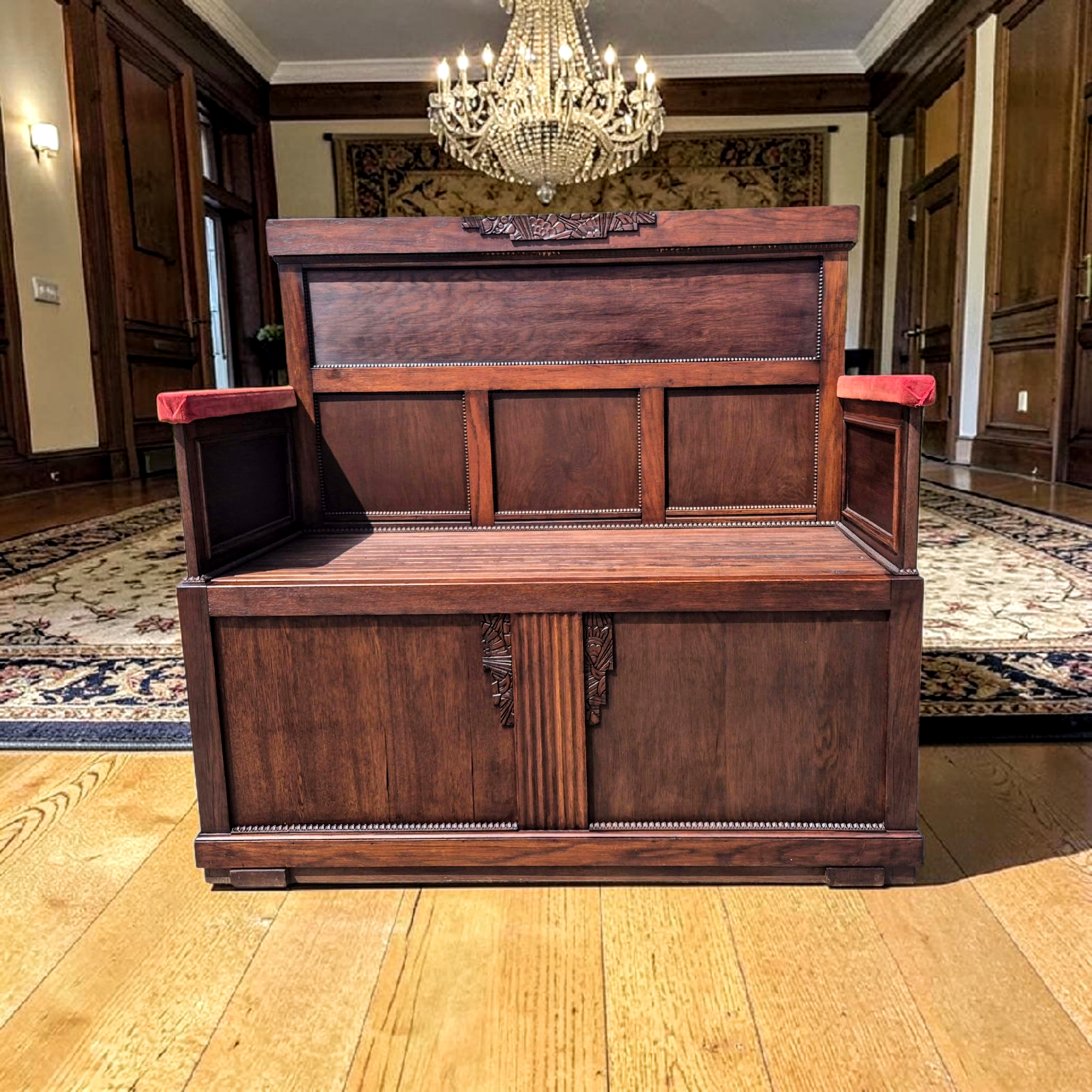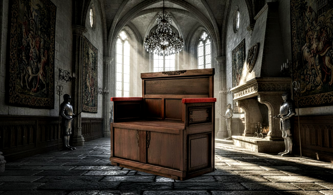 Ez a bútor a történelmi stílusok (neoreneszánsz/neogót) eleganciáját idézi. Masszív, tekintélyt parancsoló darab, amely tökéletes választás elegáns előszobákba, nappalikba vagy irodákba dekoratív ülőalkalmatosságként.
