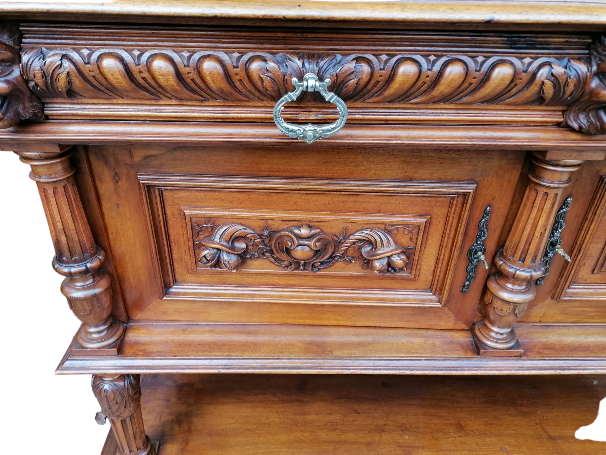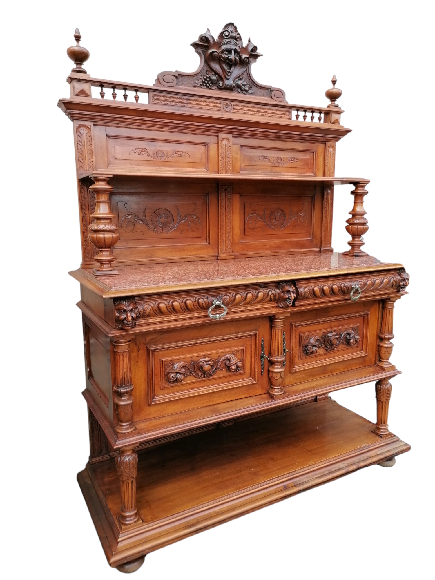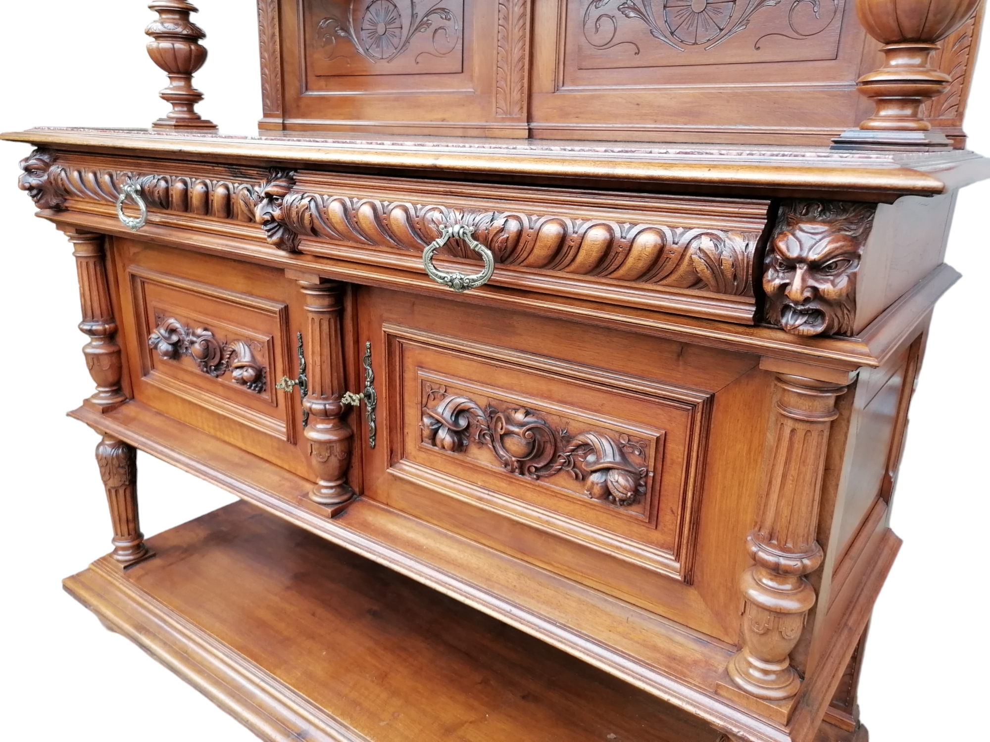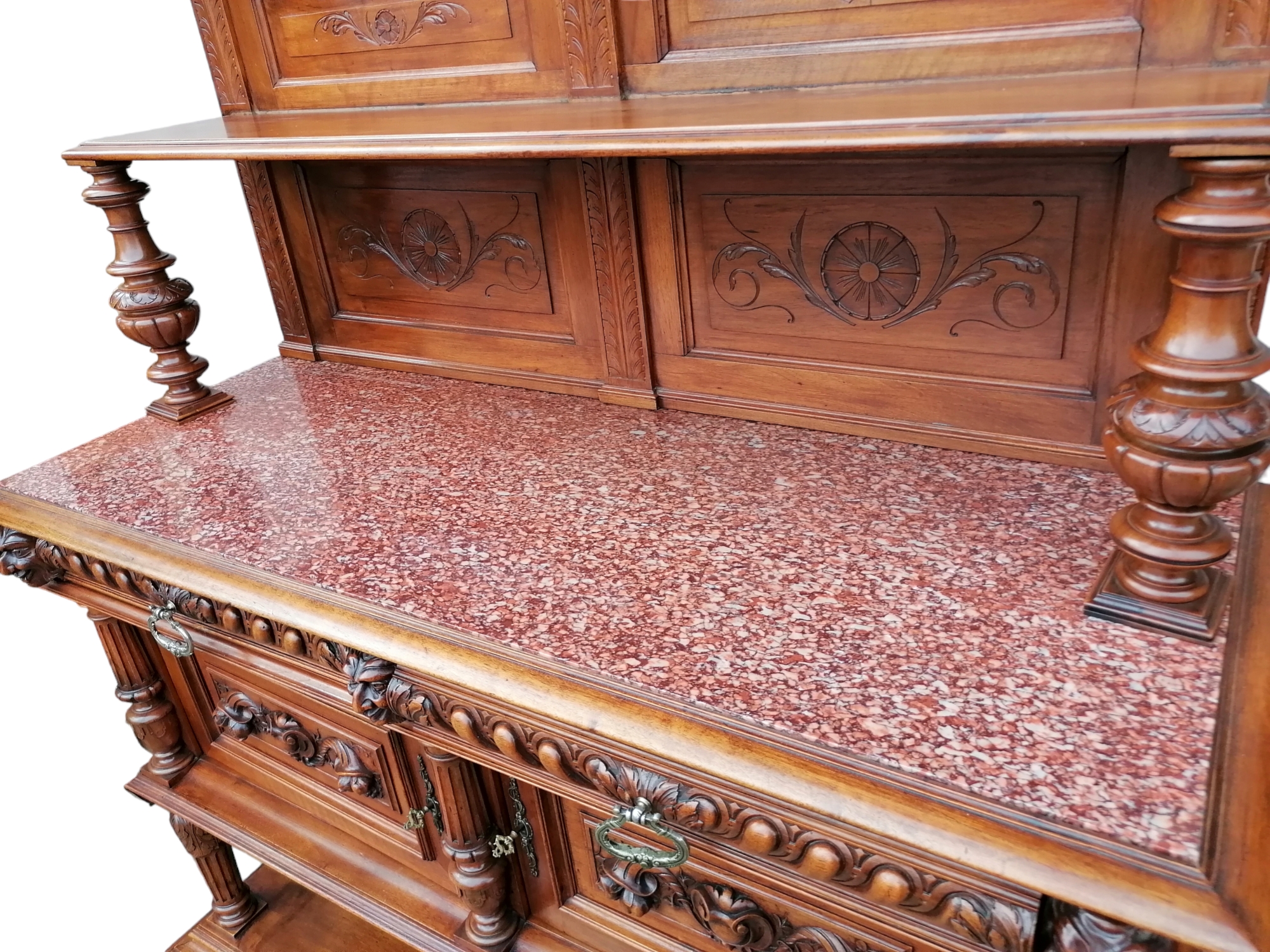 Eladásra kínálunk egy antik , diófából készült neoreneszánsz stílusú pohárszéket márványlappal a tetején.
