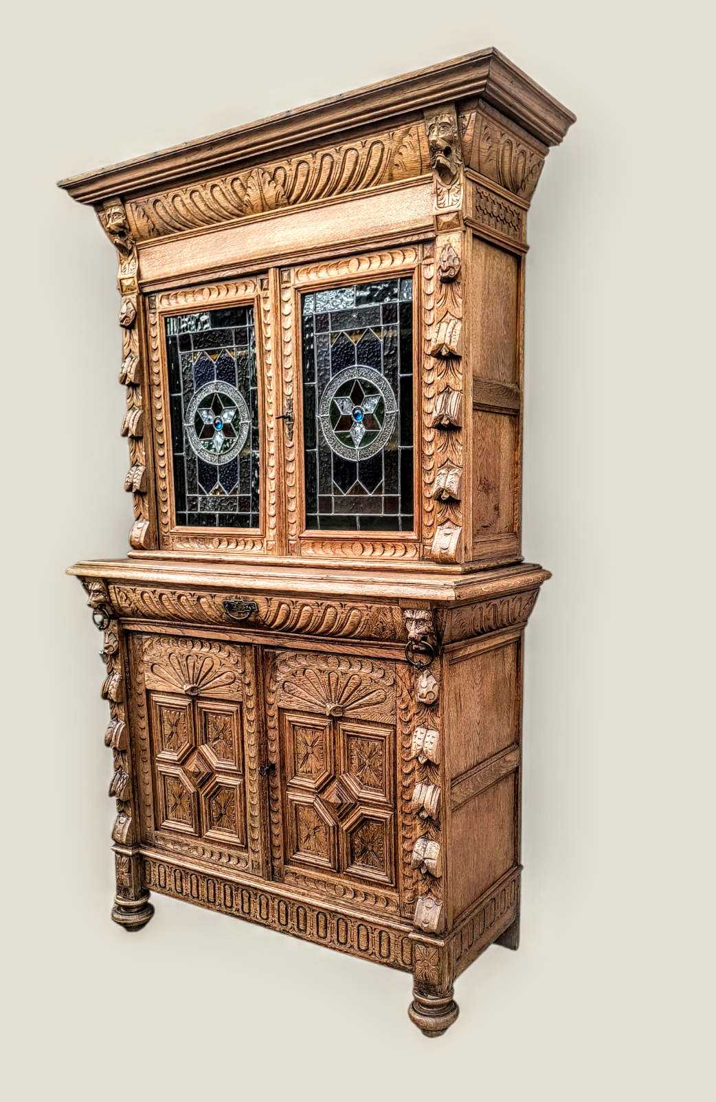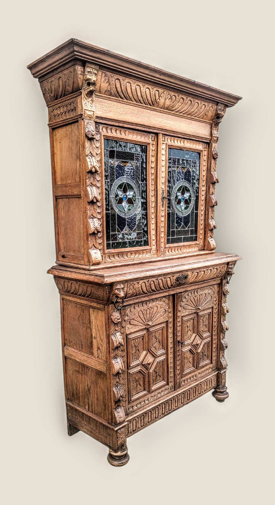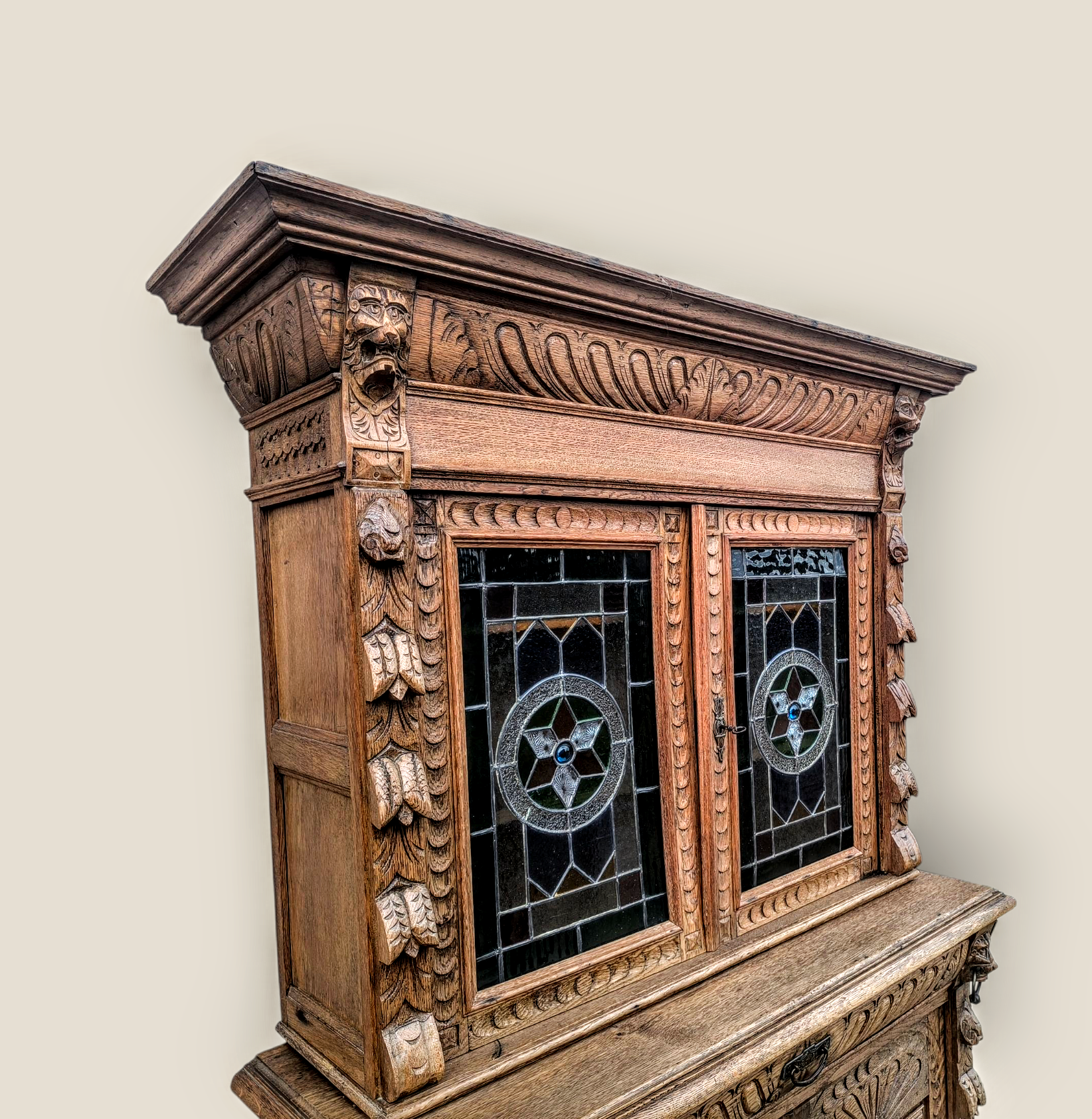 Eladásra kínálunk egy antik neoreneszánsz stílusú ólomüveges vitrint,tálalót.
