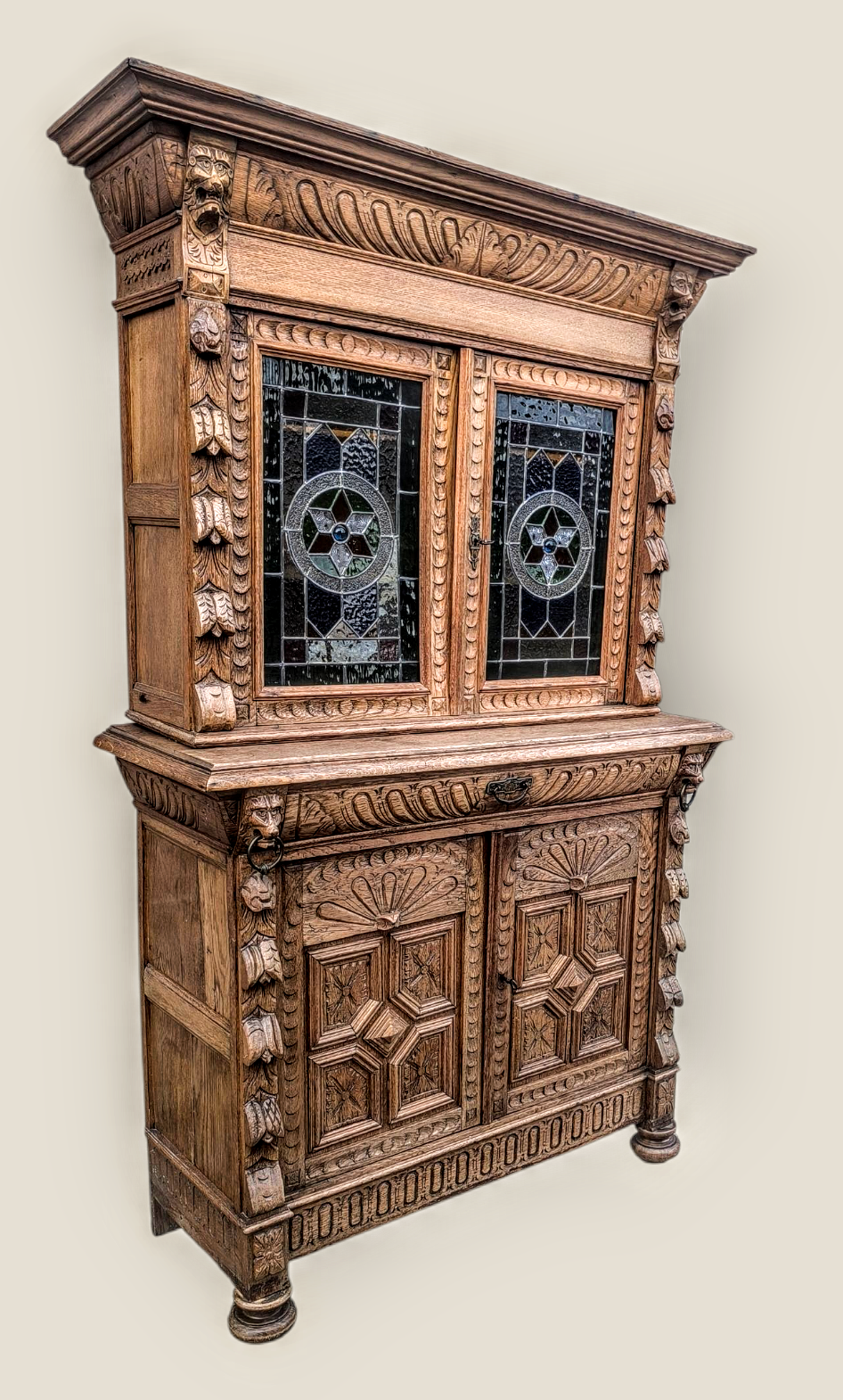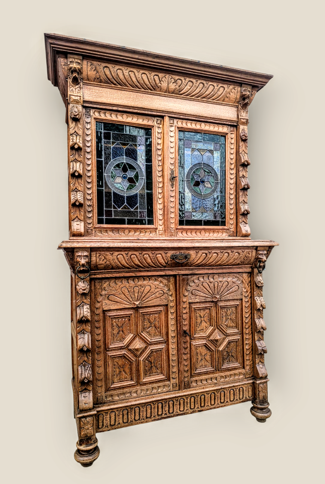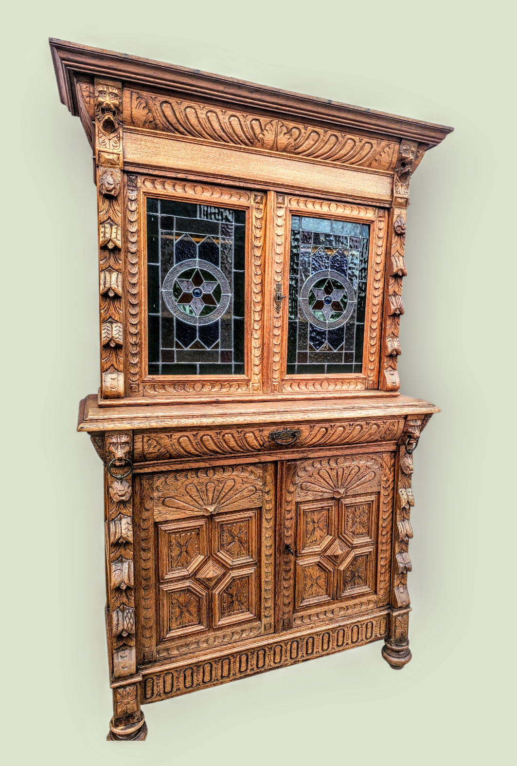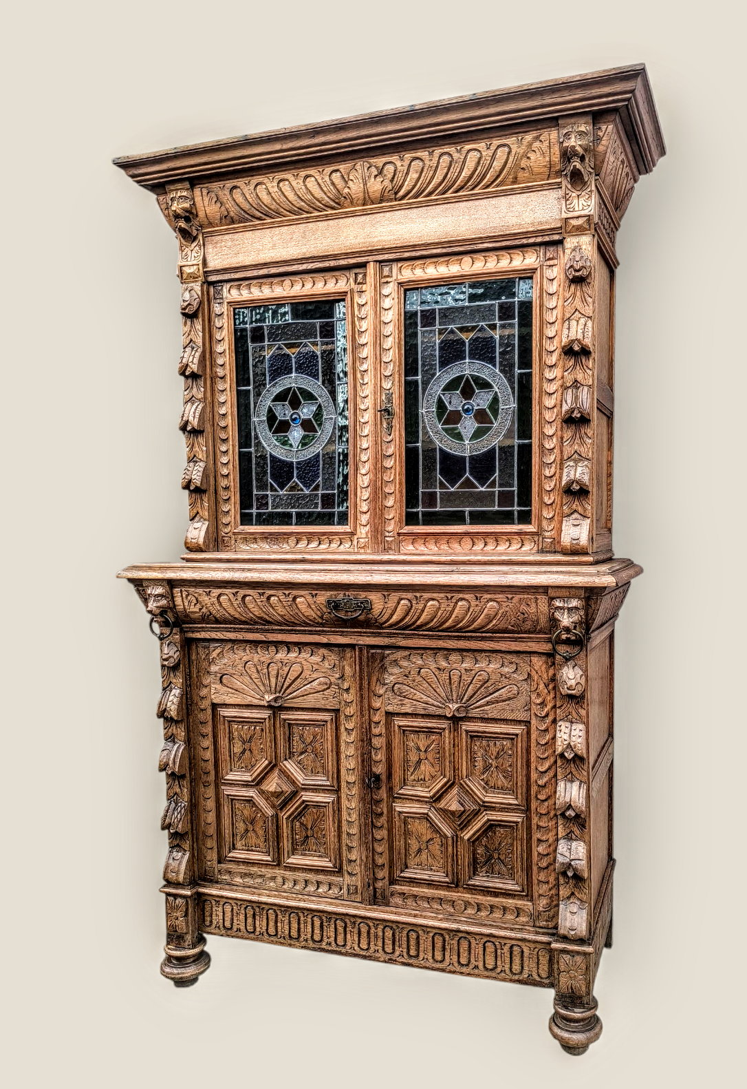 Eladásra kínálunk egy antik neoreneszánsz stílusú ólomüveges vitrint,tálalót.