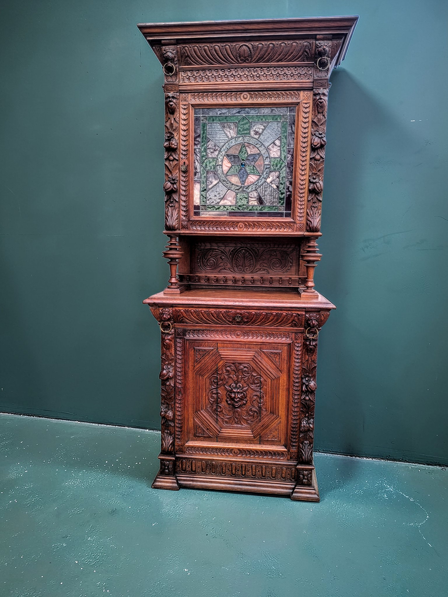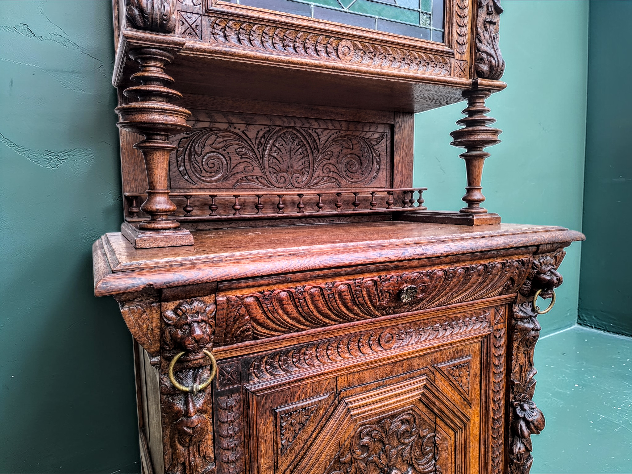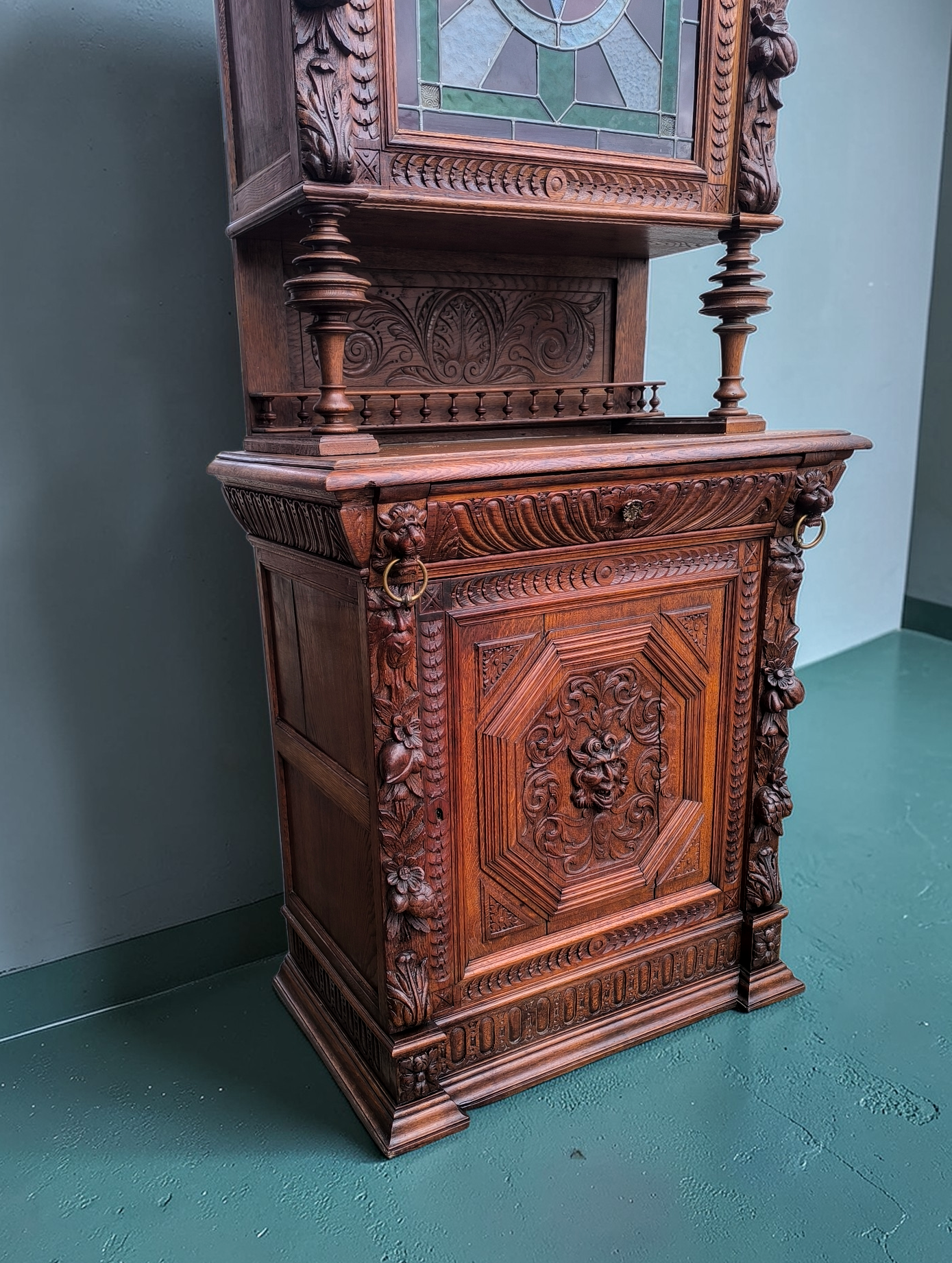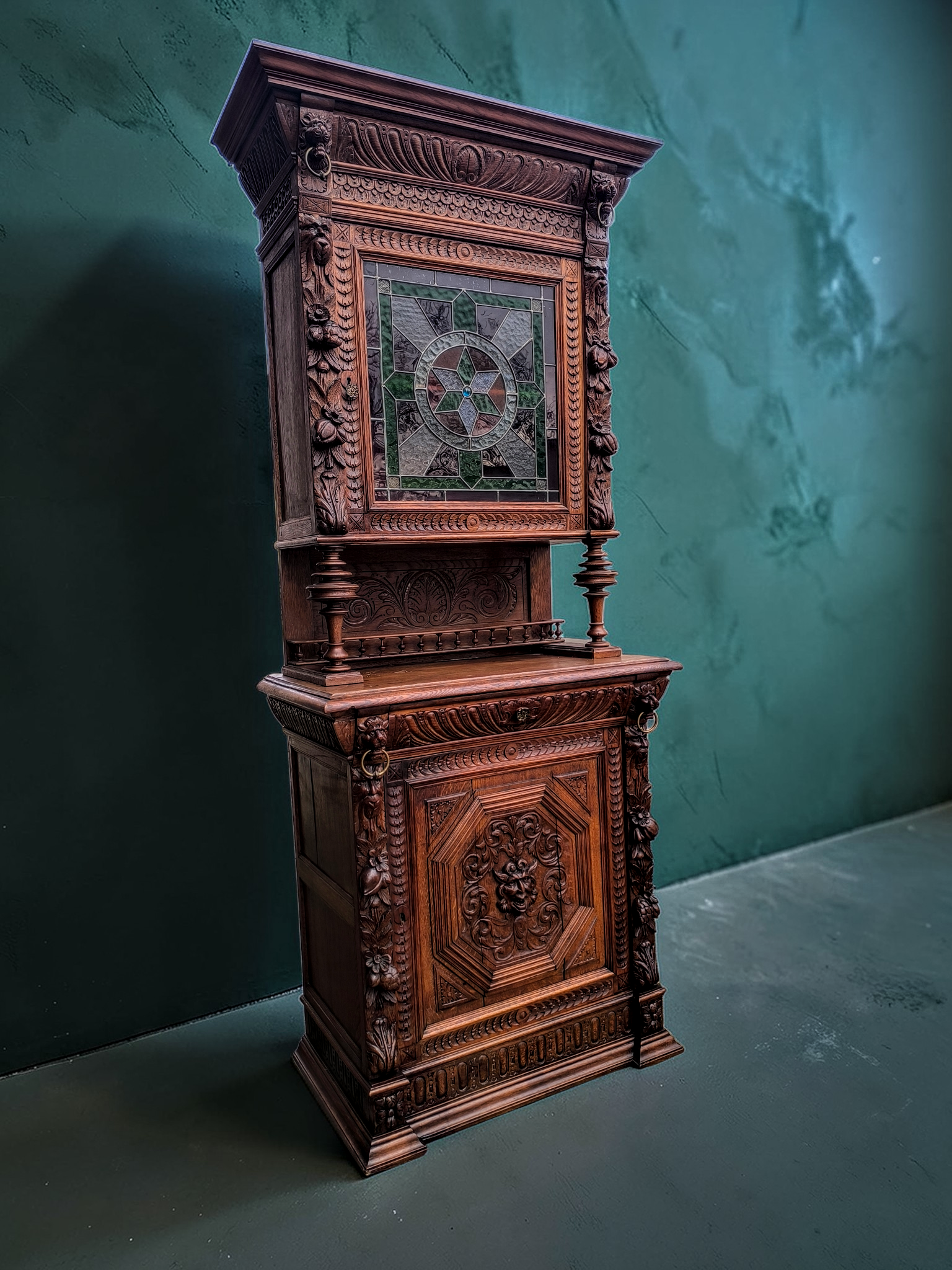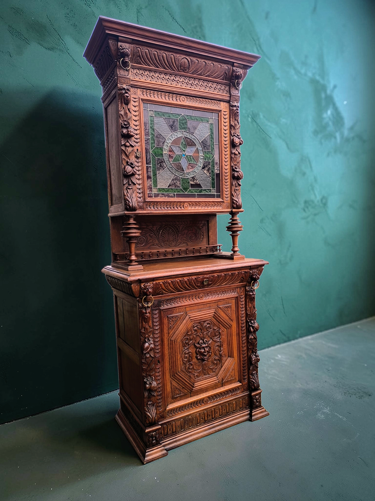 Eladásra kínálunk egy antik neoreneszánsz stílusú ólomüveges vitrint,tálalót.