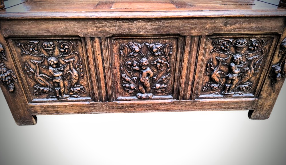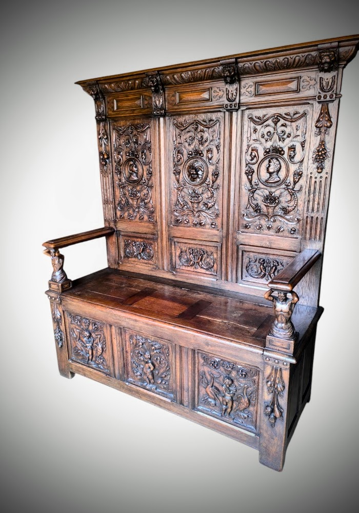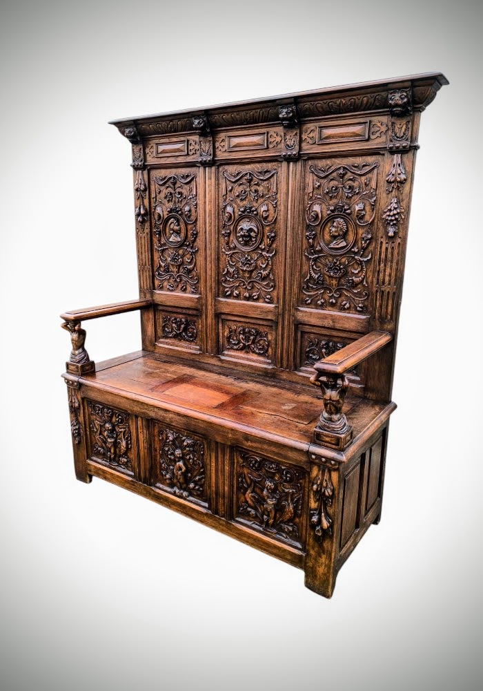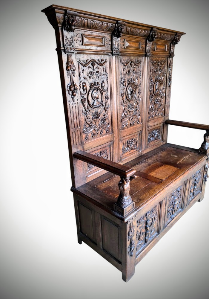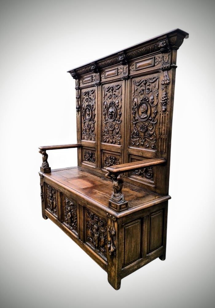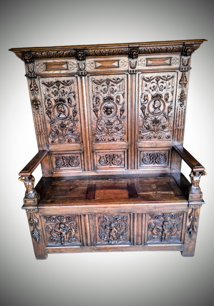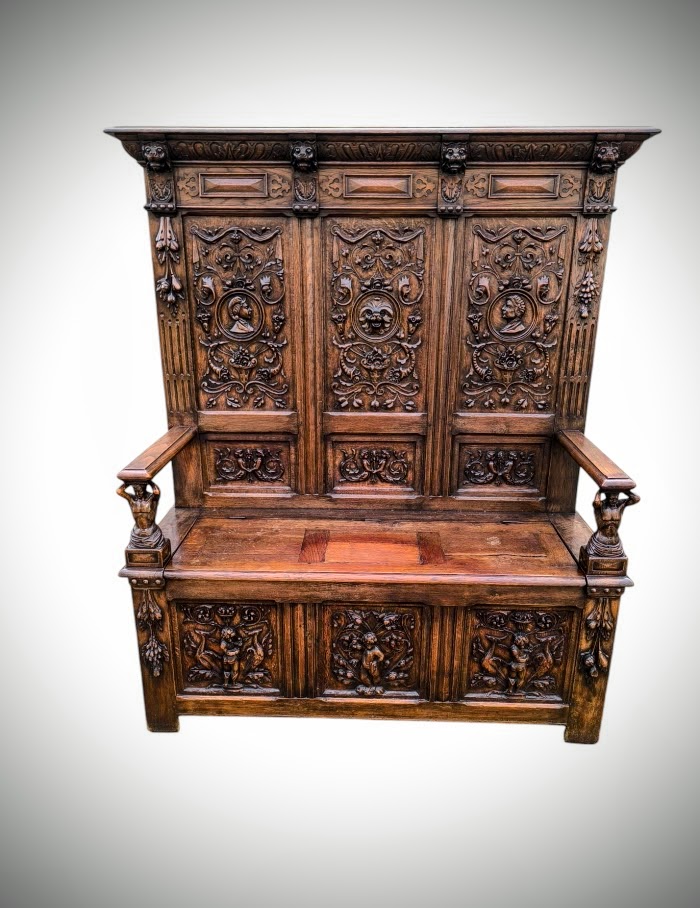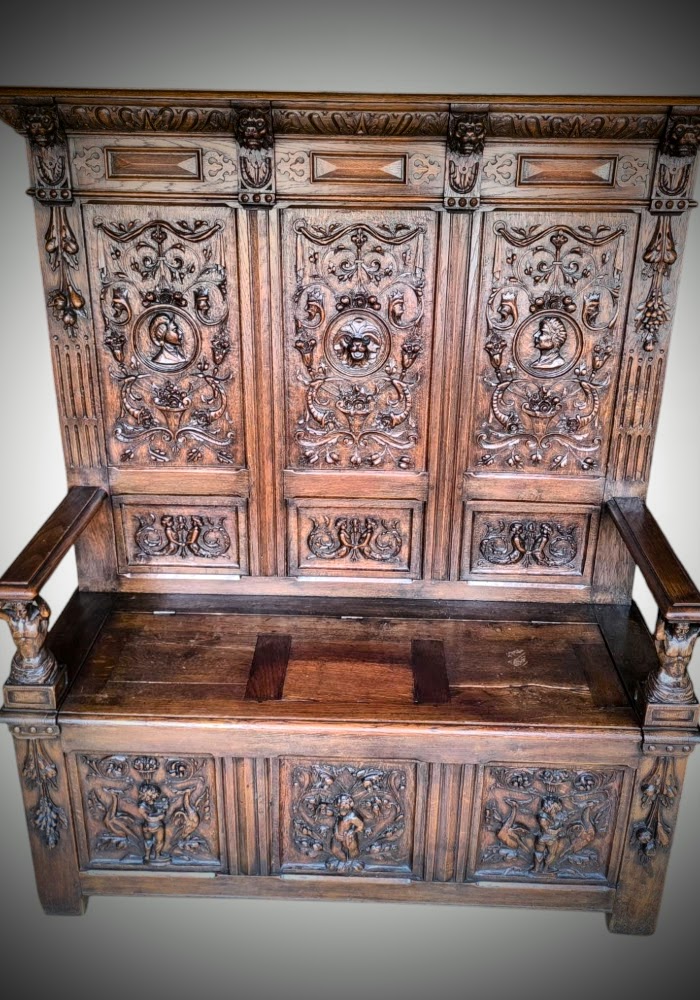 Eladásra kínálunk egy antik neoreneszánsz stílusú padot,karos ládát.