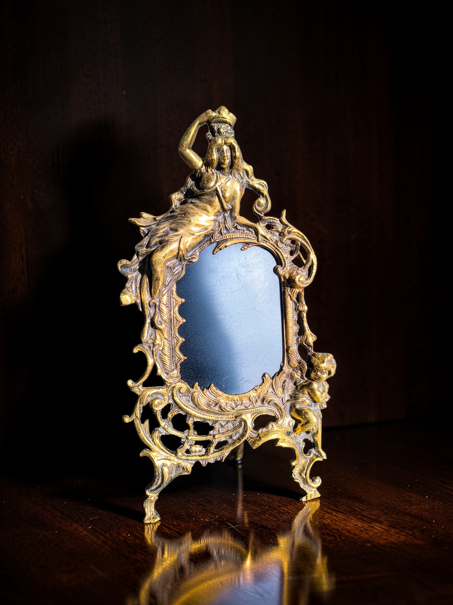 Eladó egy antik neoreneszánsz stílusú rézből készült képtartó.