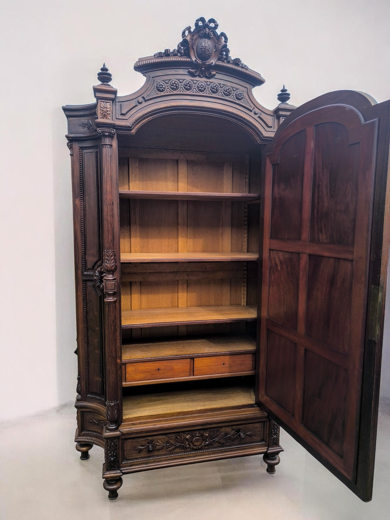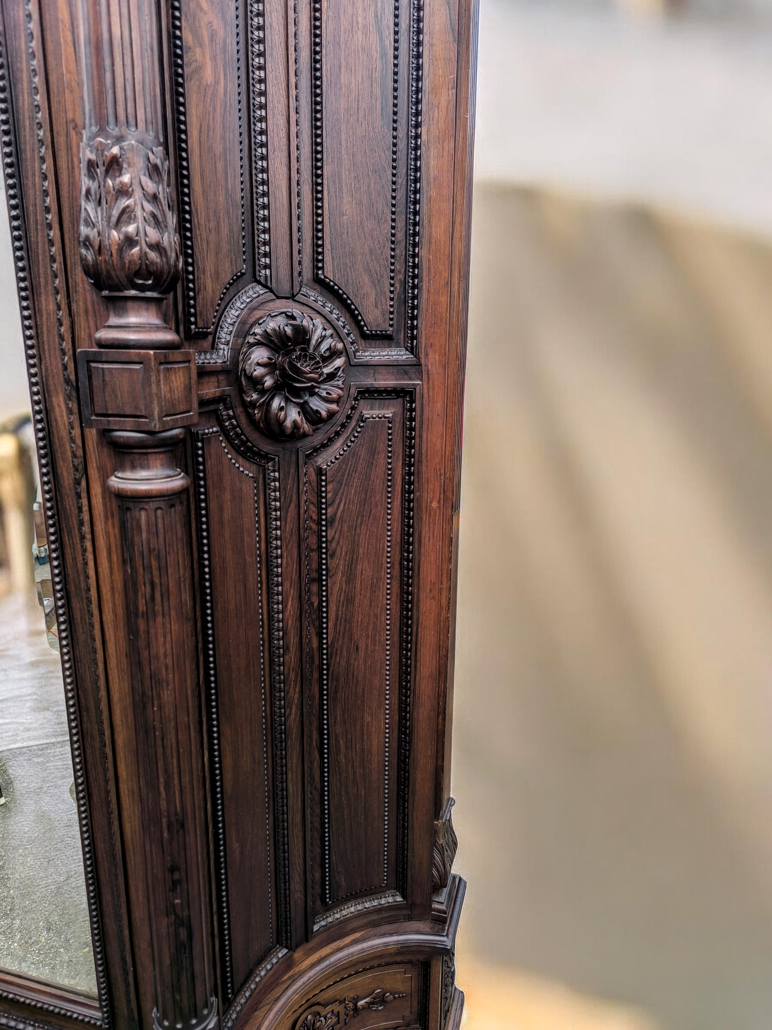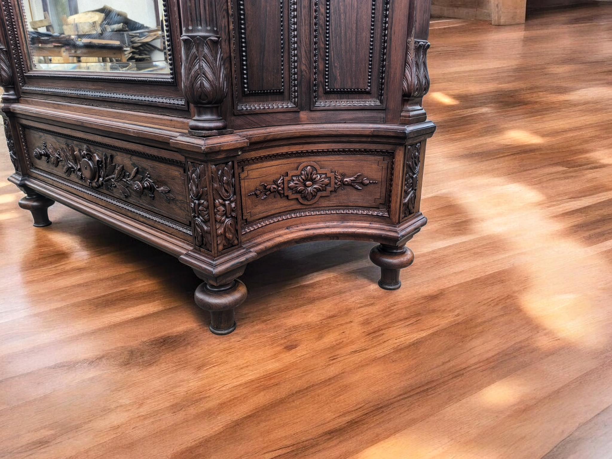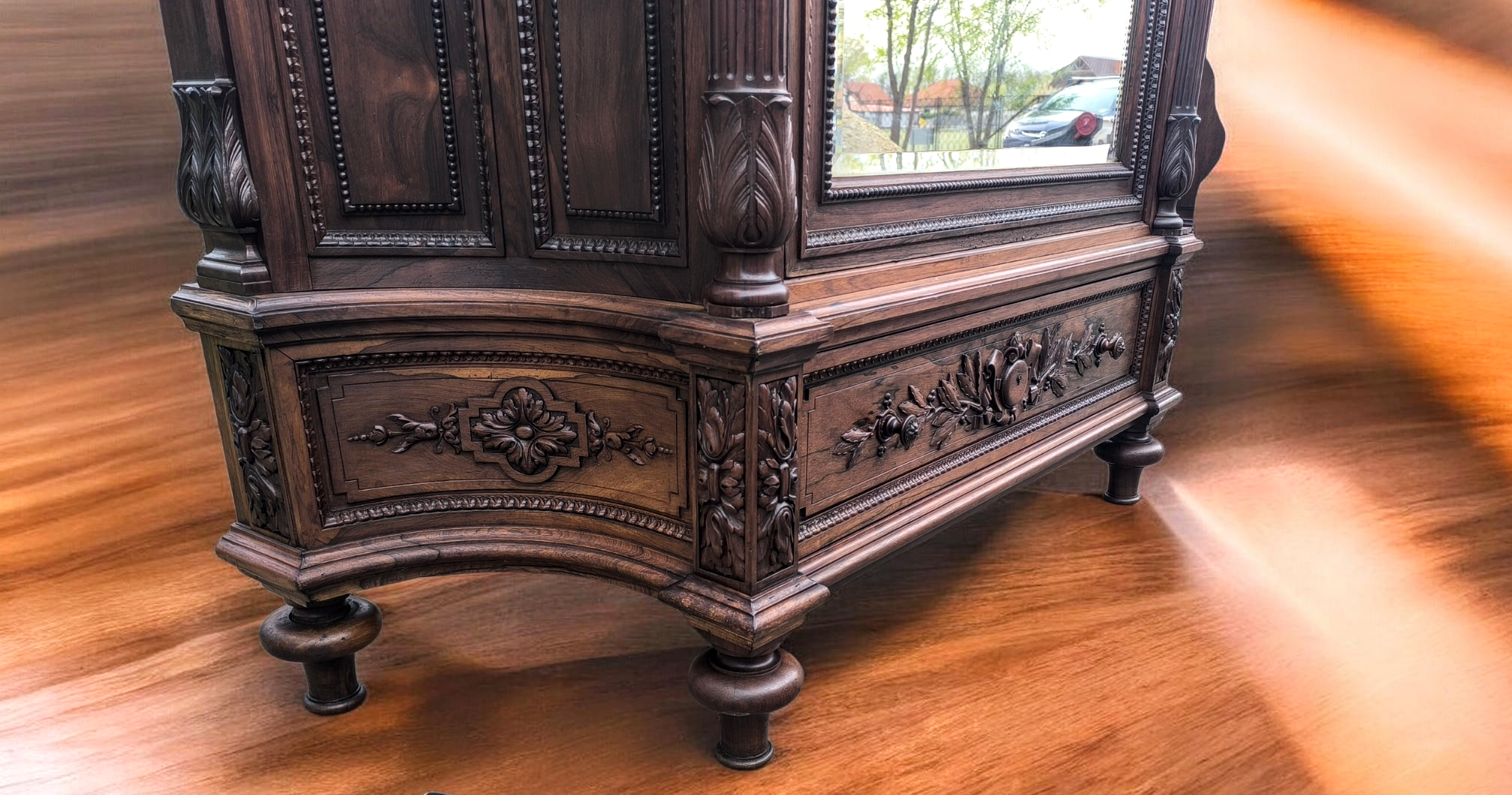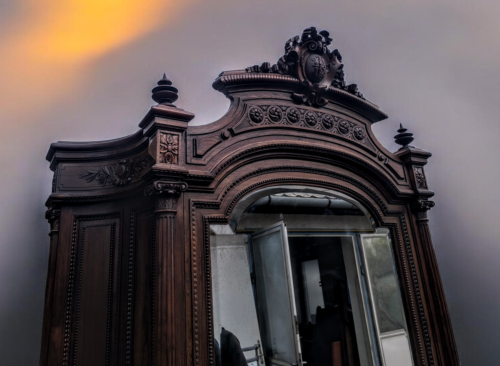 Eladásra kínálunk egy antik neoreneszánsz stílusú tükrös ruhás szekrényt,gardróbot.