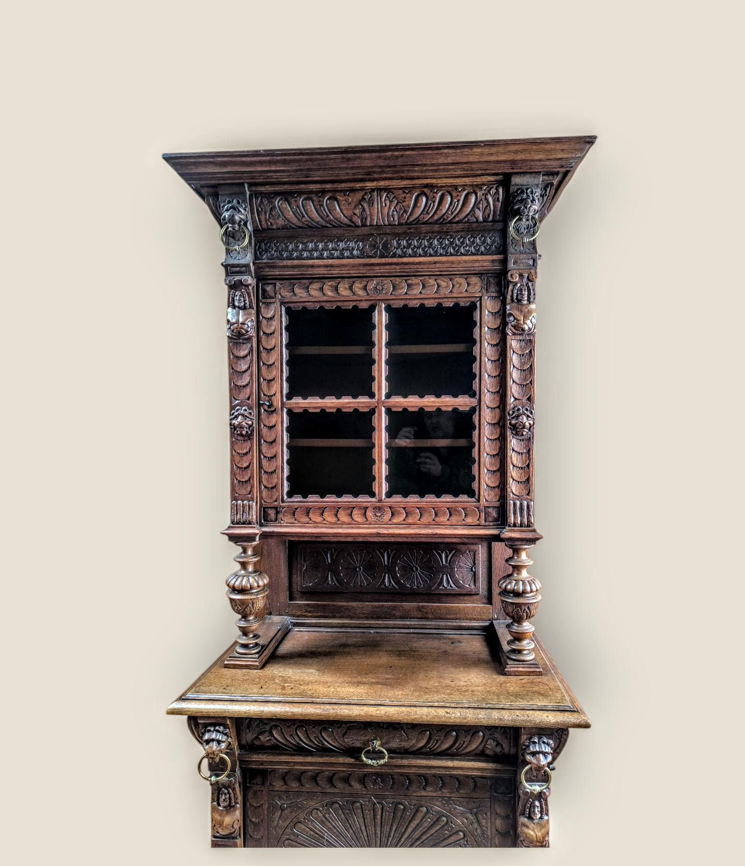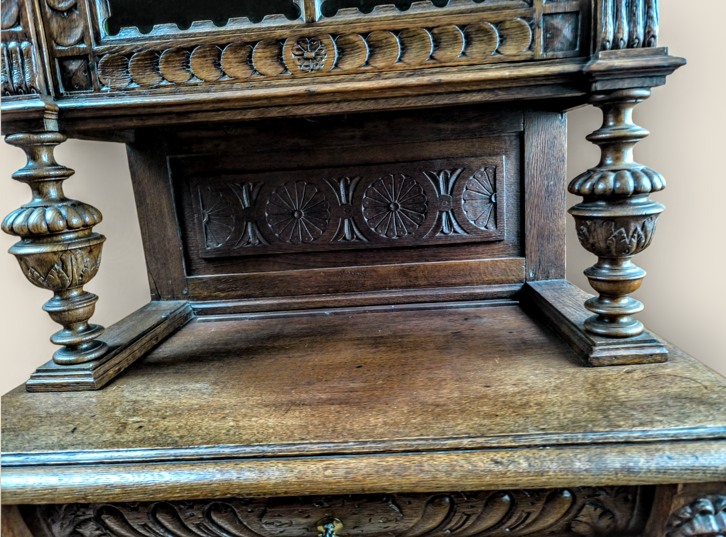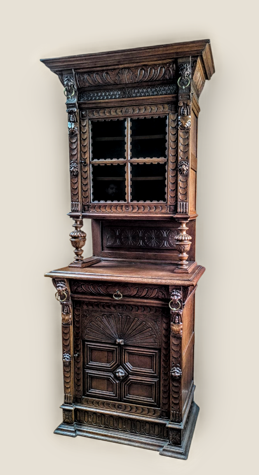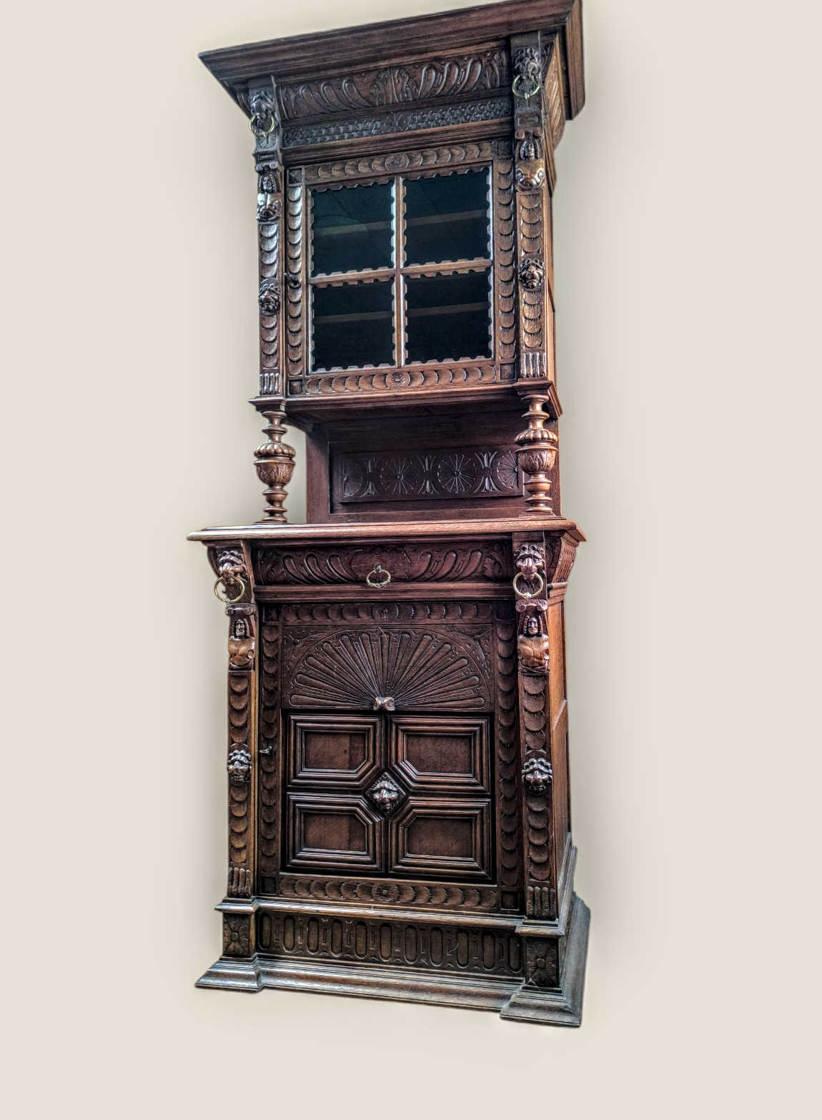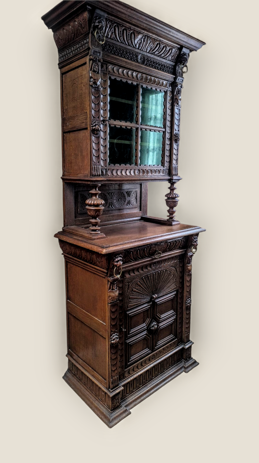 Eladásra kínálunk egy antik neoreneszánsz stílusú vitrint,tálalót,szekrényt.