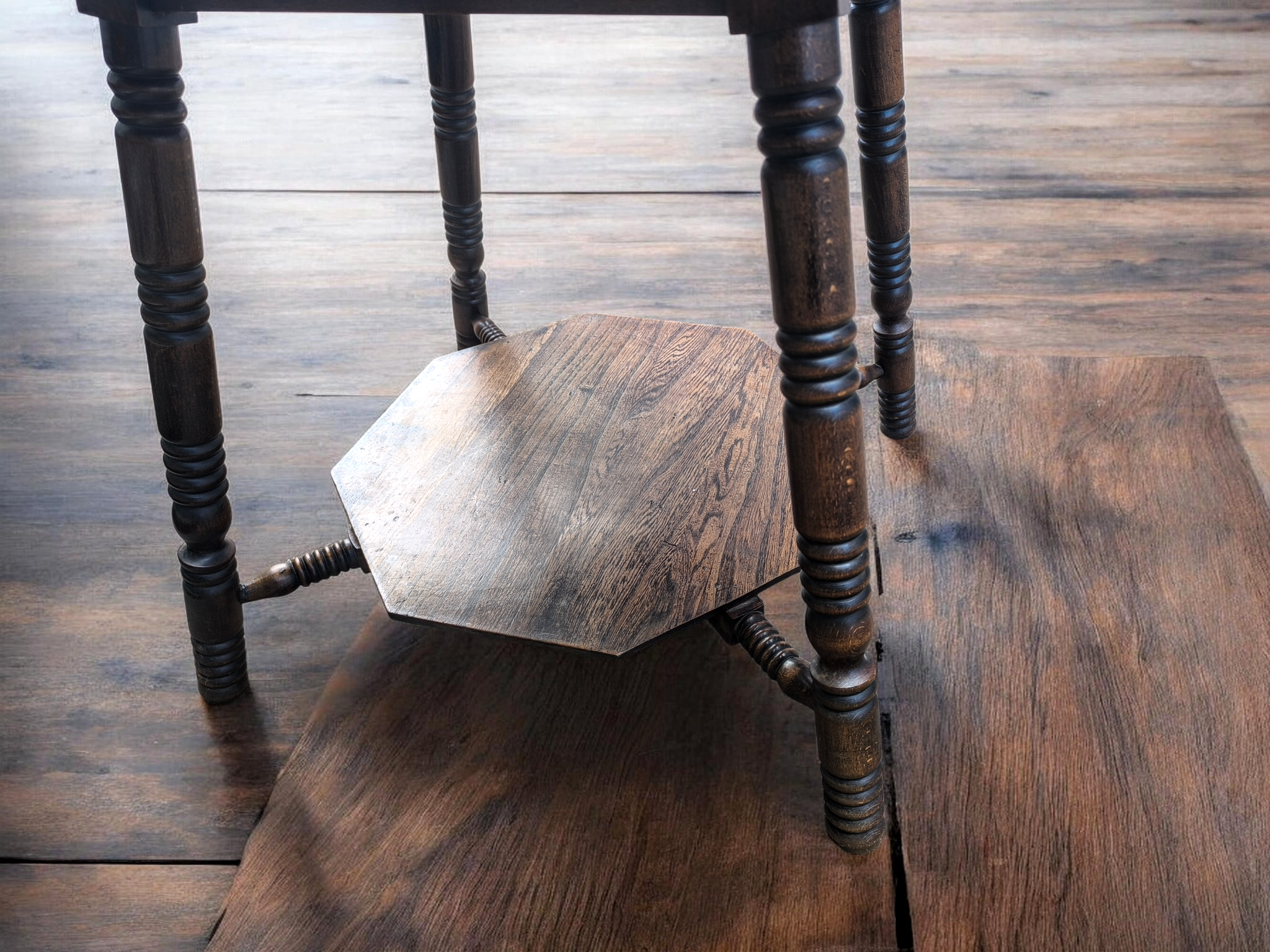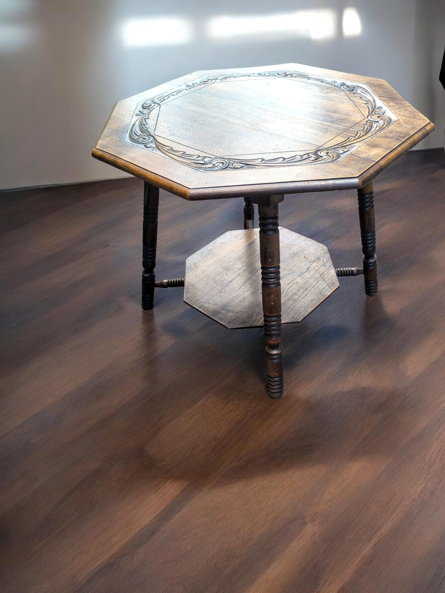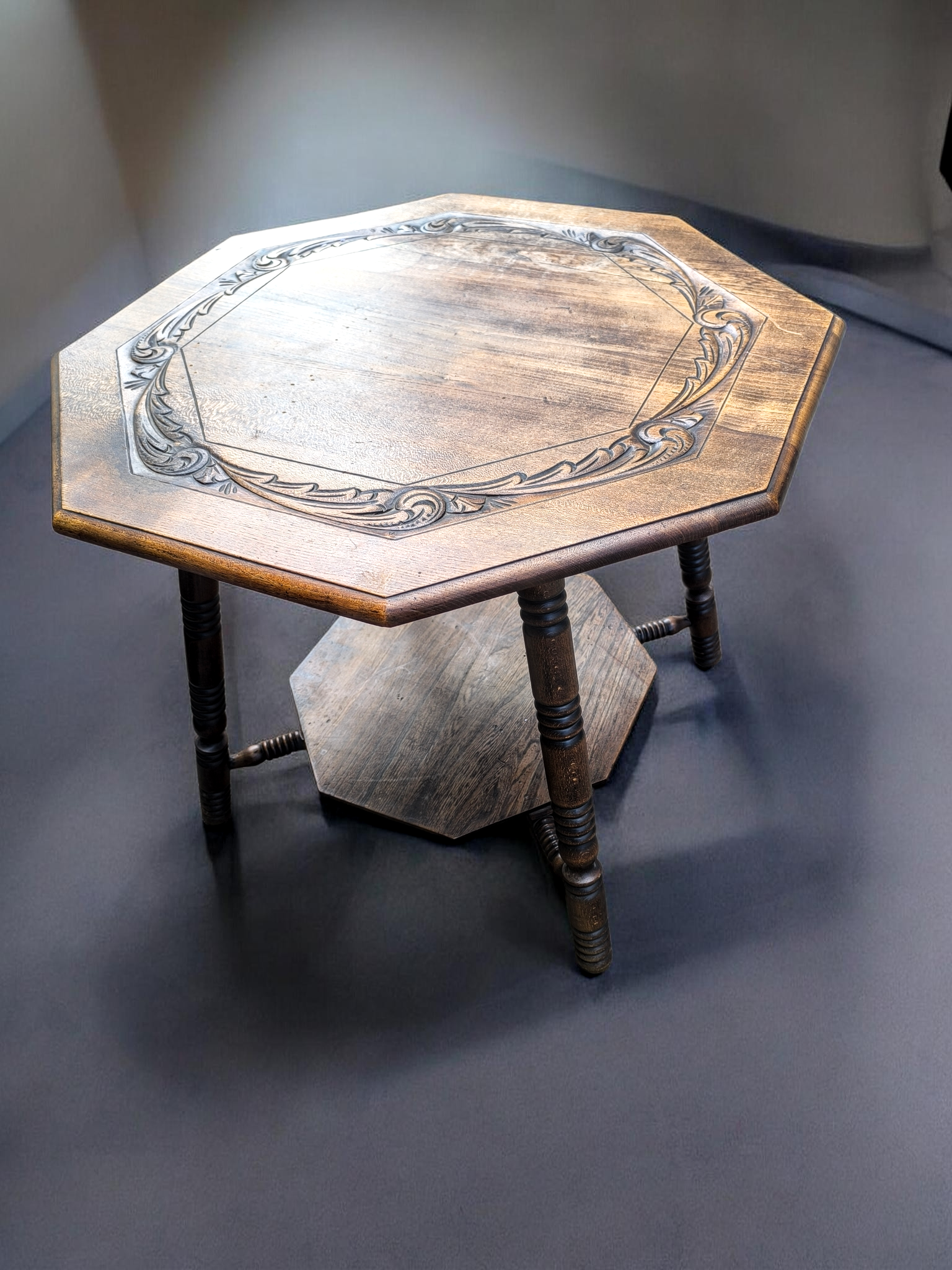 Eladásra kínálunk egy antik stílusú nyolcszögletű historizáló kisasztalt.