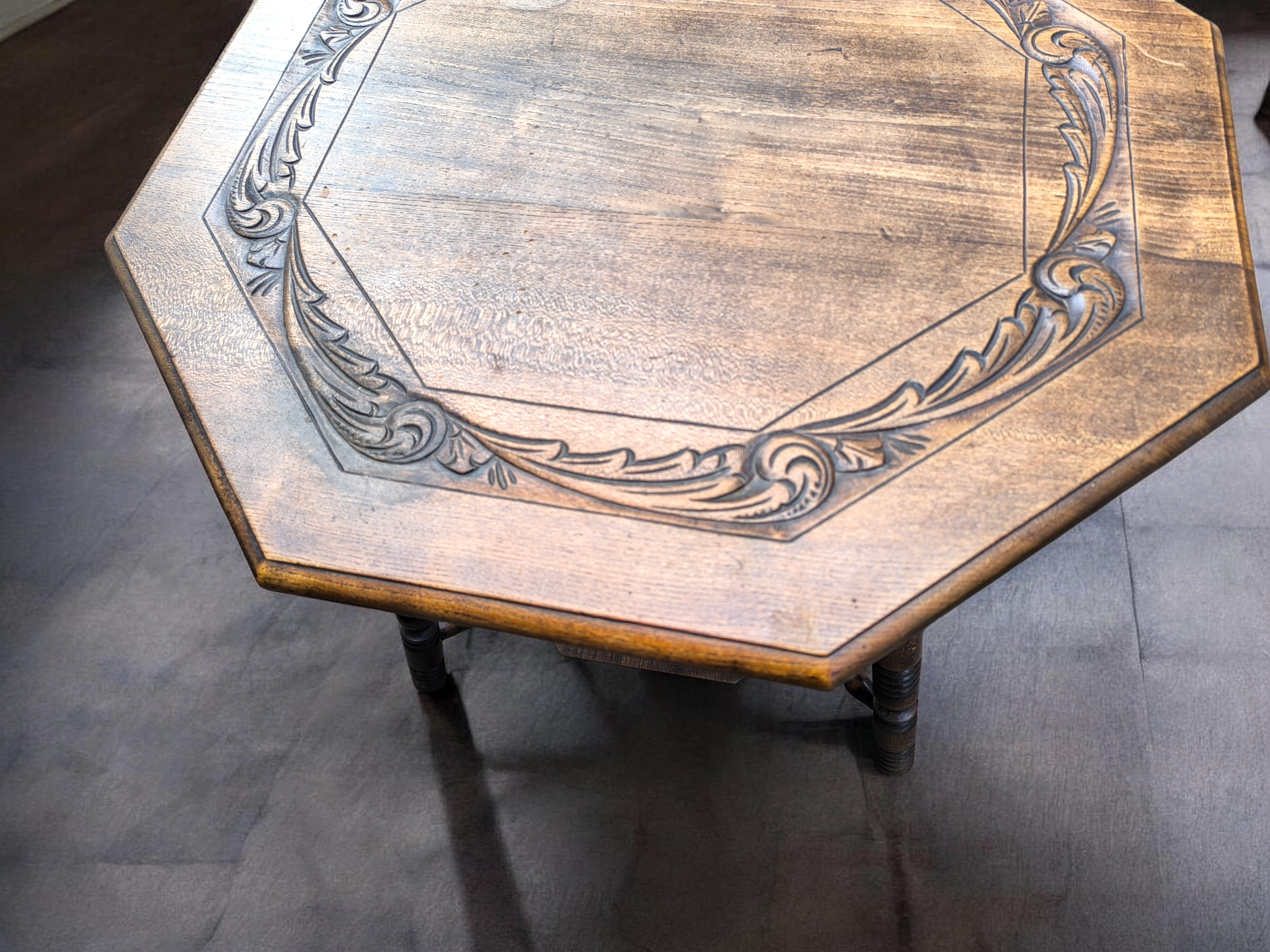 Antik stílusú nyolcszögletű historizáló kisasztal.