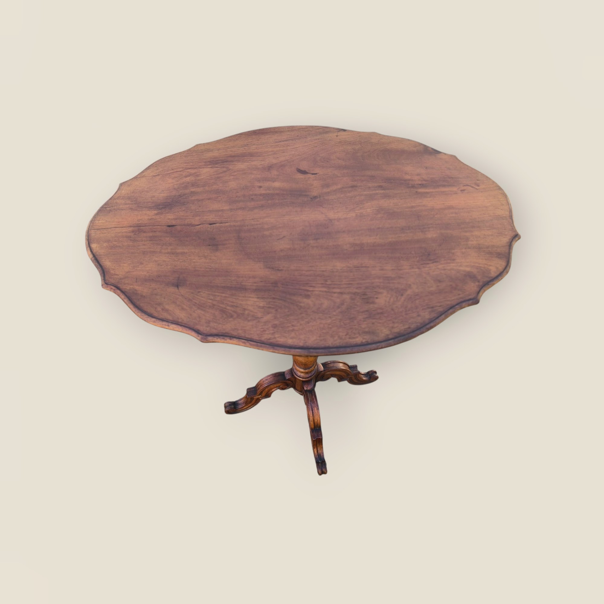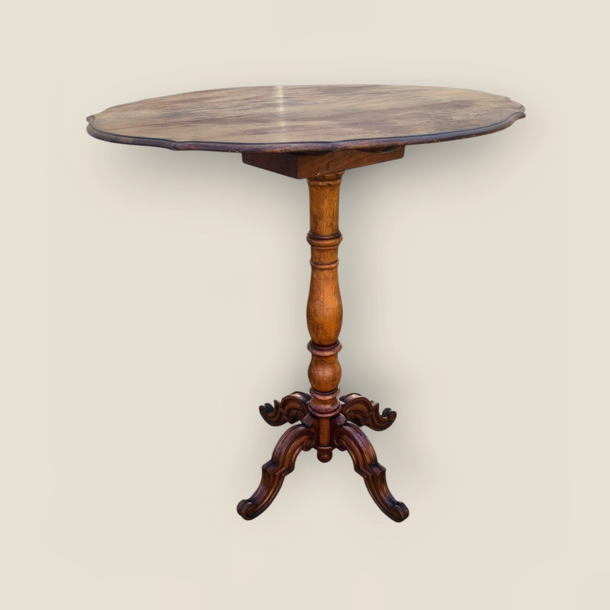 Eladó egy antik teázó,lerakóasztal vagy dohányzóasztal szép állapotban. Kecses, ívelt lábakkal, körben hullámos lappal rendelkezik.