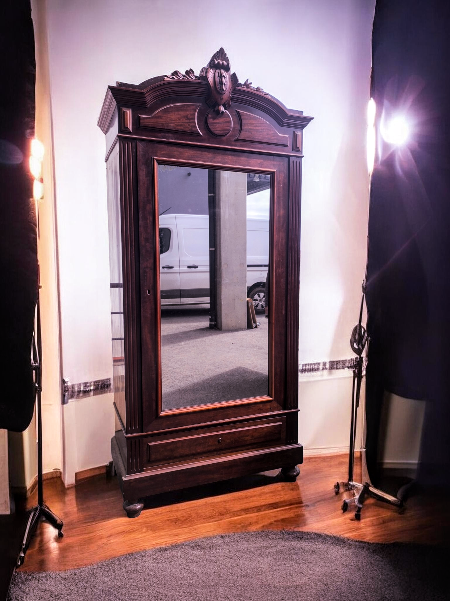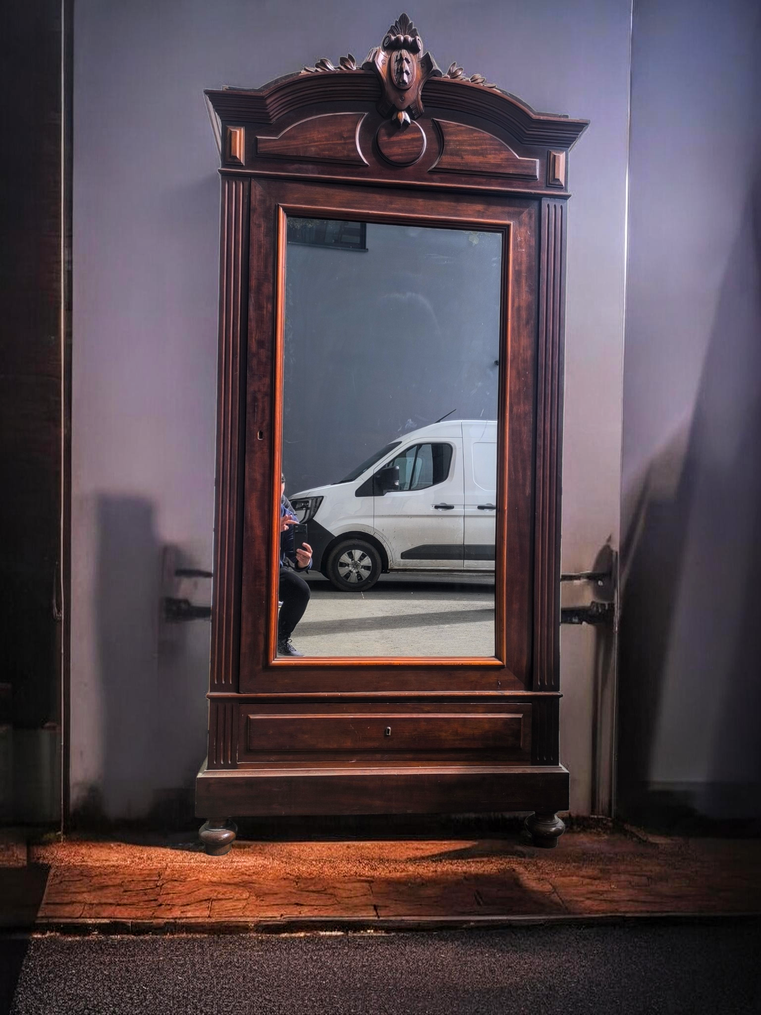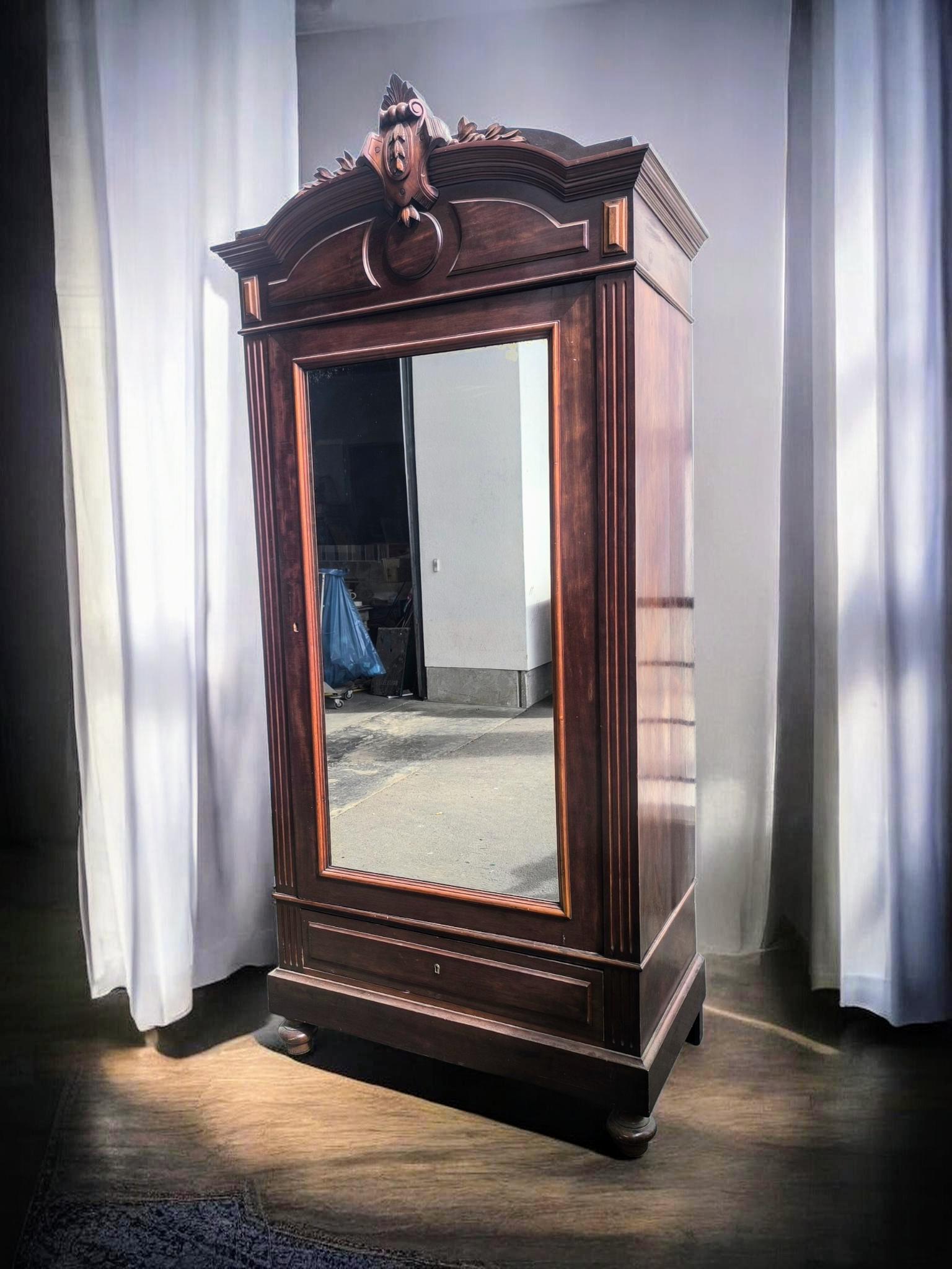 Eladásra kínálunk egy antik tükrös ruhás szekrényt,gardróbot .