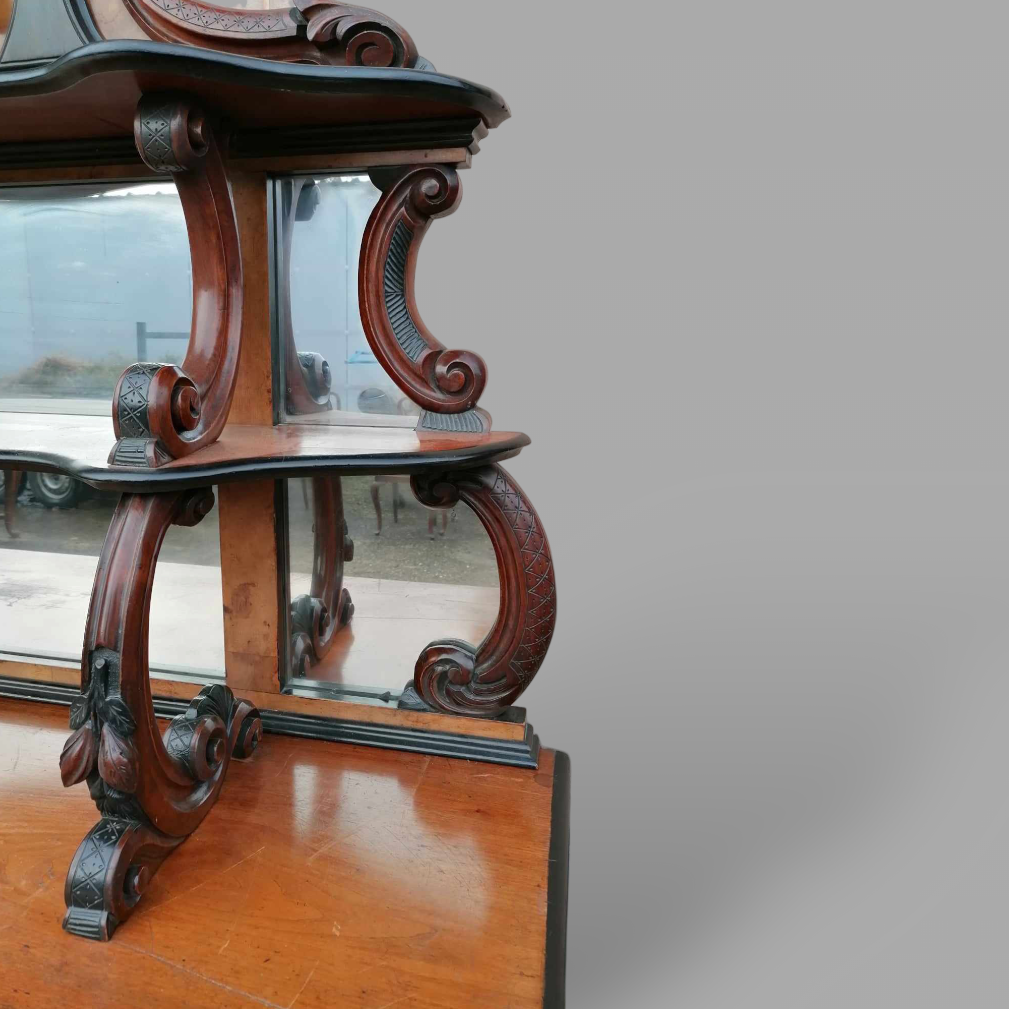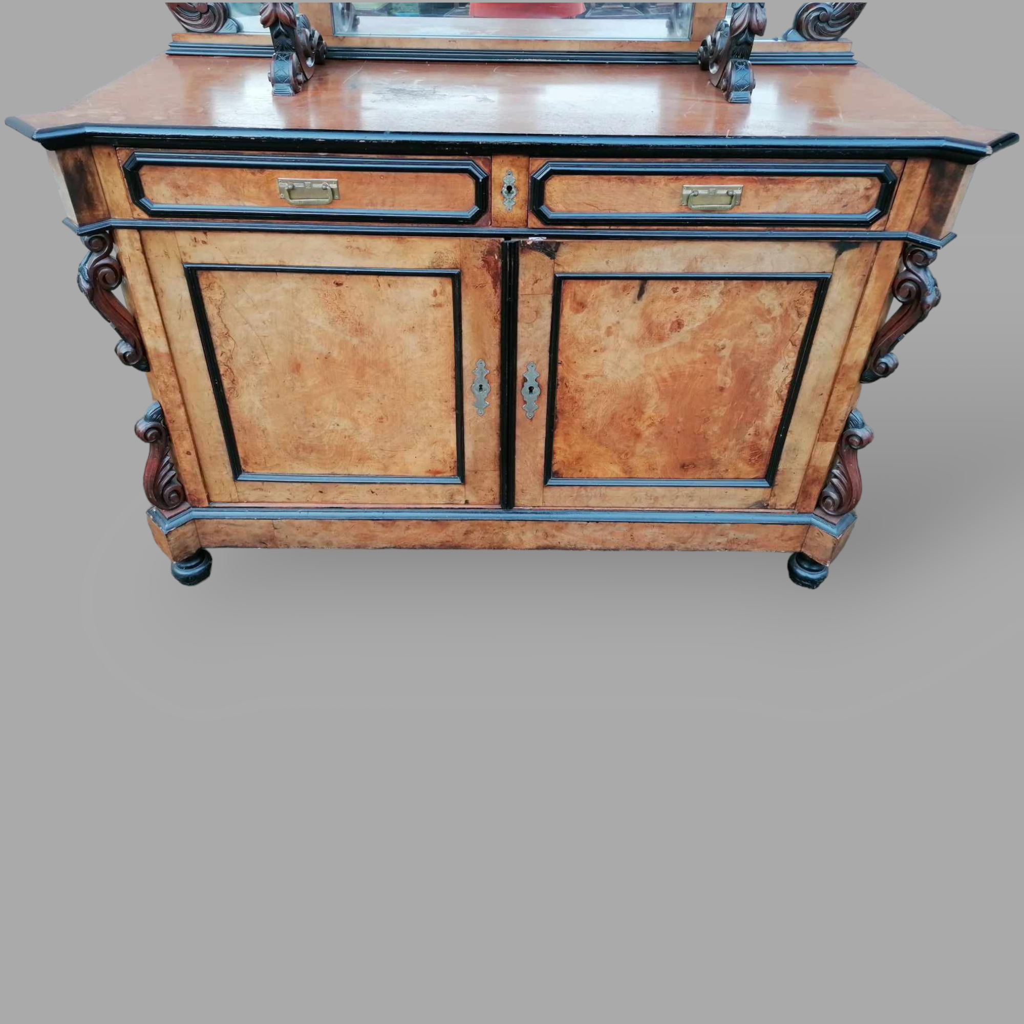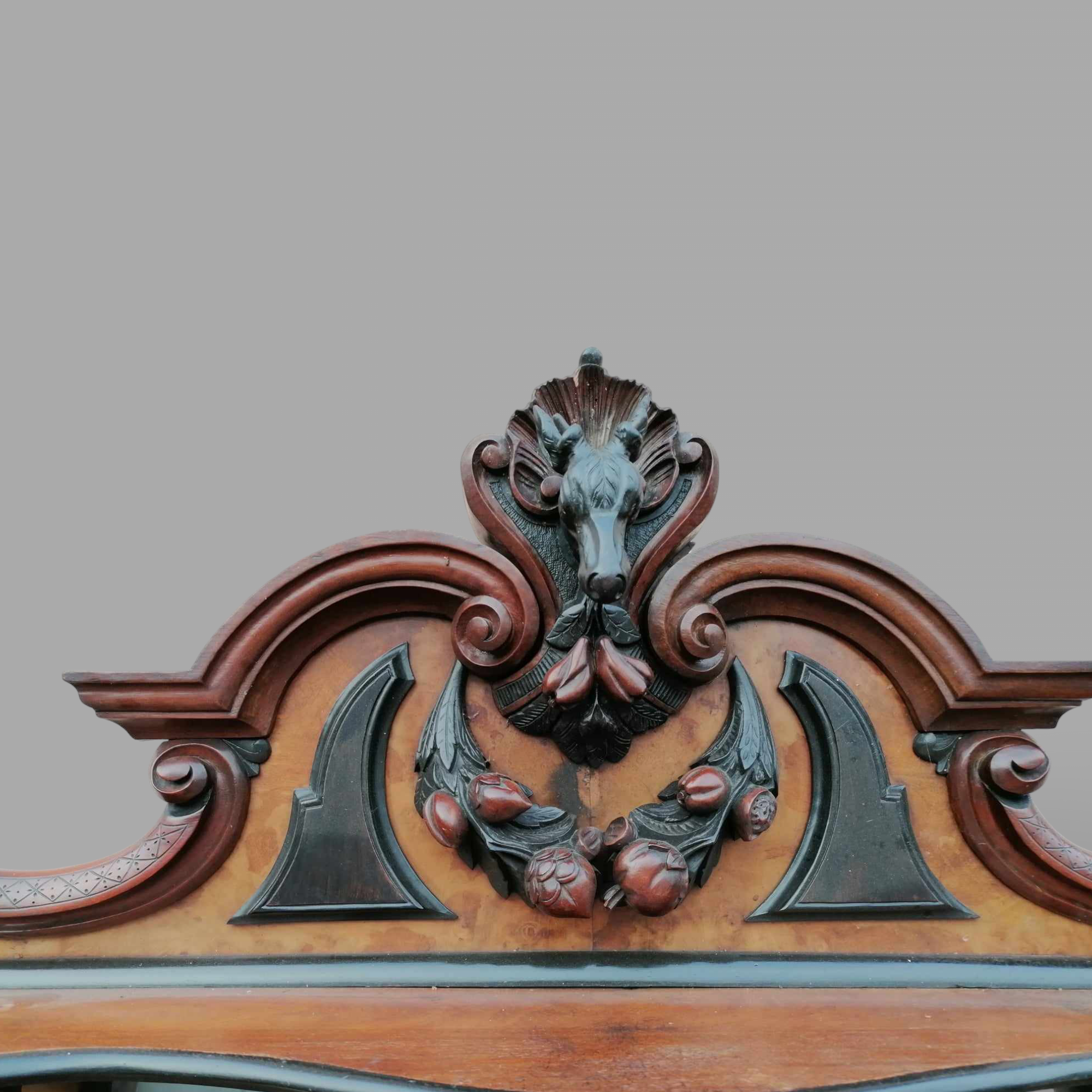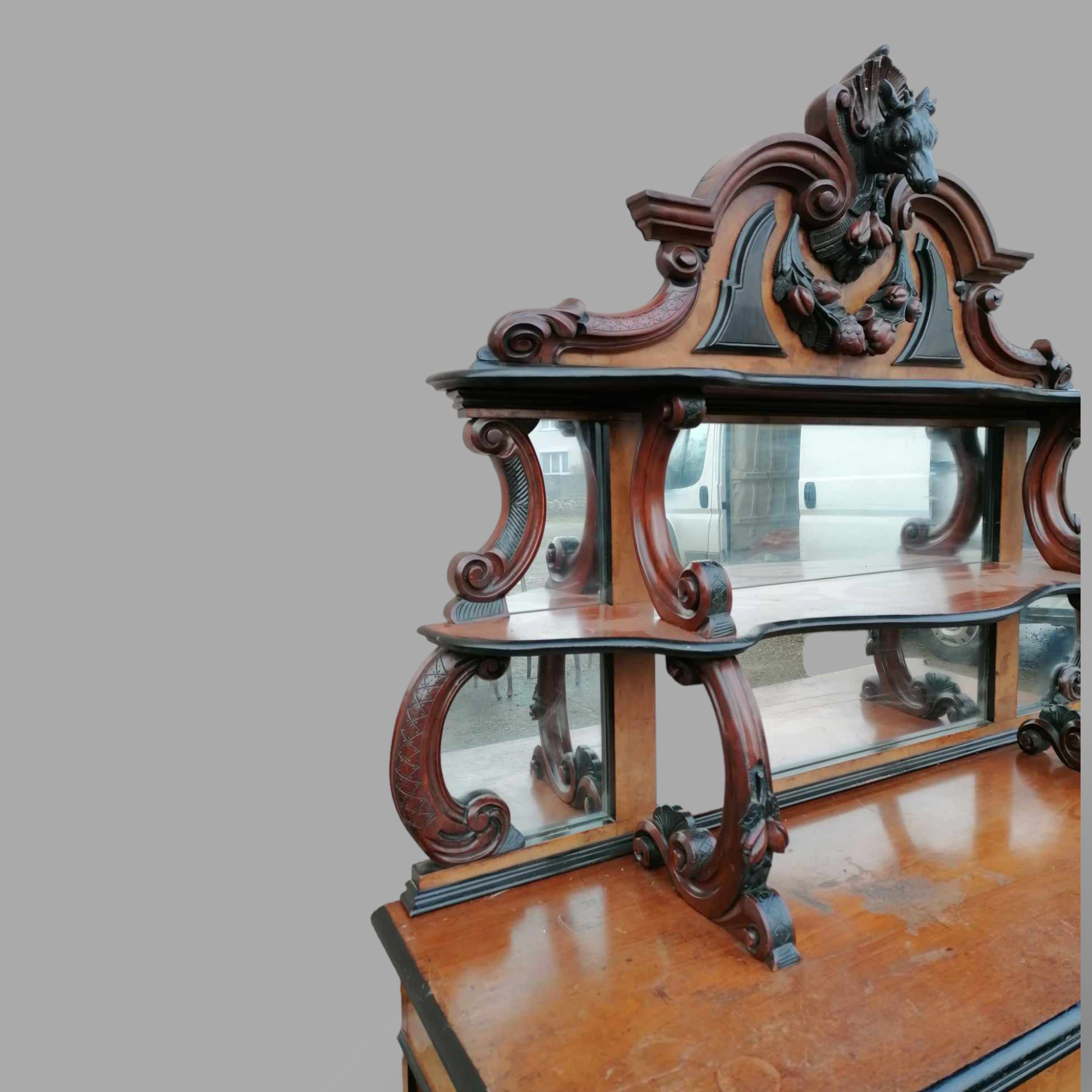 Eladó barokk pohárszék, tálaló szép állapotban. Alul ajtós, fiókos kialakítású, felül különleges pohárszékkel, amelynek a hatulja tükörrel borított, tetején díszes faragásokkal illetve fa őz trófea díszítéssel. Ez miatt ajánlom vadász klub helyiségbe, terembe.