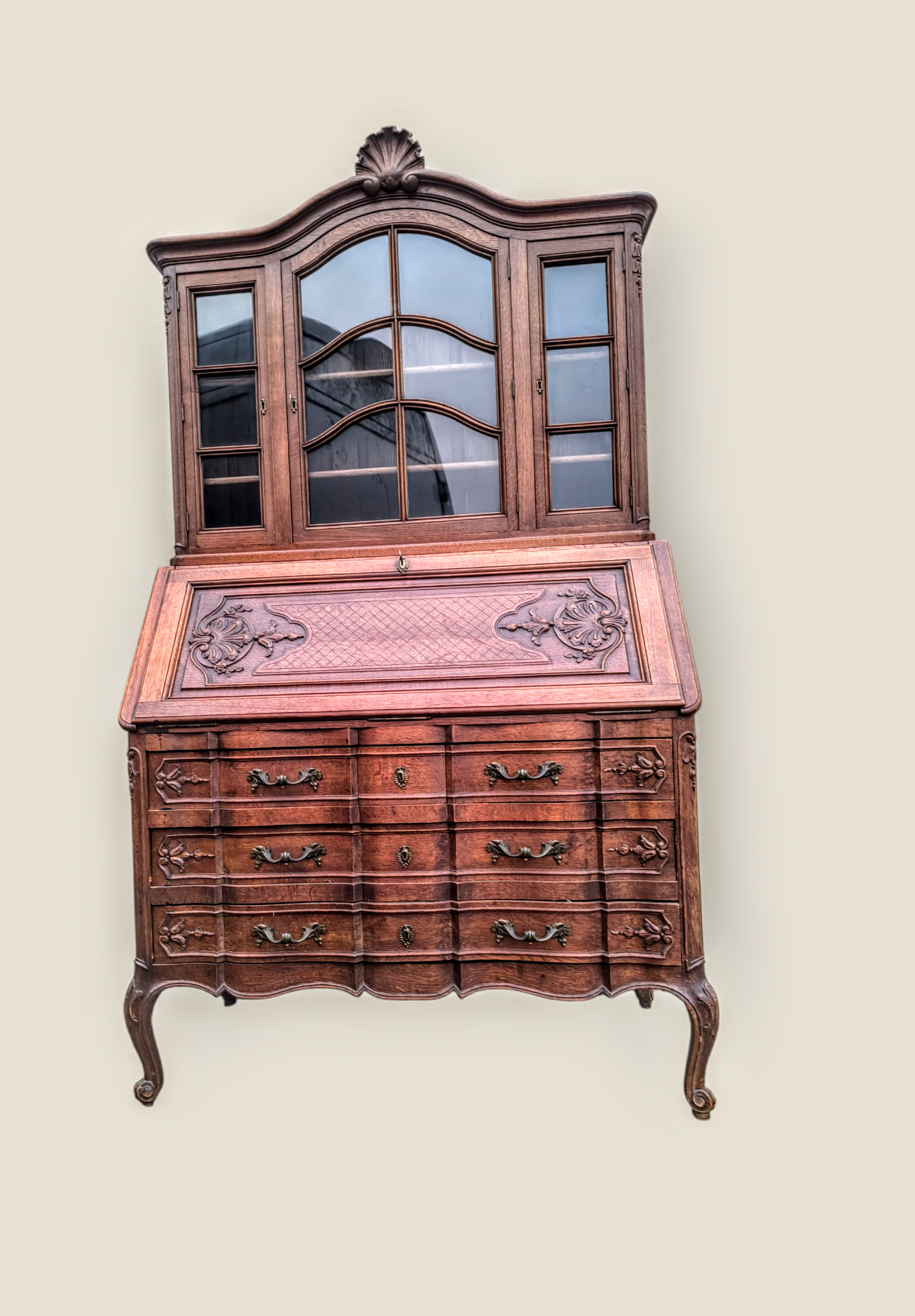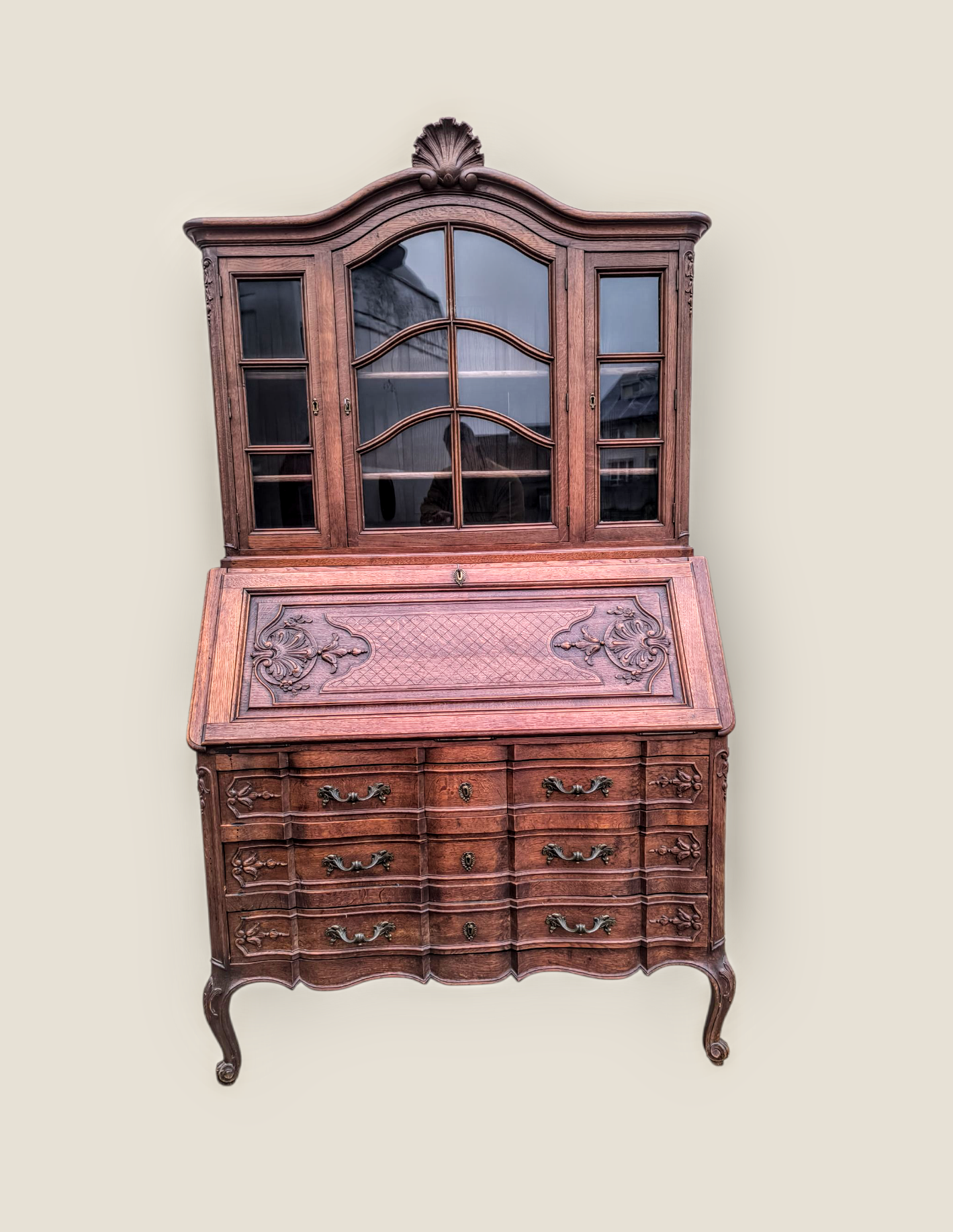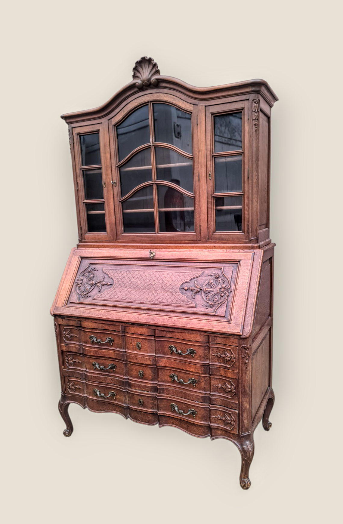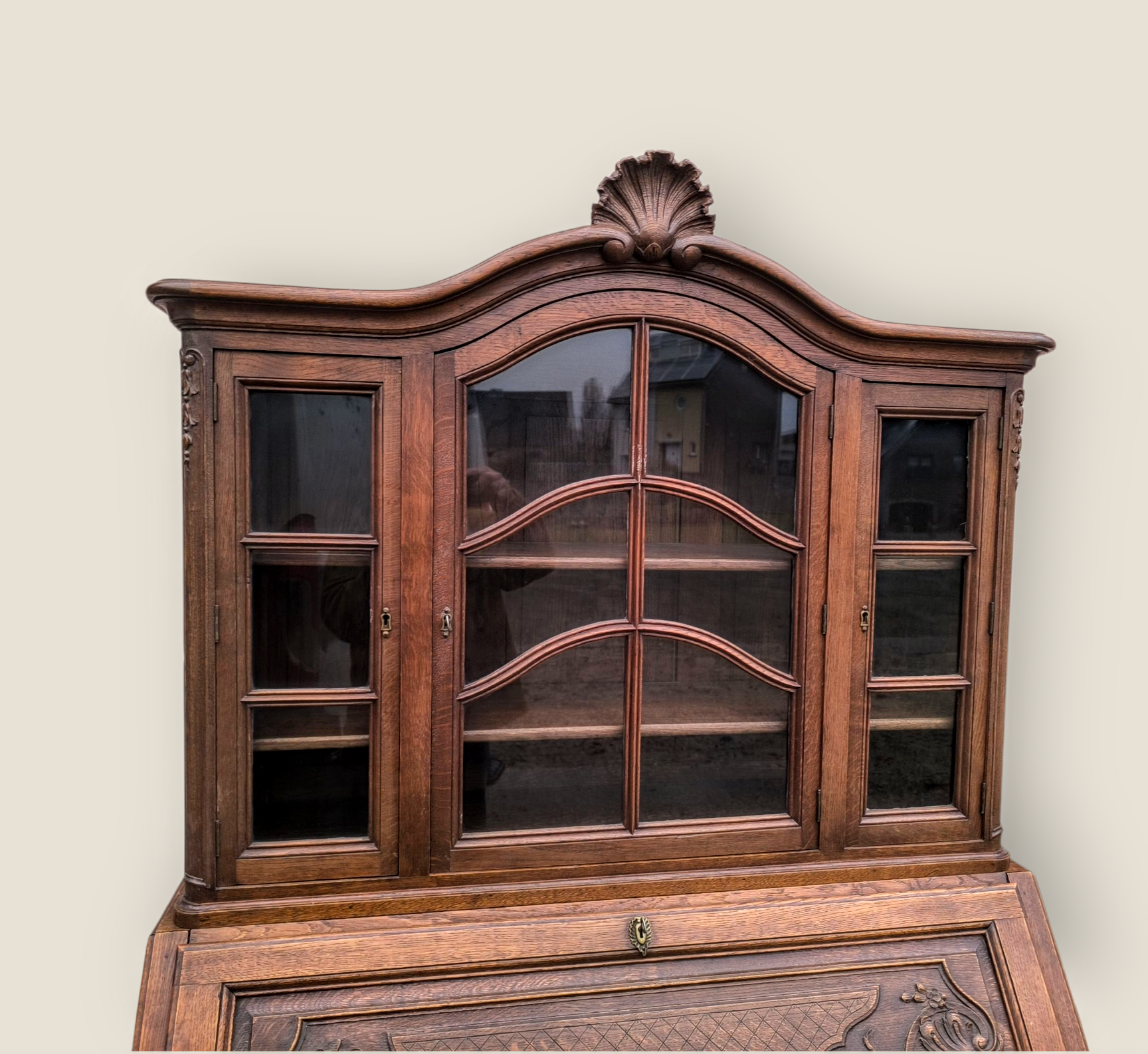 Eladásra kínálunk egy antik vitrines szekretert,kabinetszekrényt.