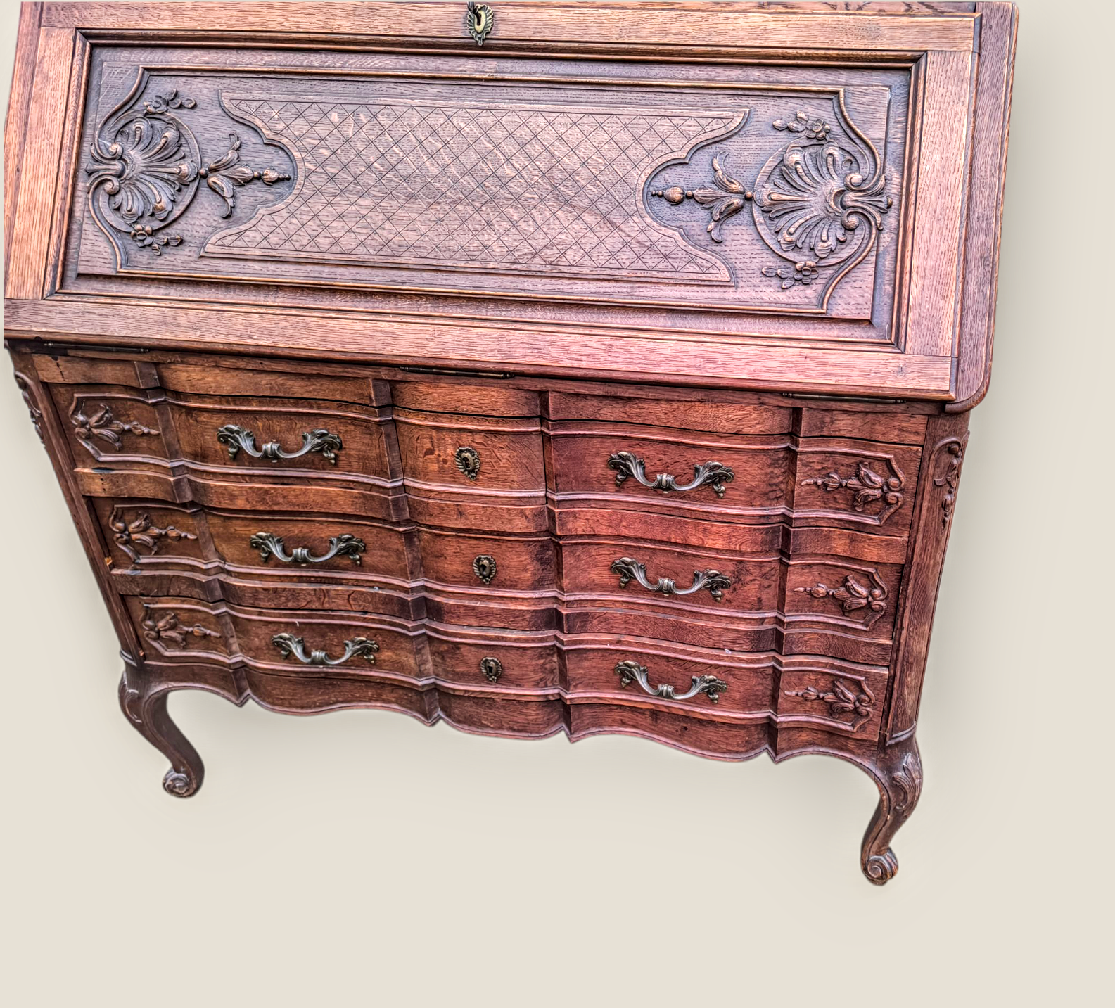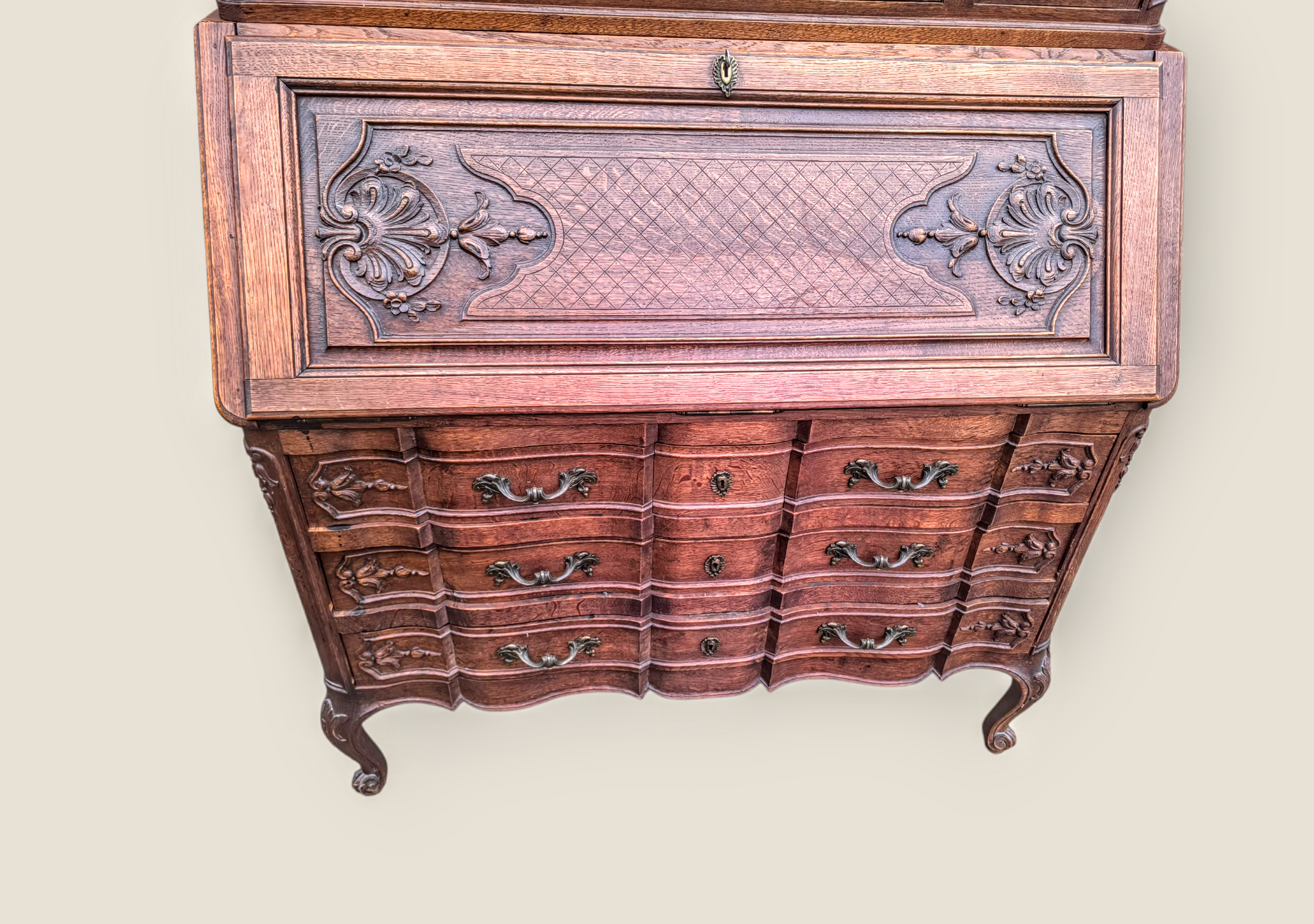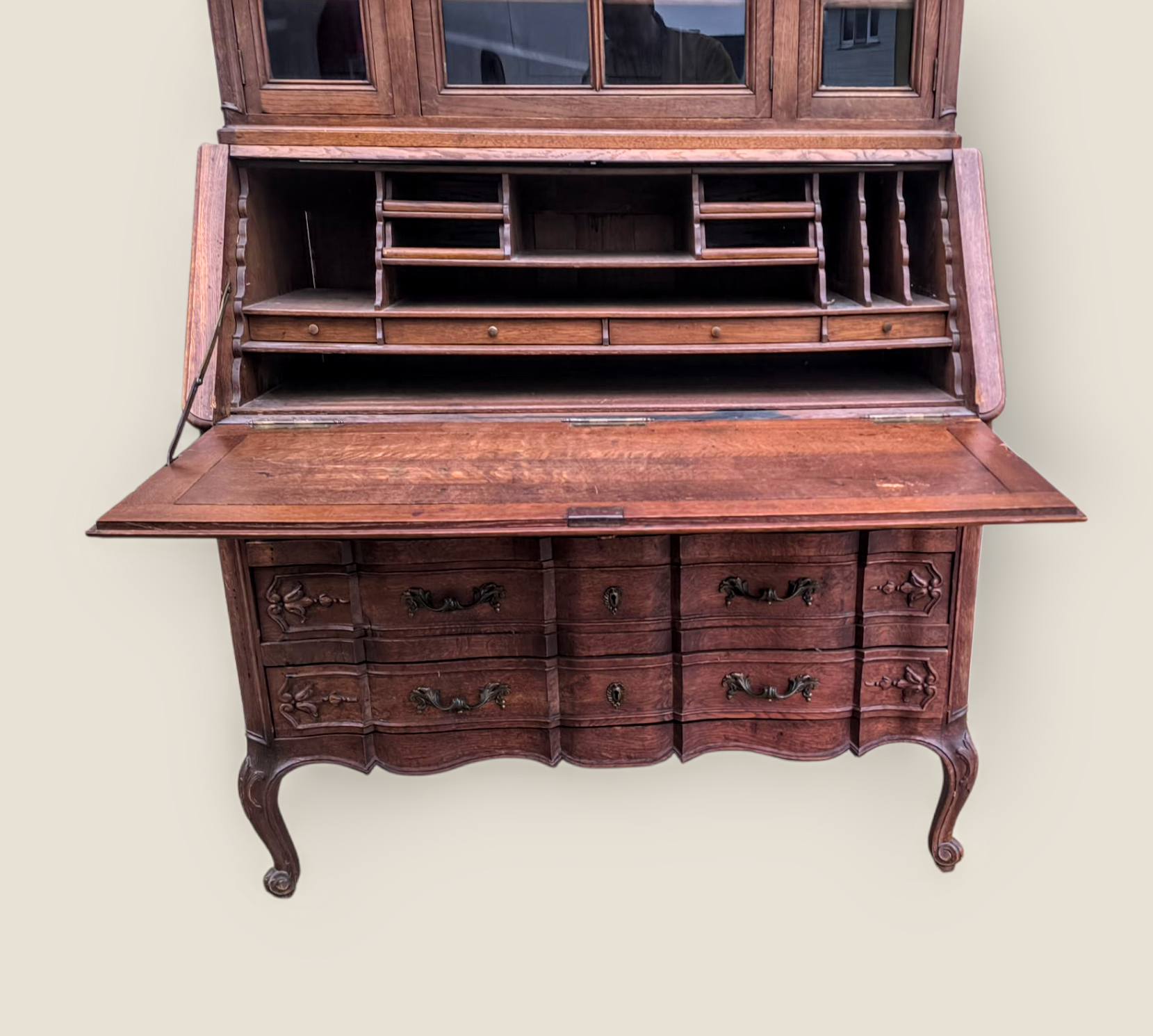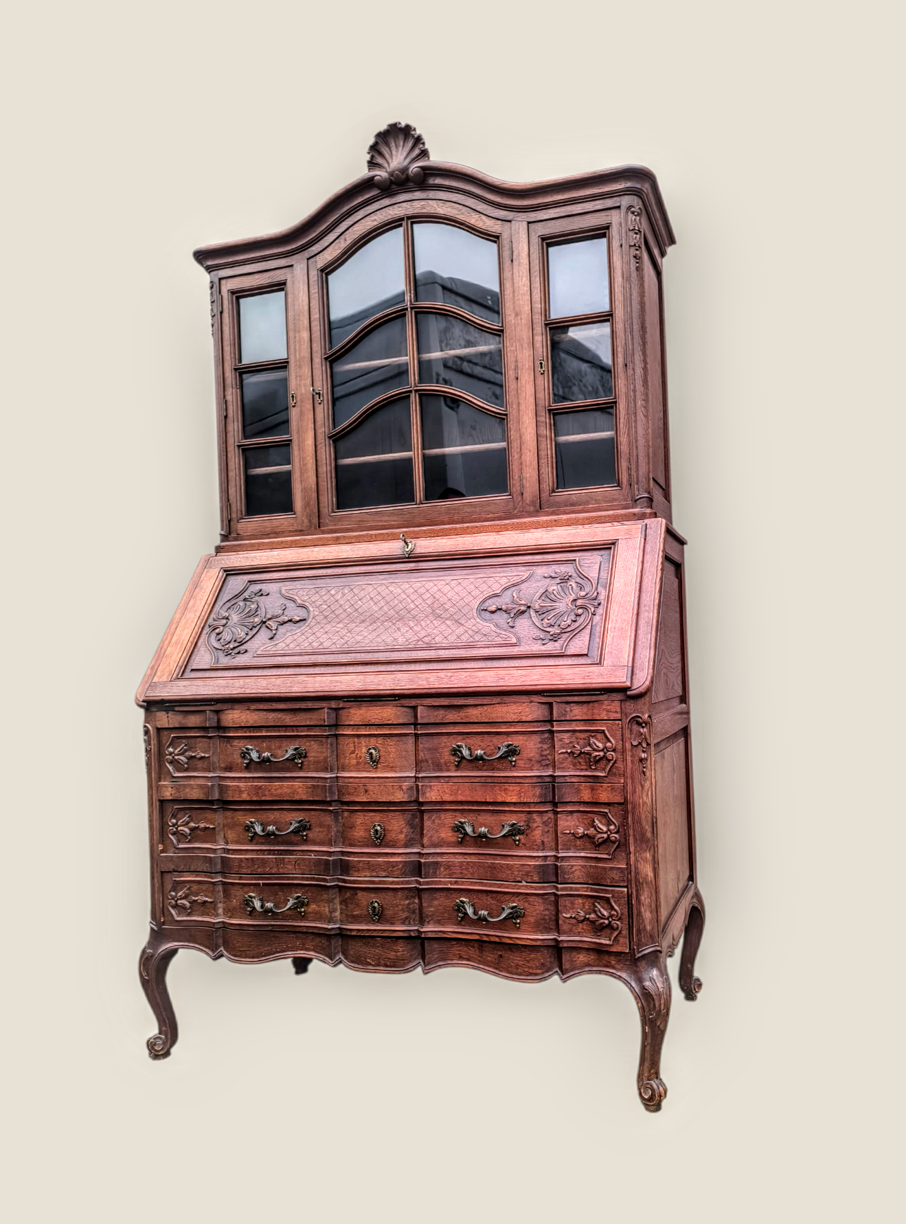 Eladásra kínálunk egy antik vitrines szekretert,kabinetszekrényt.