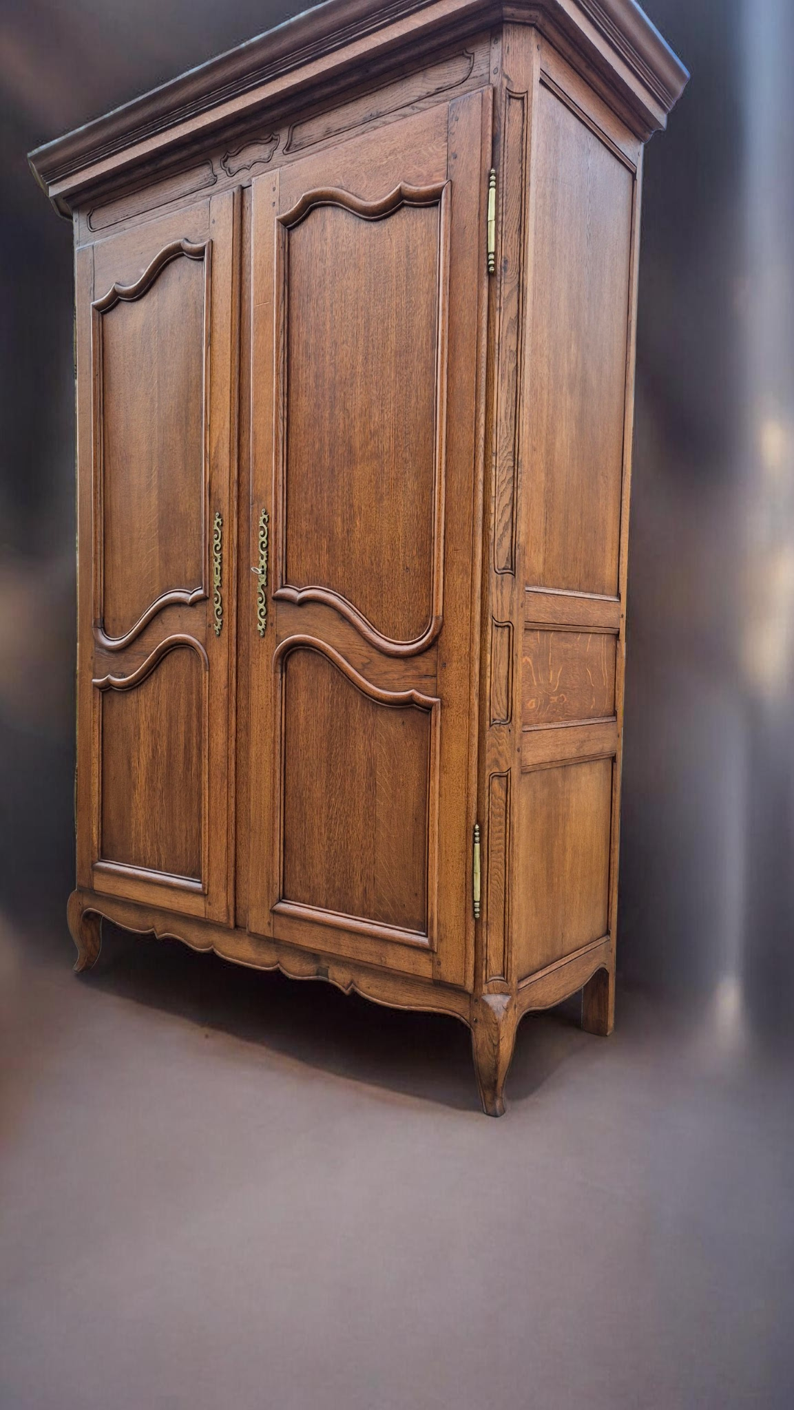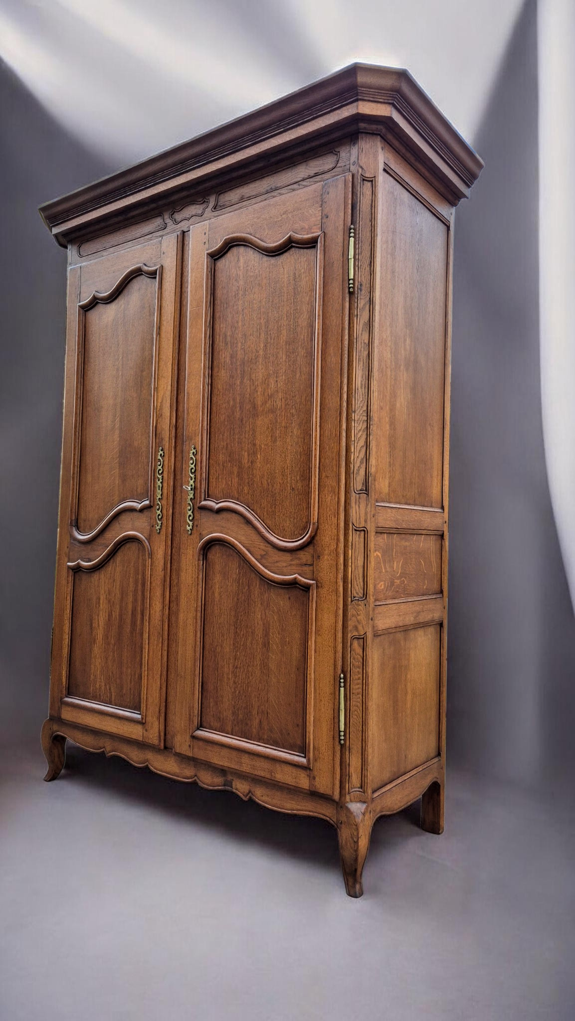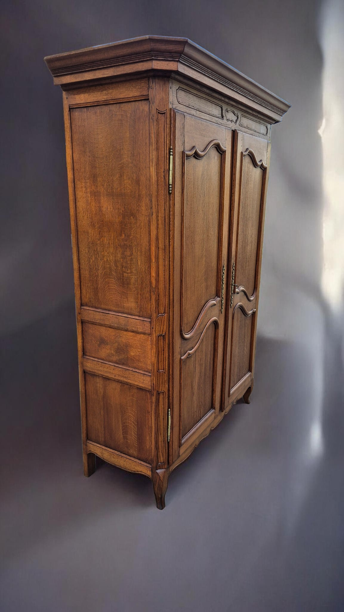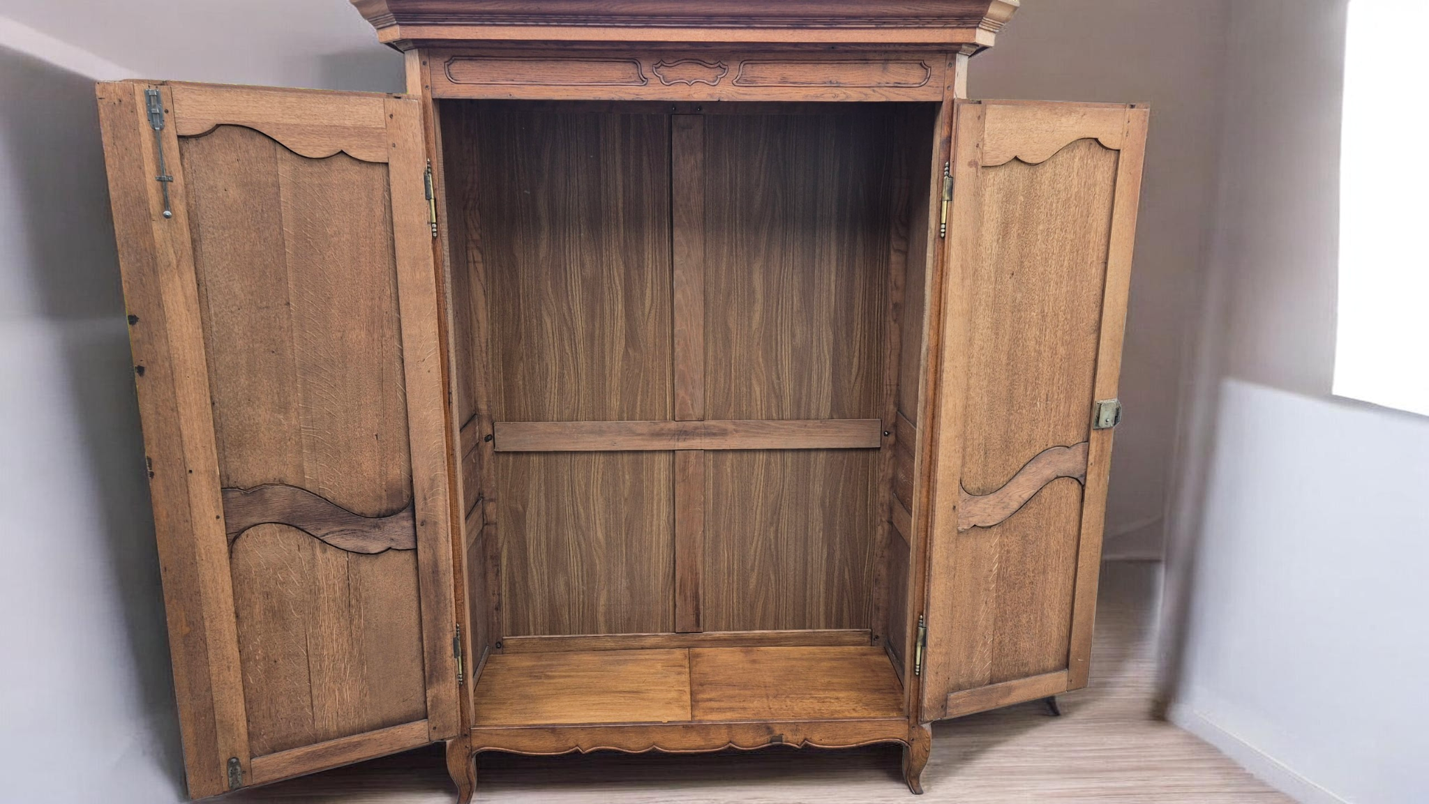 Tömör tölgyfa, eredeti patinával.Eredeti, díszes réz zsanérok és kulcspajzsok.
