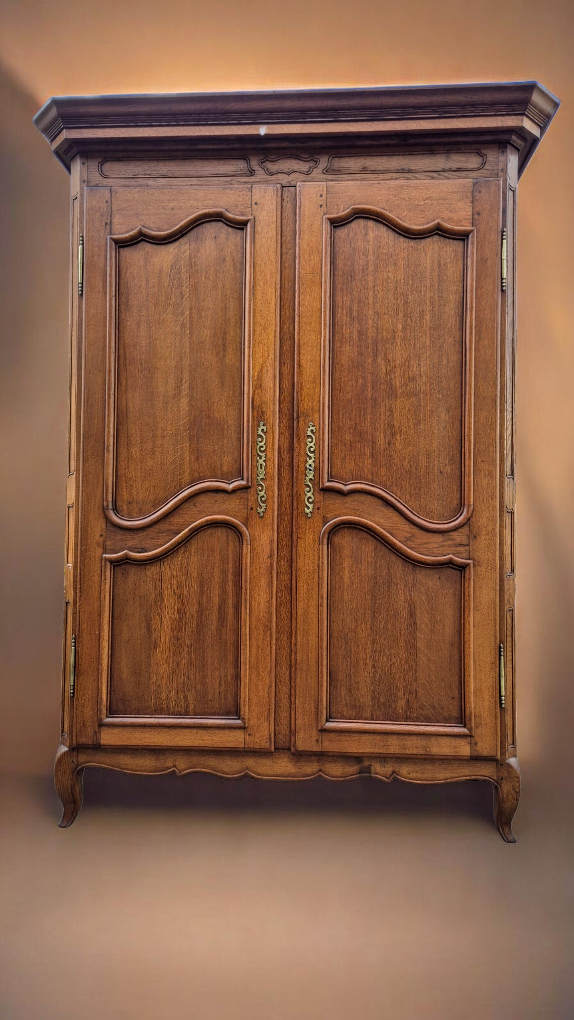 Eladó egy elegáns, klasszikus XV. Lajos (Louis XV) stílusú kétajtós szekrény. A darab a stílusra jellemző gazdag ívvilággal, hullámos párkányzattal és jellegzetes „cabriole” lábakkal rendelkezik.