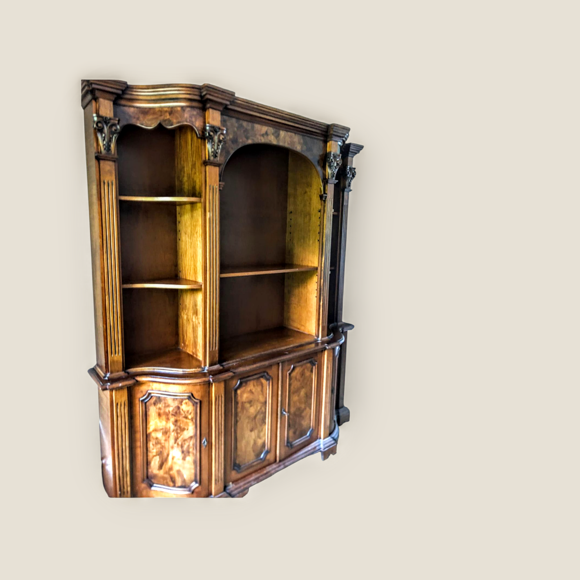 Eladásra kínálunk egy barokk stílusú gyökérfurnéros tálalót,nyitott könyvszekrényt.