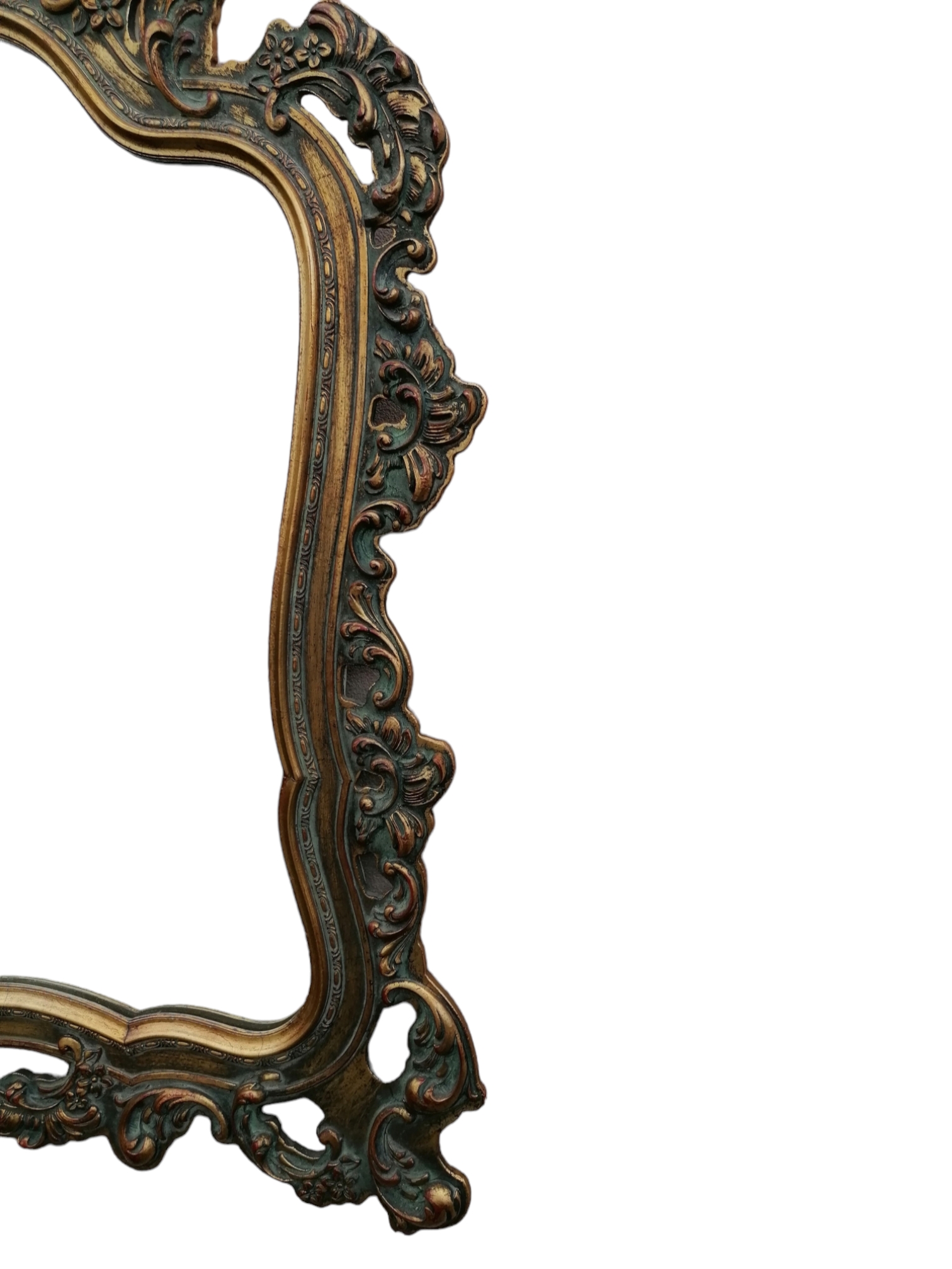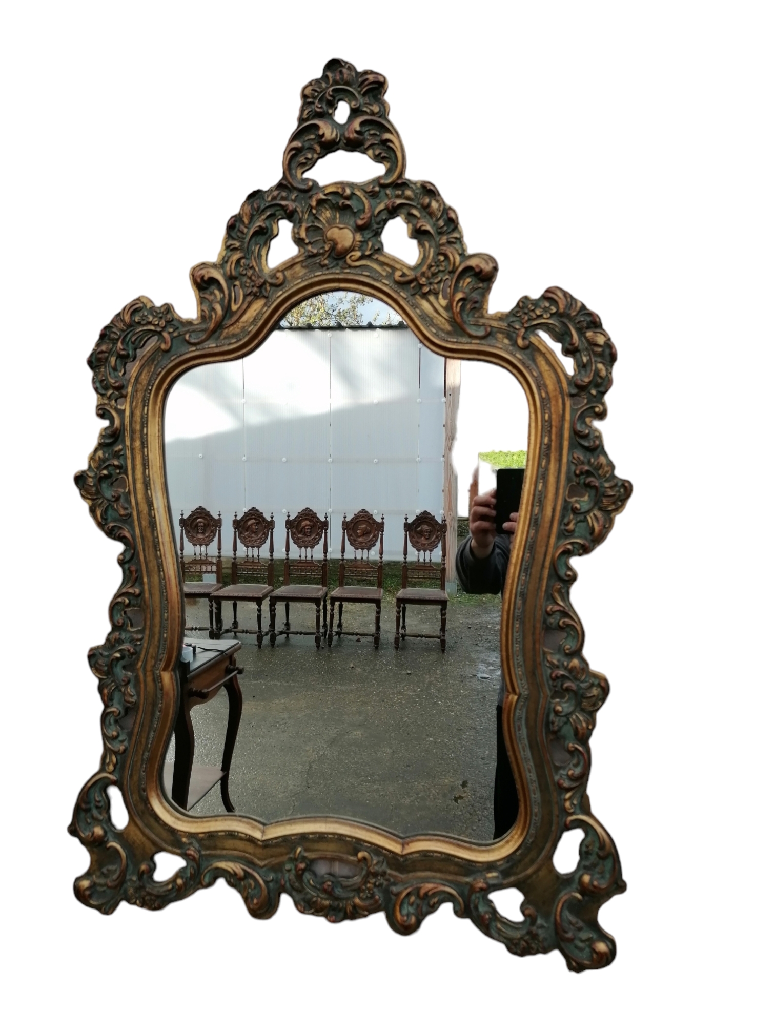 Eladó barokk tükör szép állapotban. Körben gazdagon díszített, áttört faragásokkal, kecses megjelenéssel.