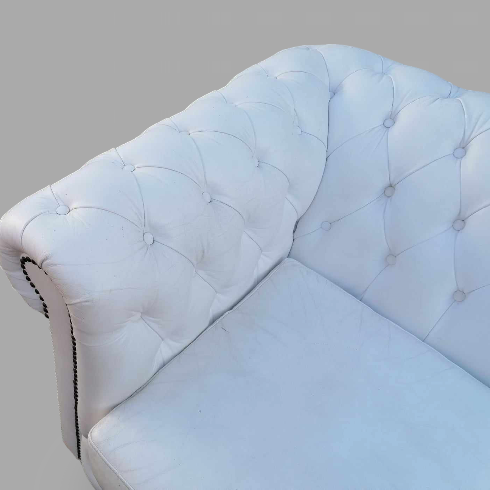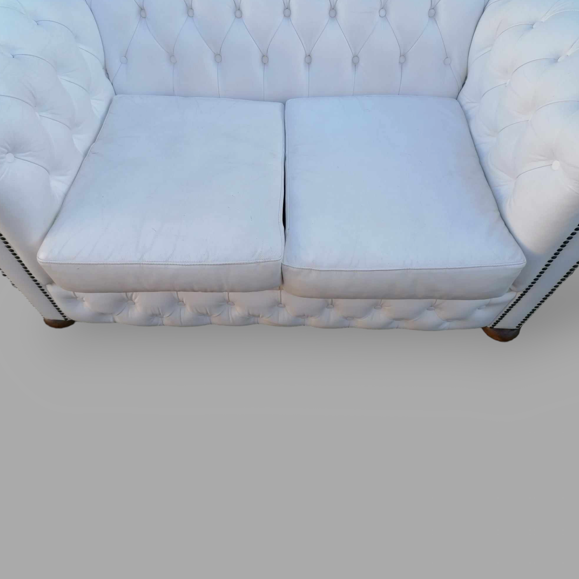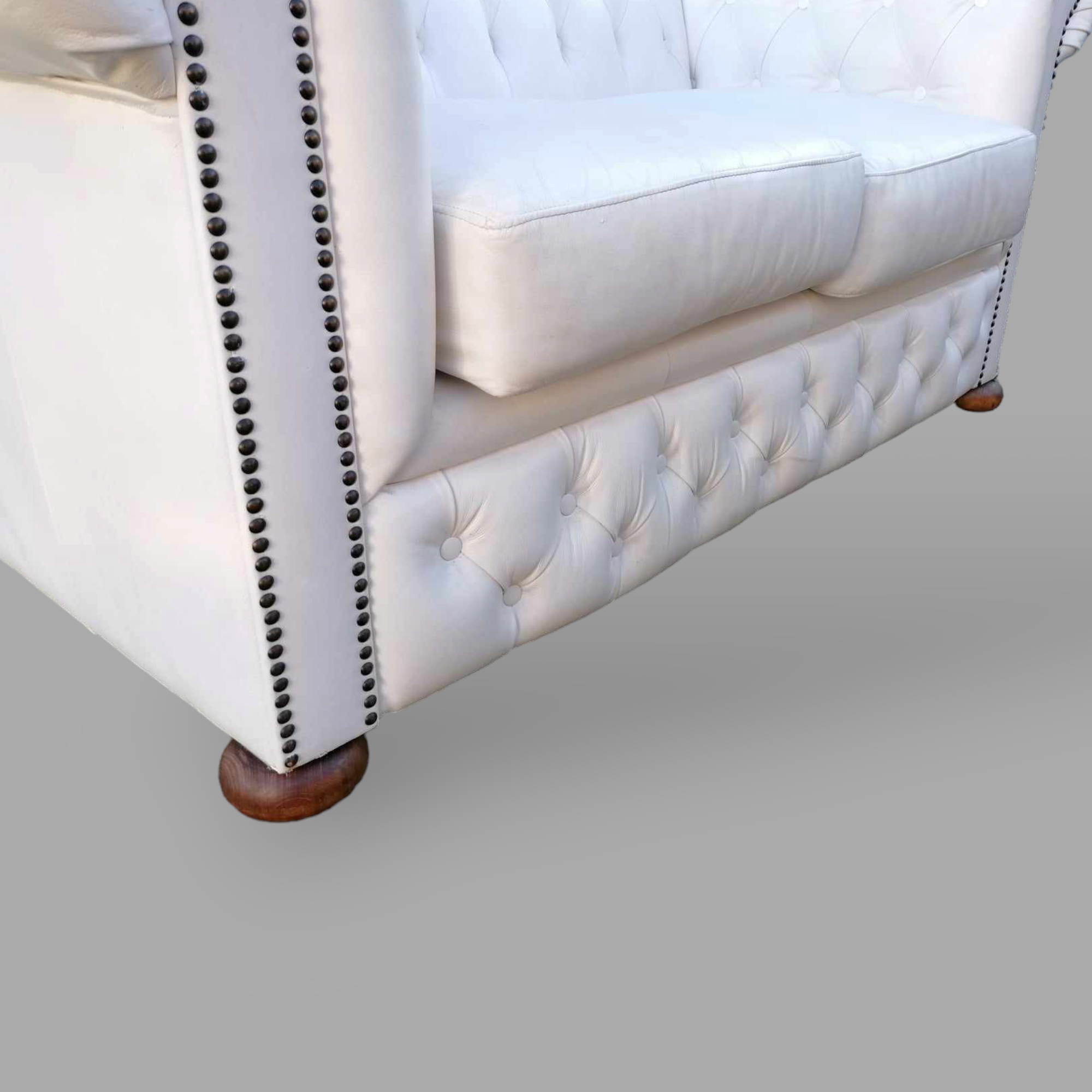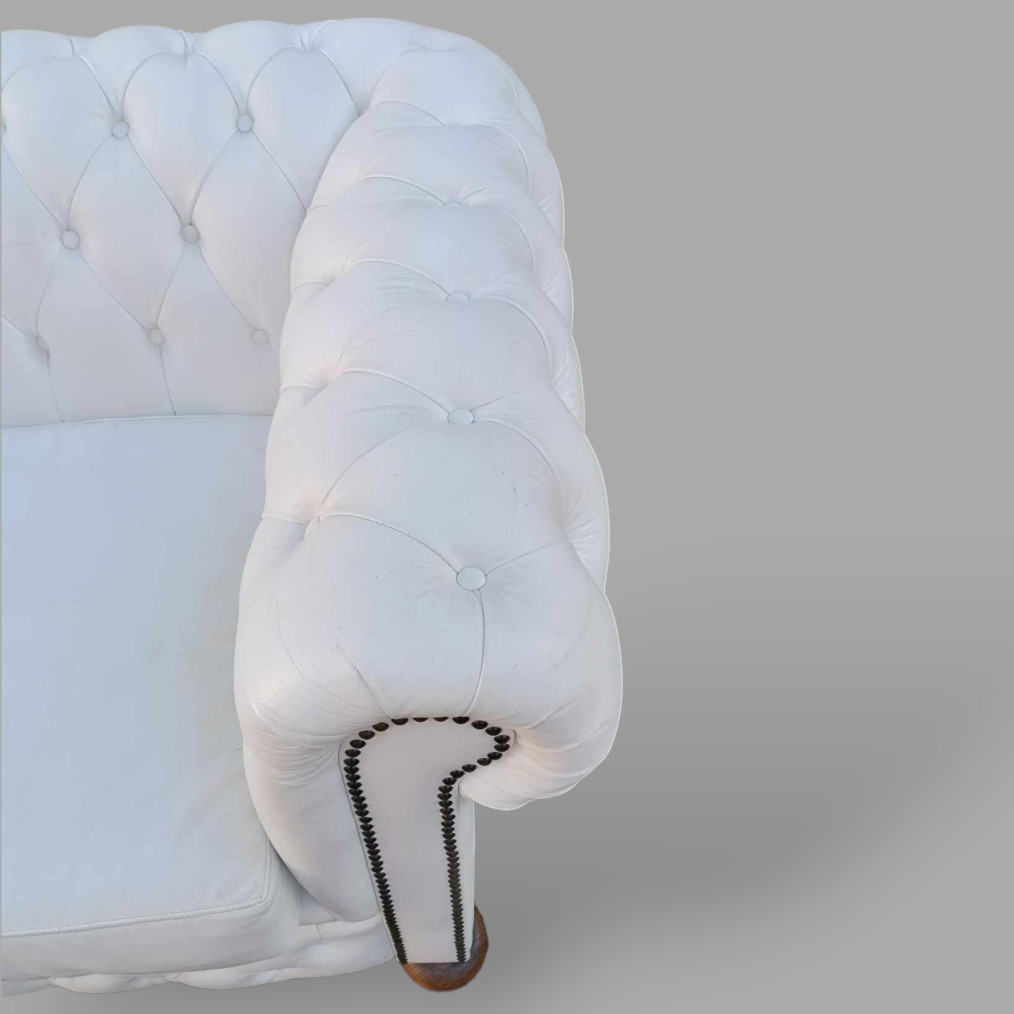Eladó gyönyörű állapotú hófehér eredeti chesterfield kanapé. Különleges megjelenésű, minden oldalról esztétikus darab. Karfák és a háttámla, valamint az ülőpárnák is nagyon szép állapotban vannak. Ideális lehet üzletbe vagy váróba.