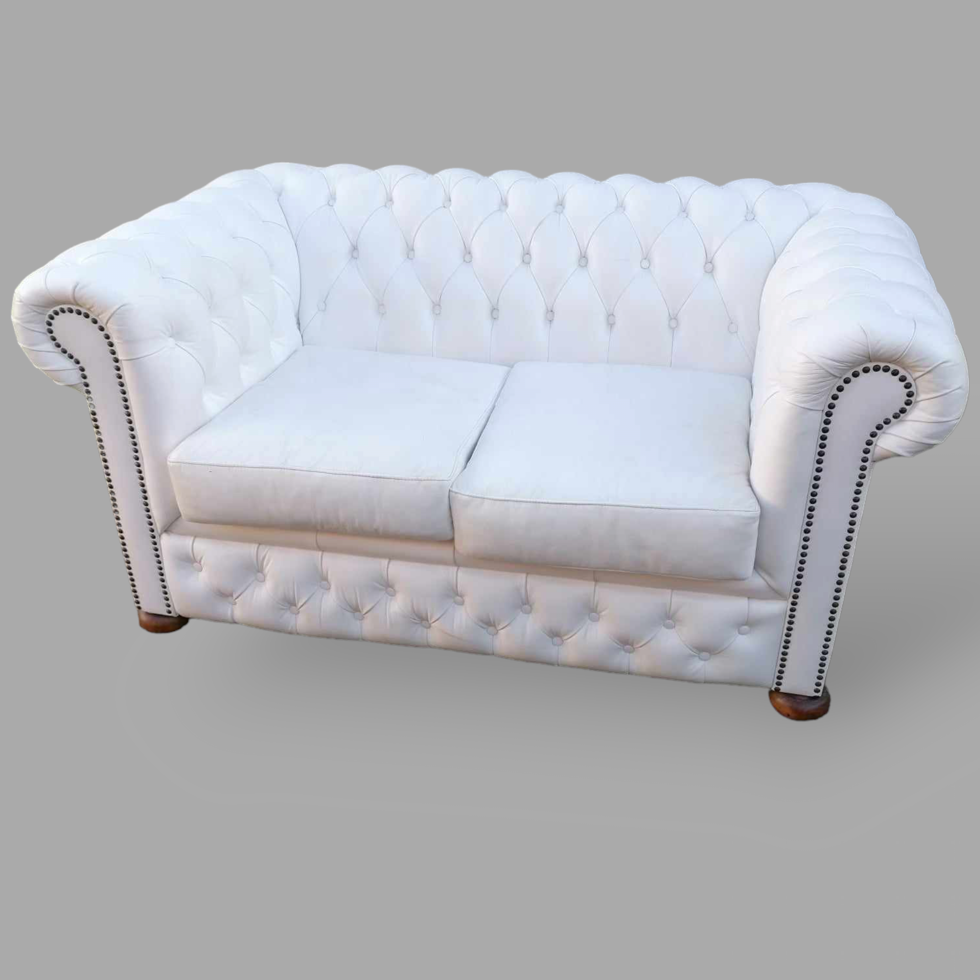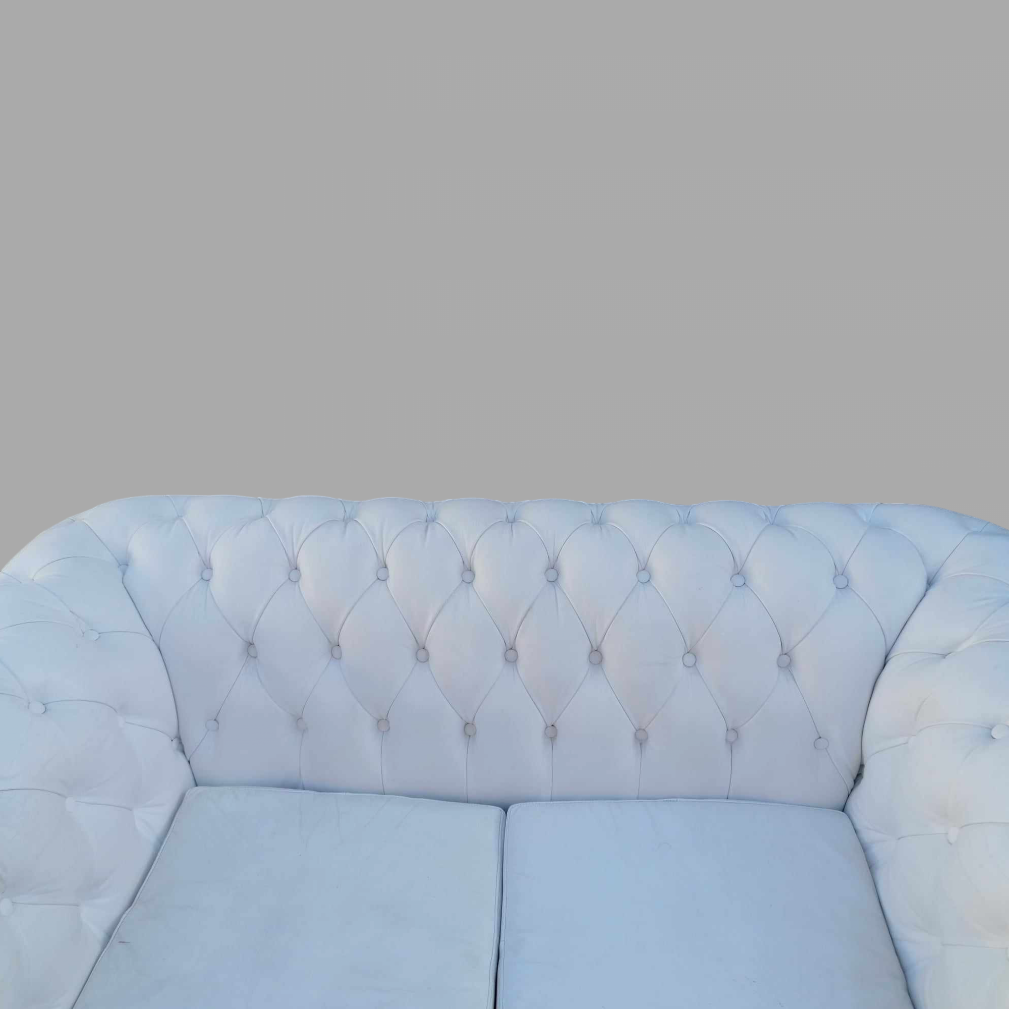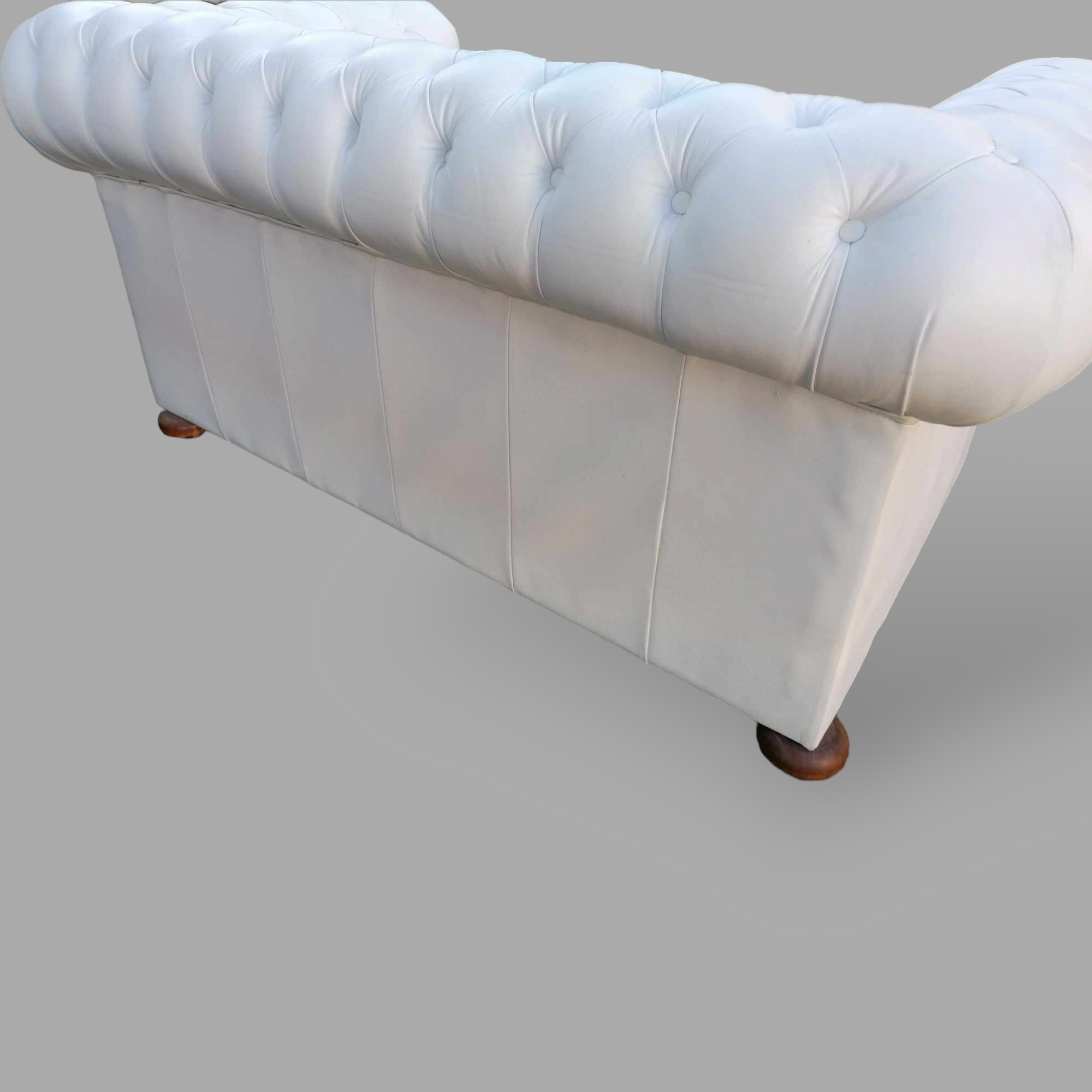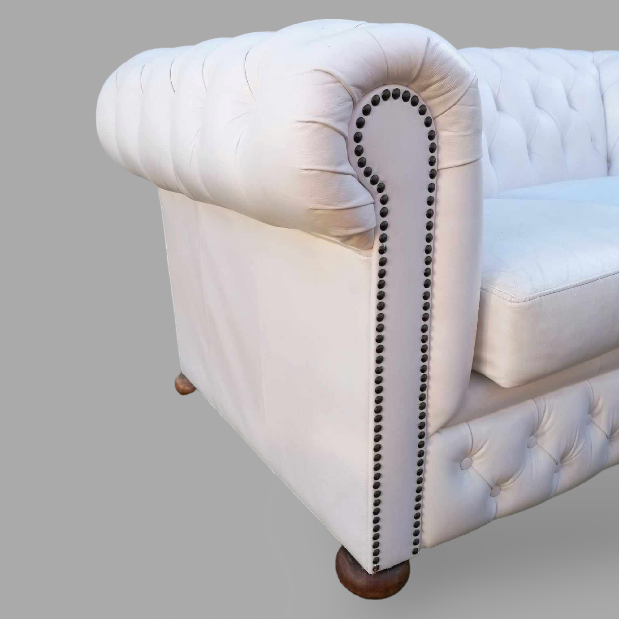 Eladó gyönyörű állapotú hófehér eredeti chesterfield kanapé. Különleges megjelenésű, minden oldalról esztétikus darab. Karfák és a háttámla, valamint az ülőpárnák is nagyon szép állapotban vannak. Ideális lehet üzletbe vagy váróba.