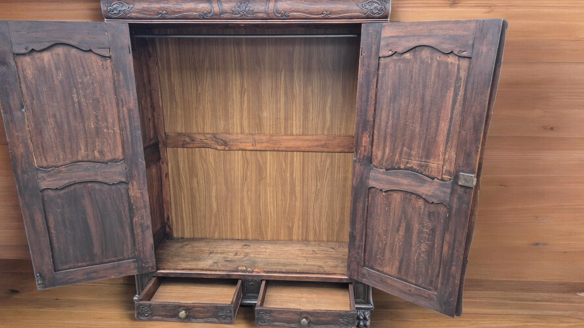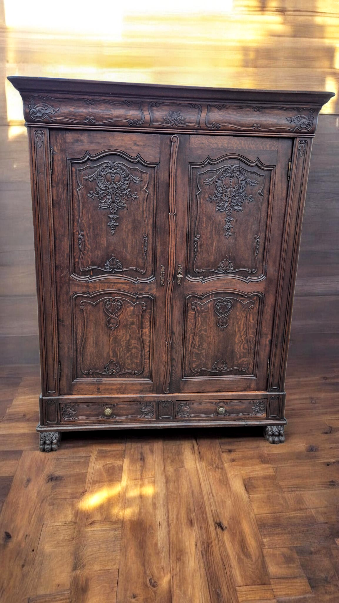 Eladó egy impozáns megjelenésű, antik francia stílusú (XV. Lajos korabeli jegyeket viselő) kétajtós ruhásszekrény,gardrób.