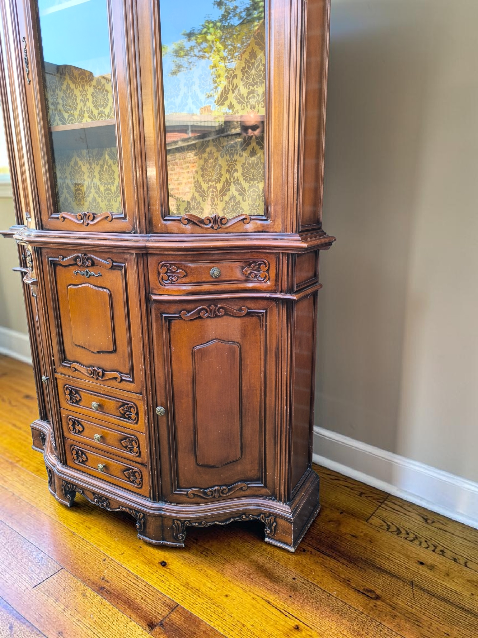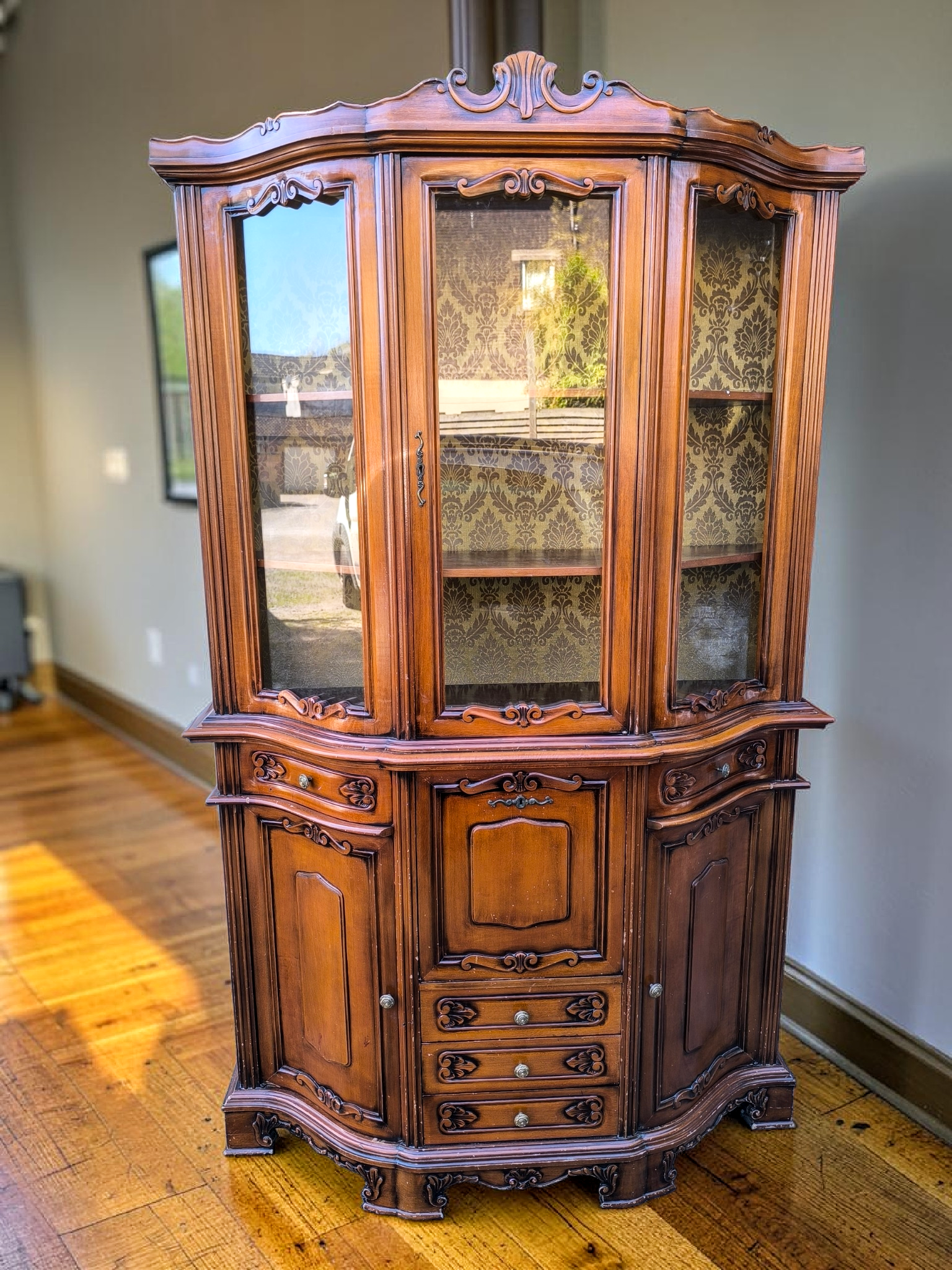 Eladásra kínáljuk ezt az elegáns megjelenésű, részletgazdagon faragott bútordarabot, amely bármely nappali vagy étkező központi dísze lehet.