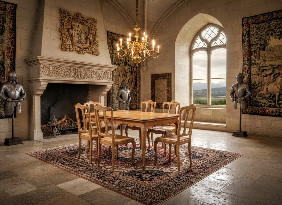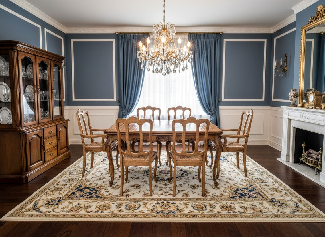 Ez az étkezőgarnitúra egy neobarokk stílusú darab, amely az 1920-as és 1950-es évek közötti időszakban készült, francia (Louis XV/XVI) hatásokkal.