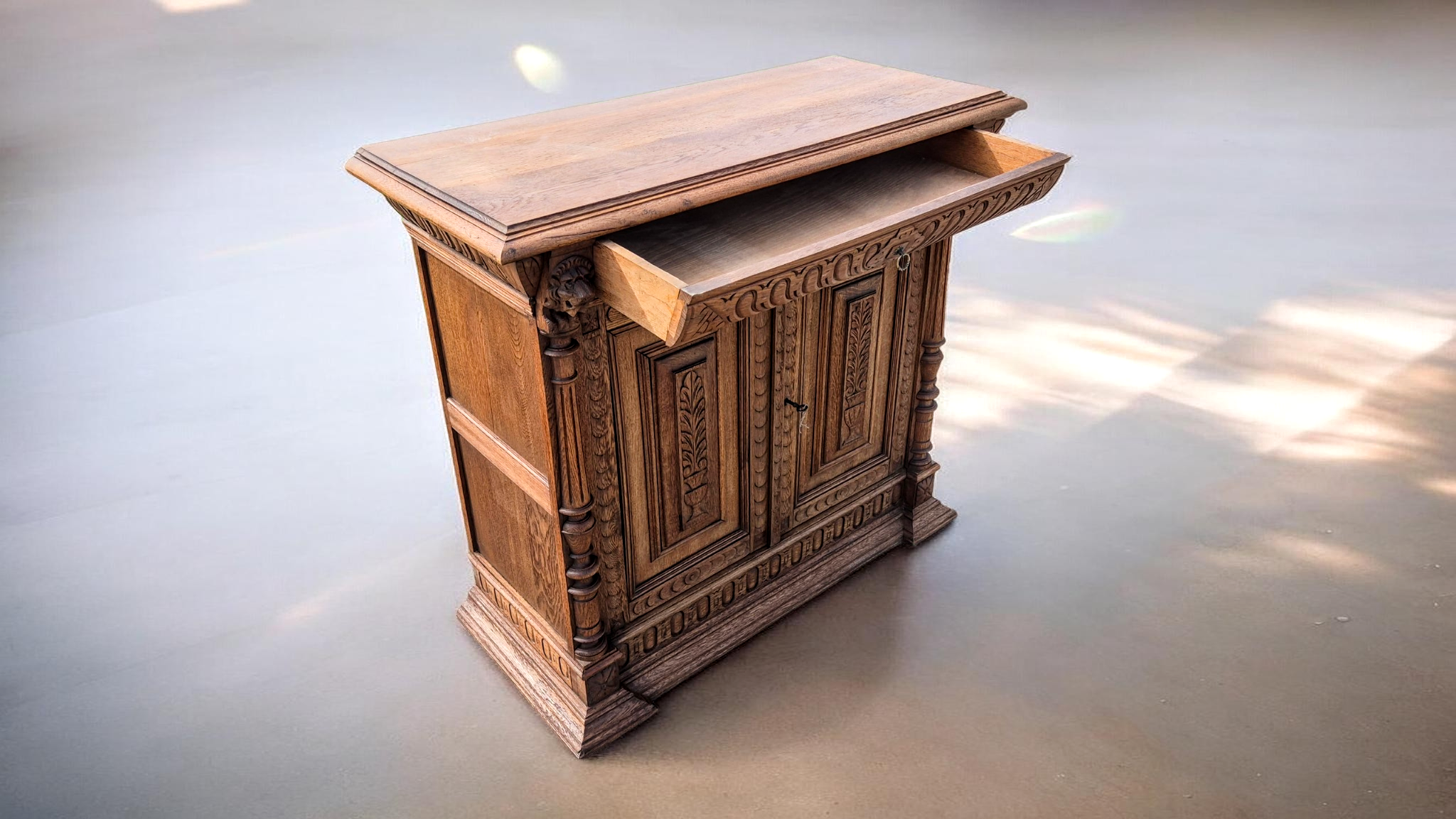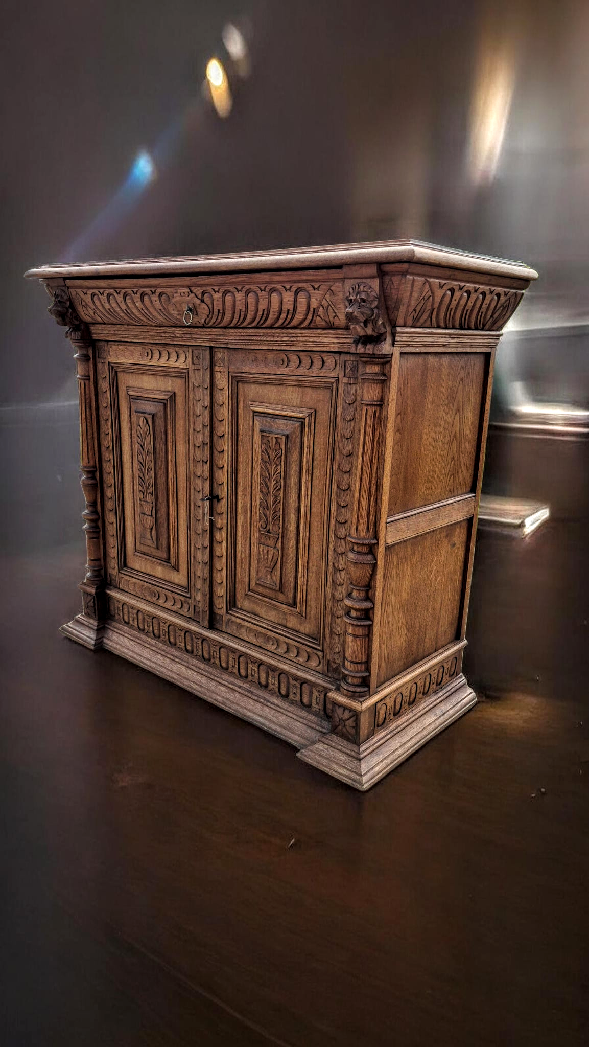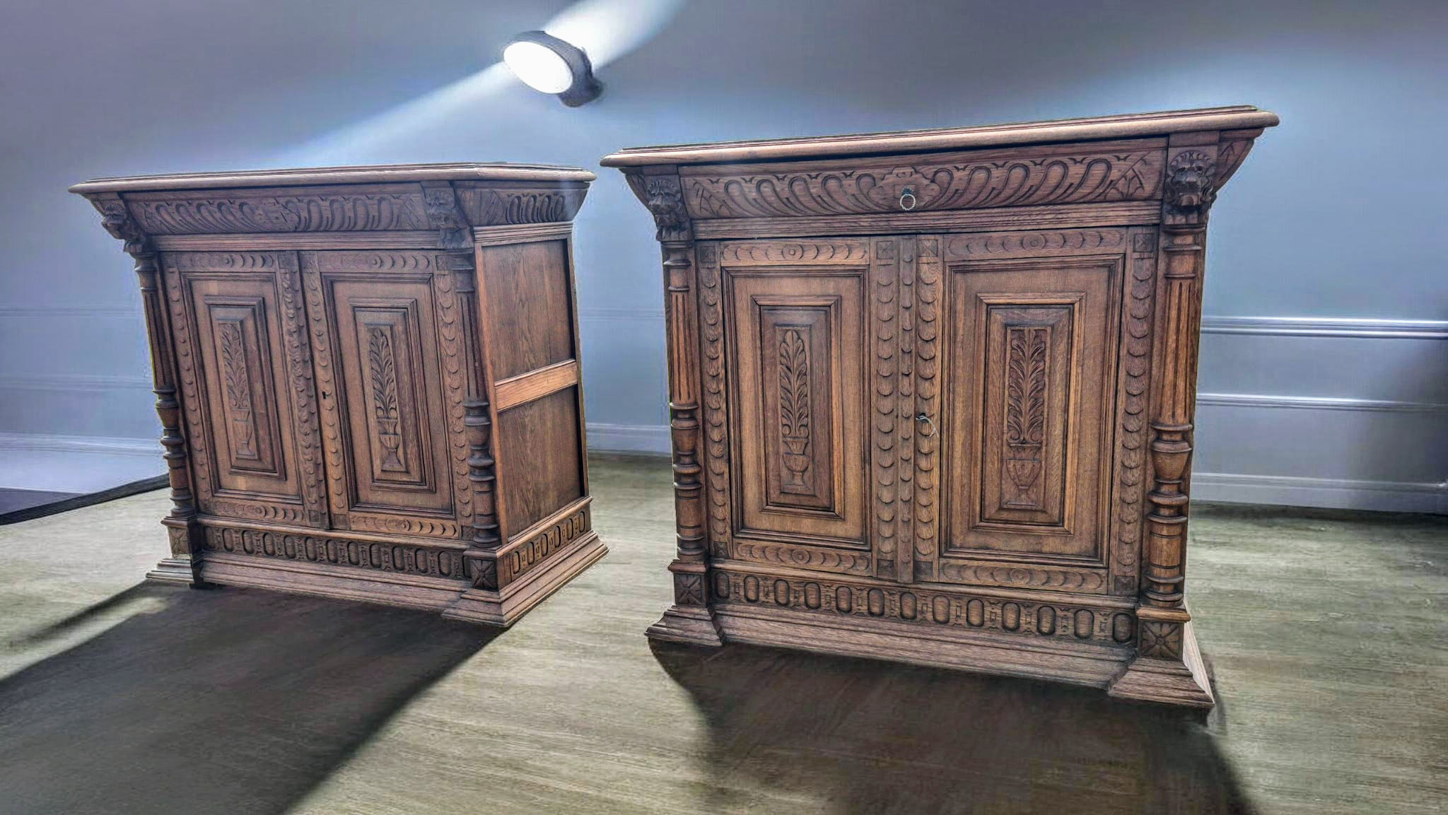 Eladó a képeken látható gyönyörű ,felújított állapotú, neoreneszánsz stílusú antik kiskomód (vagy tálalószekrény) pár.