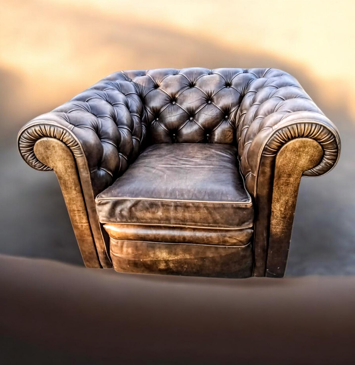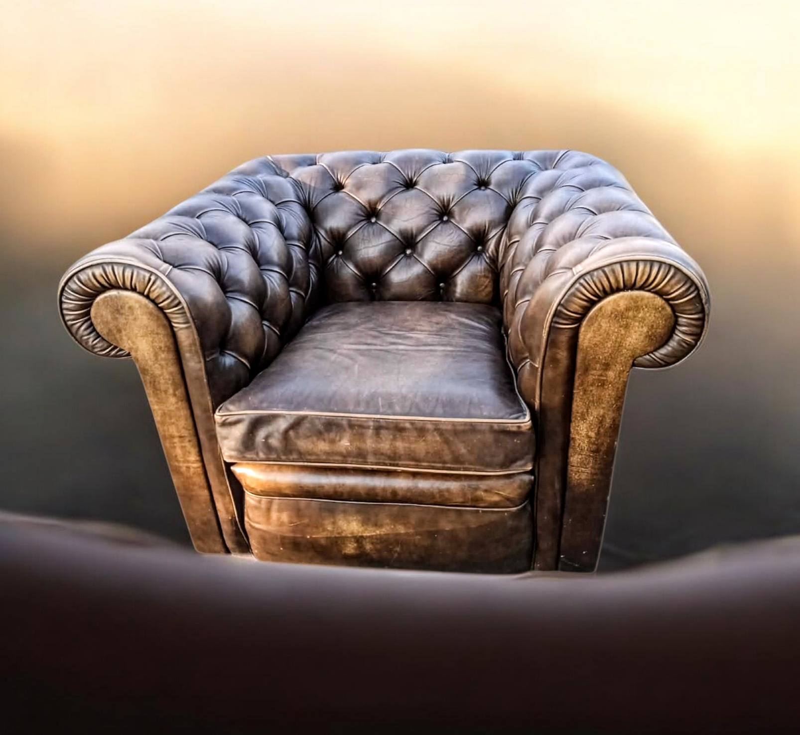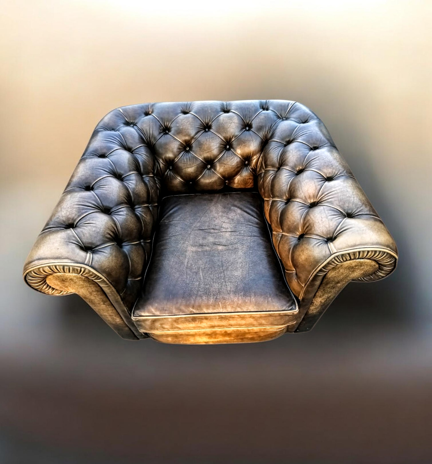 Eladásra kínálunk egy eredeti, Chesterfield stílusú valódi bőr fotelt.