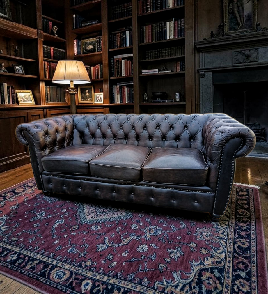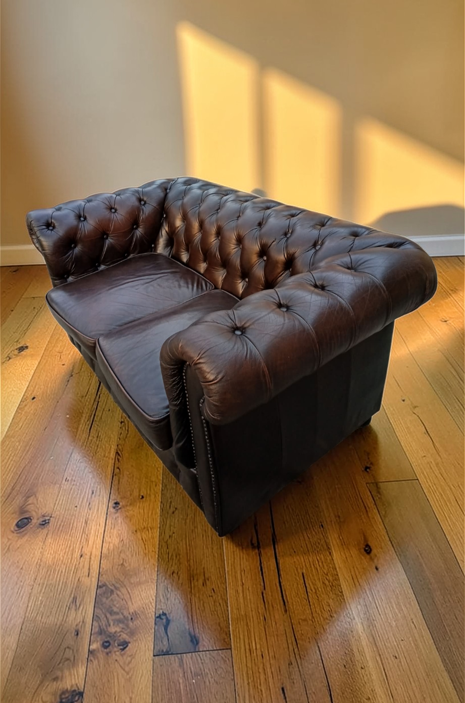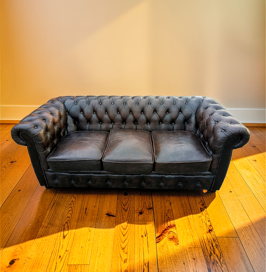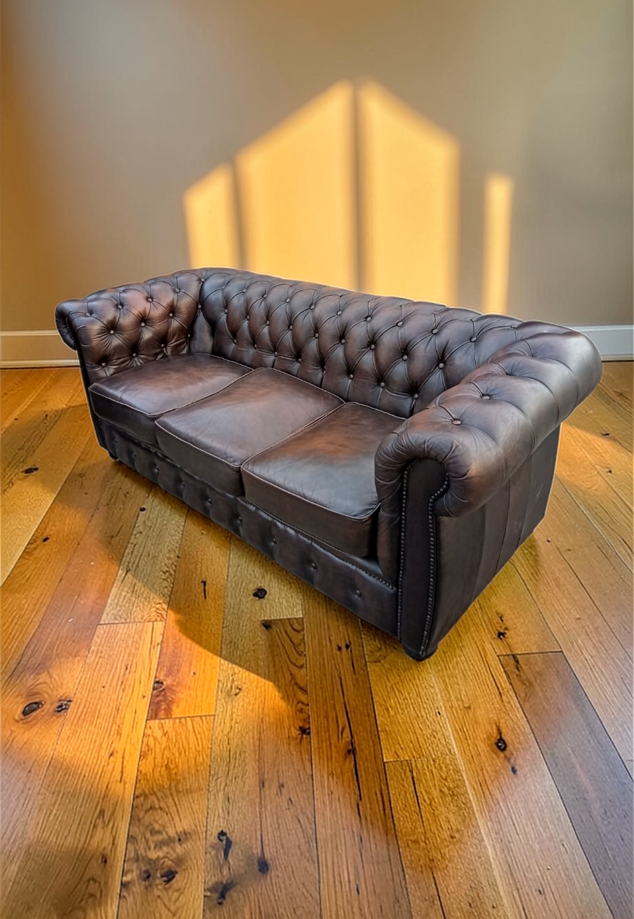 Eladásra kínálunk egy eredeti, Chesterfield stílusú valódi bőr ülőgarnitúrát.