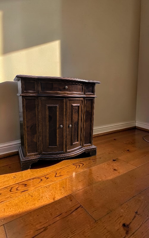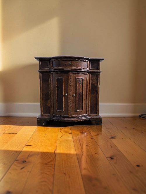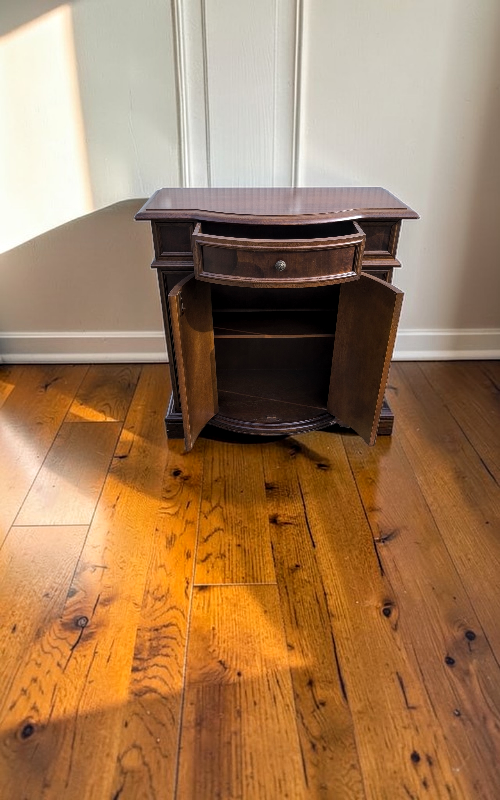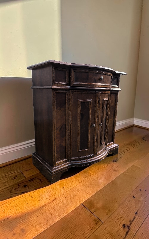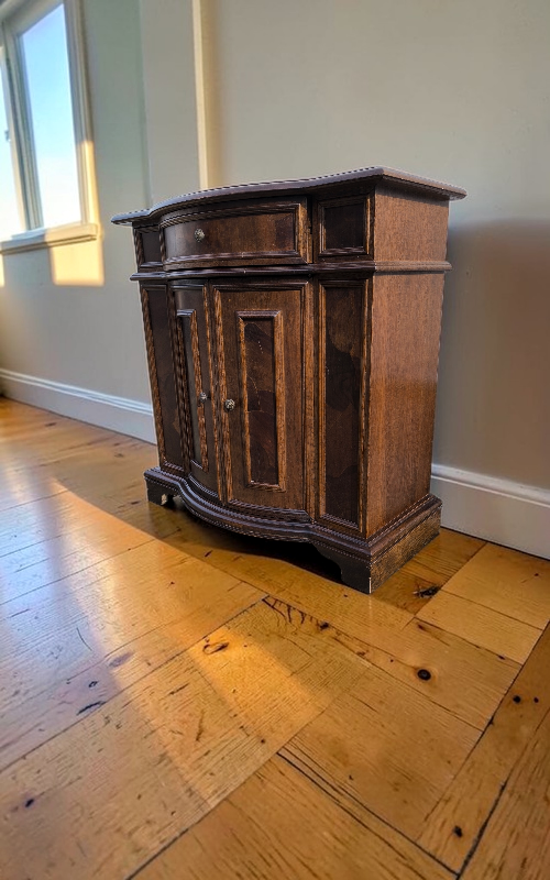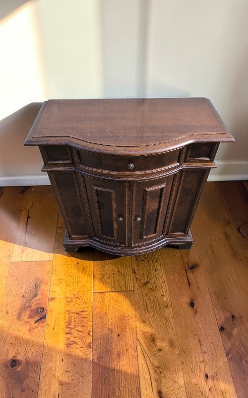Eladó egy gyökérfurnéros kis komód szép állapotban.