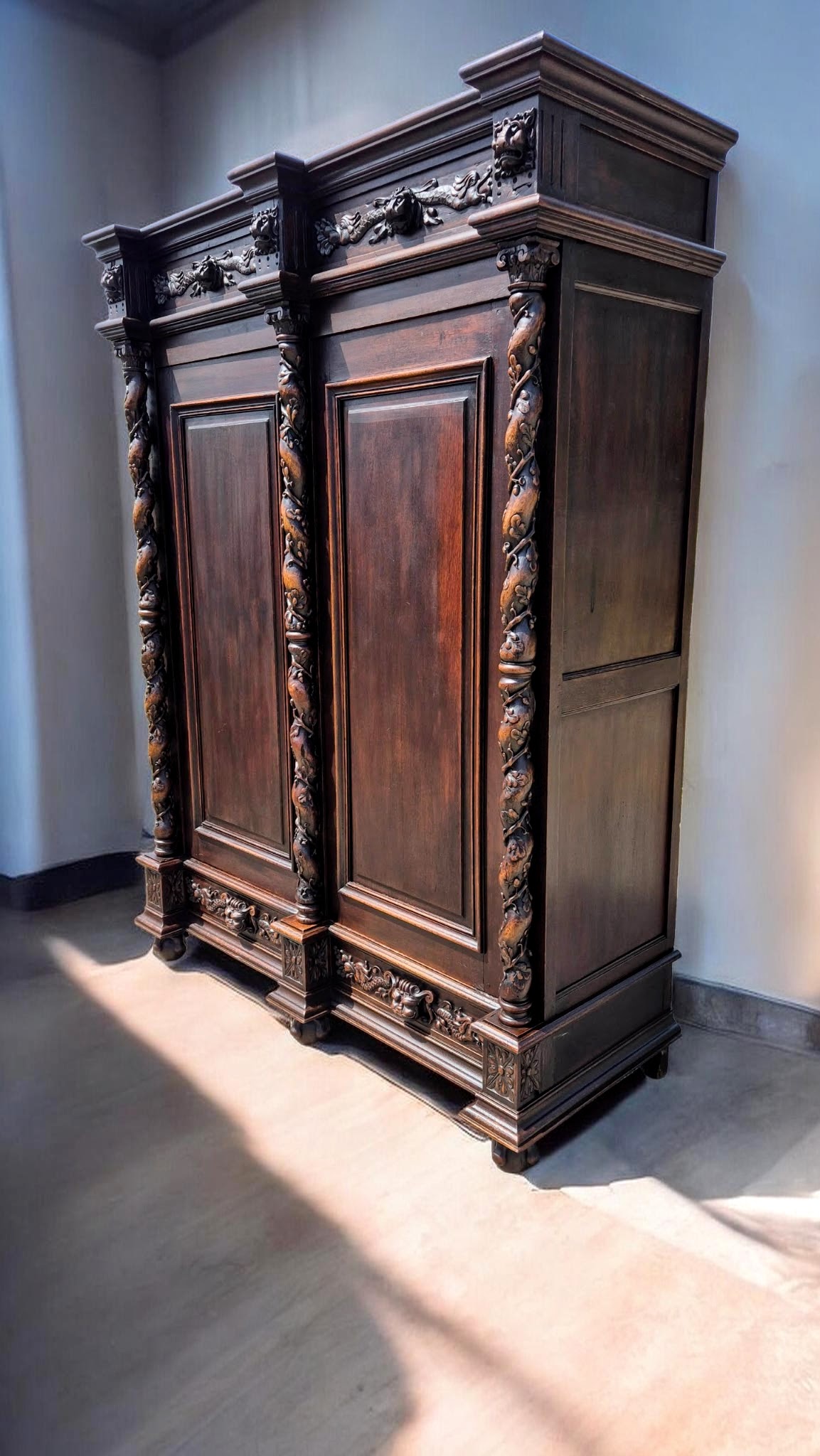 Ez a szekrény nem csupán egy bútordarab, hanem a szoba ékköve, amely tökéletesen illik klasszikus polgári lakásokba, kastélyokba vagy akár egy modern enteriőr hangsúlyos elemeként is.