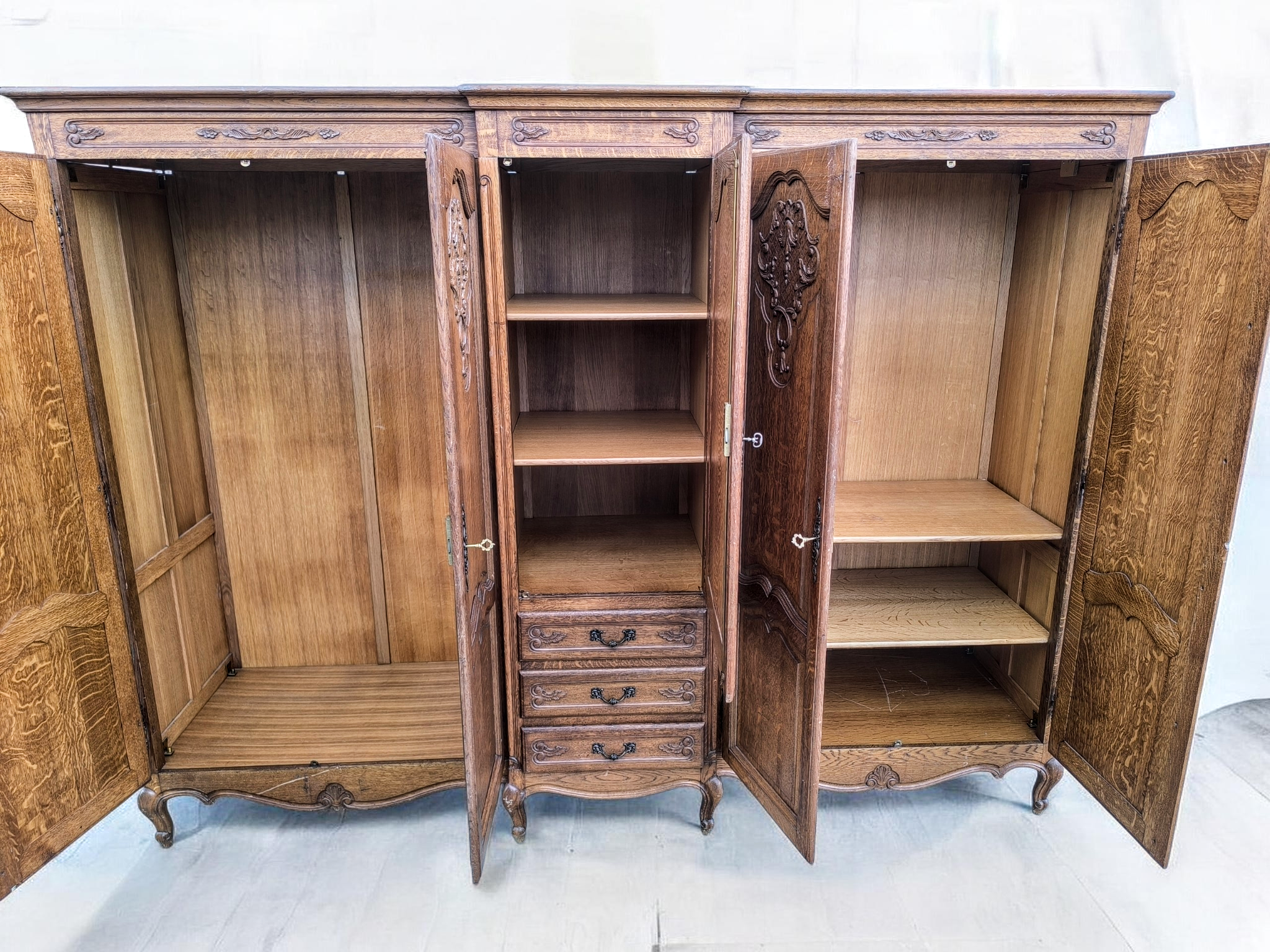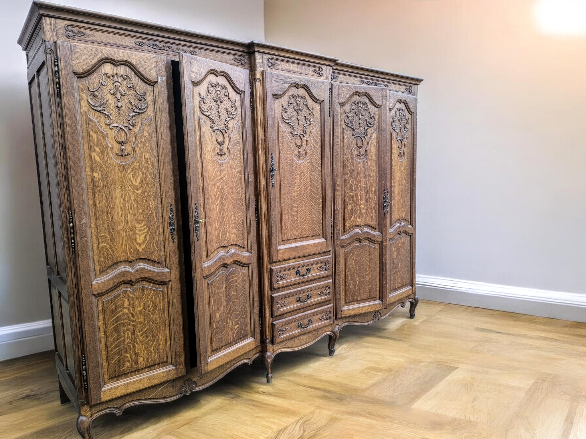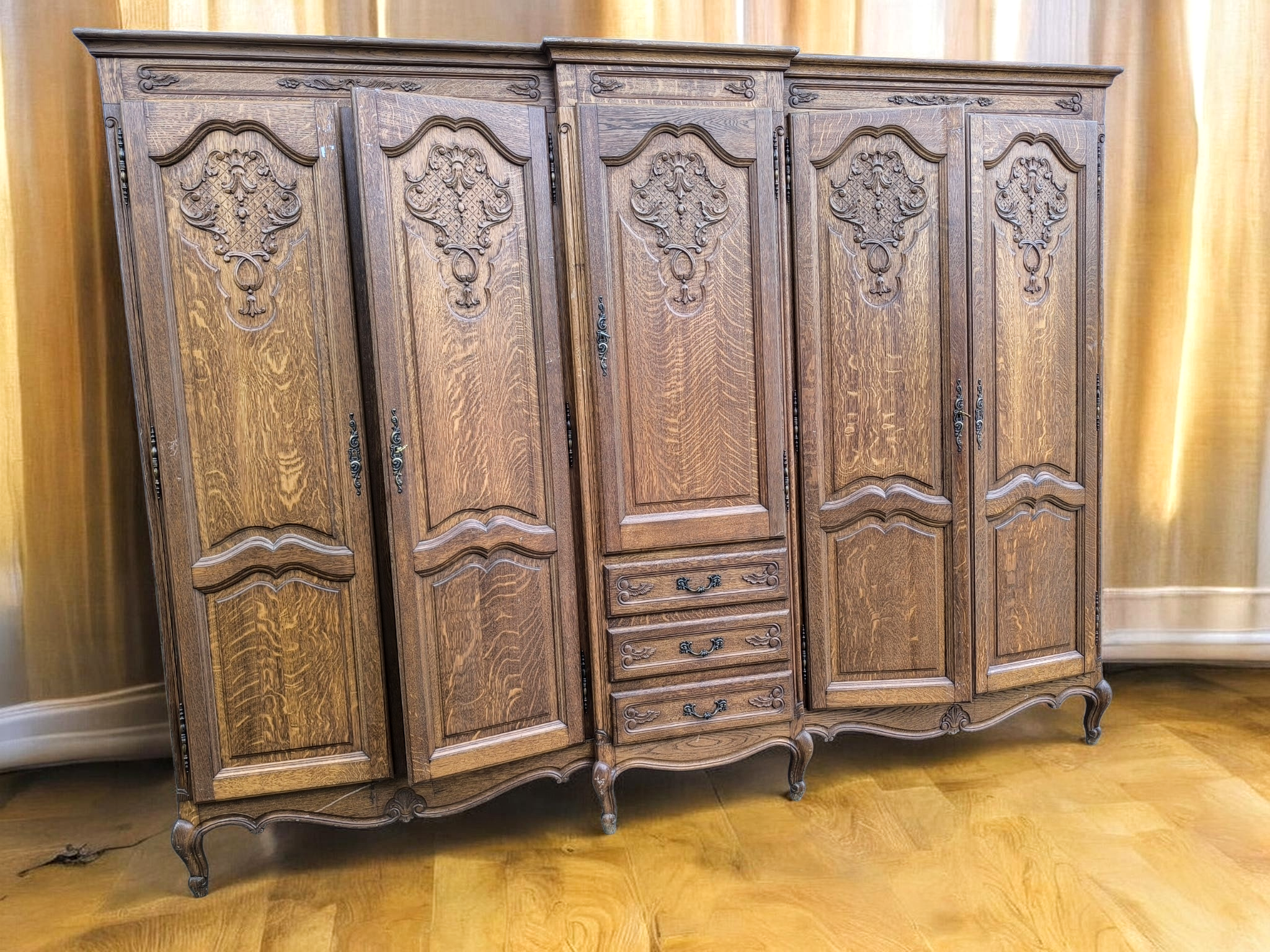 Eladó a képen látható, szép állapotú, gazdagon faragott neobarokk stílusú ruhásszekrény. Masszív, tartós darab, amely nemcsak praktikus tároló, de a hálószoba vagy nappali ékköve is lehet.