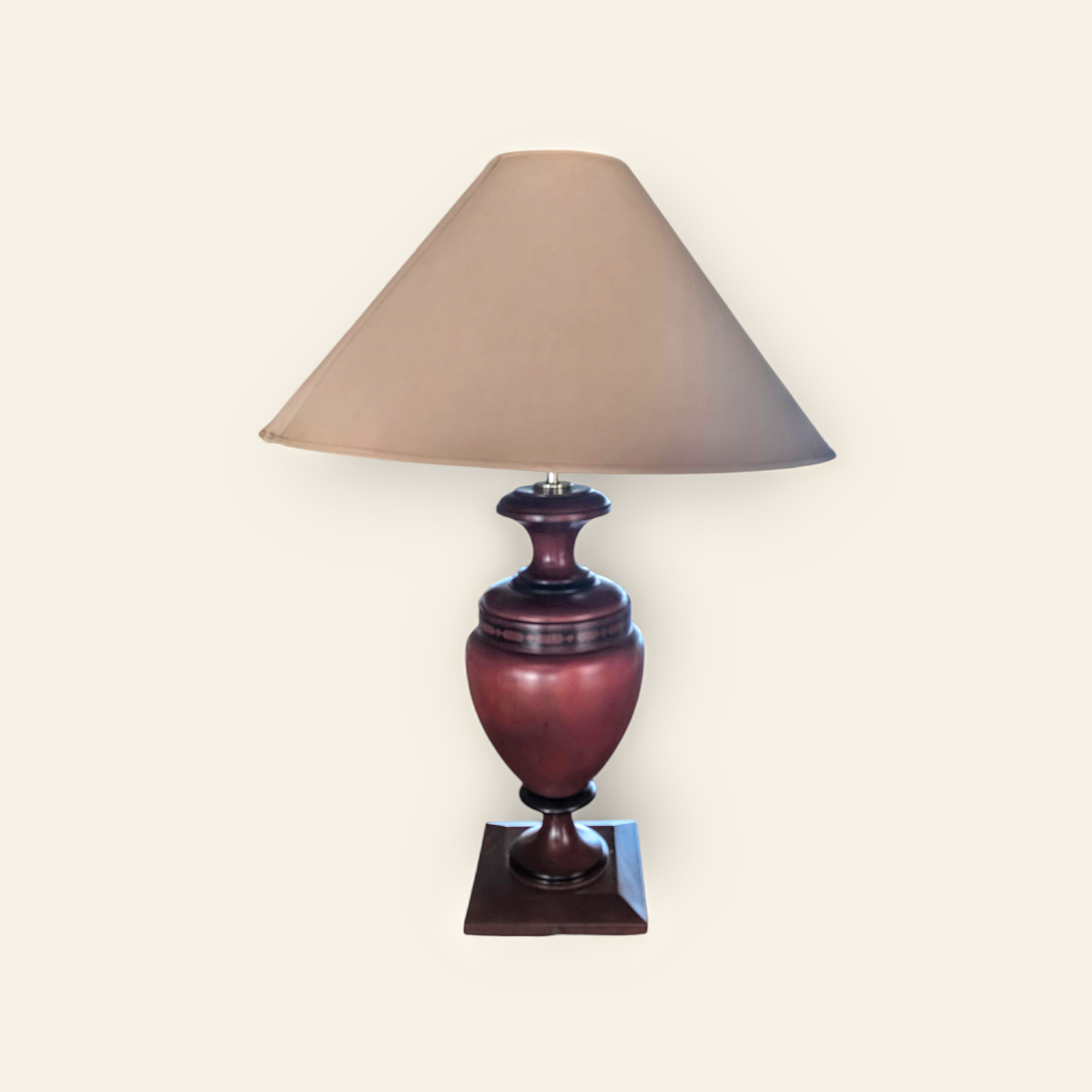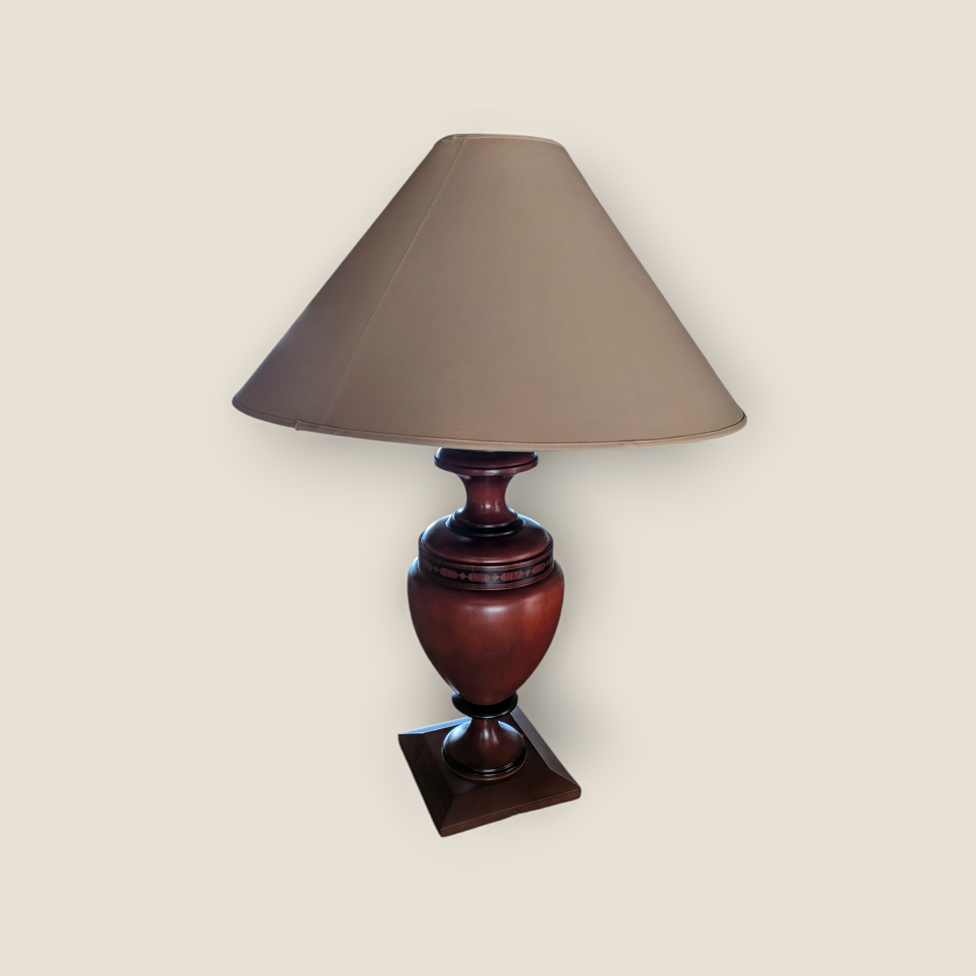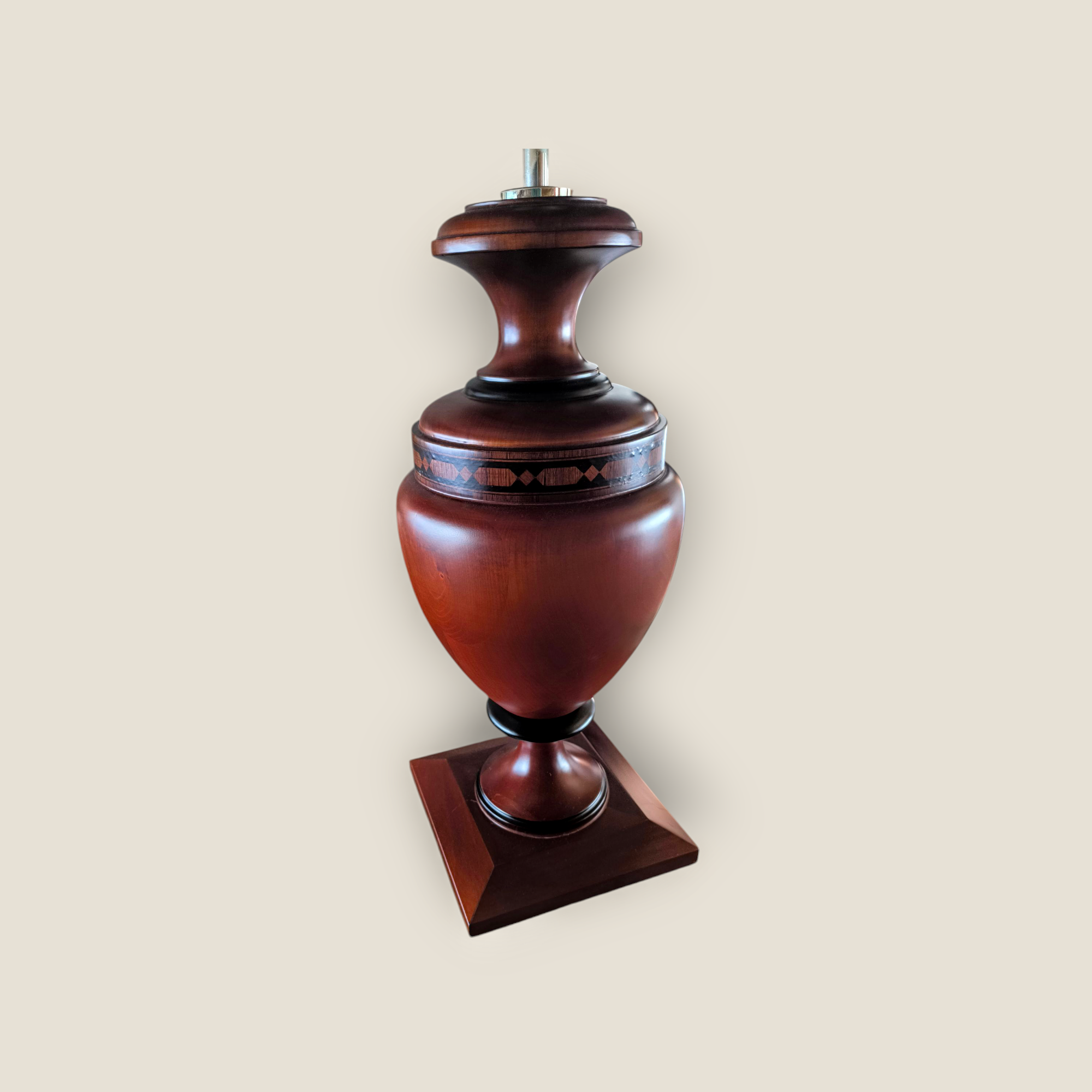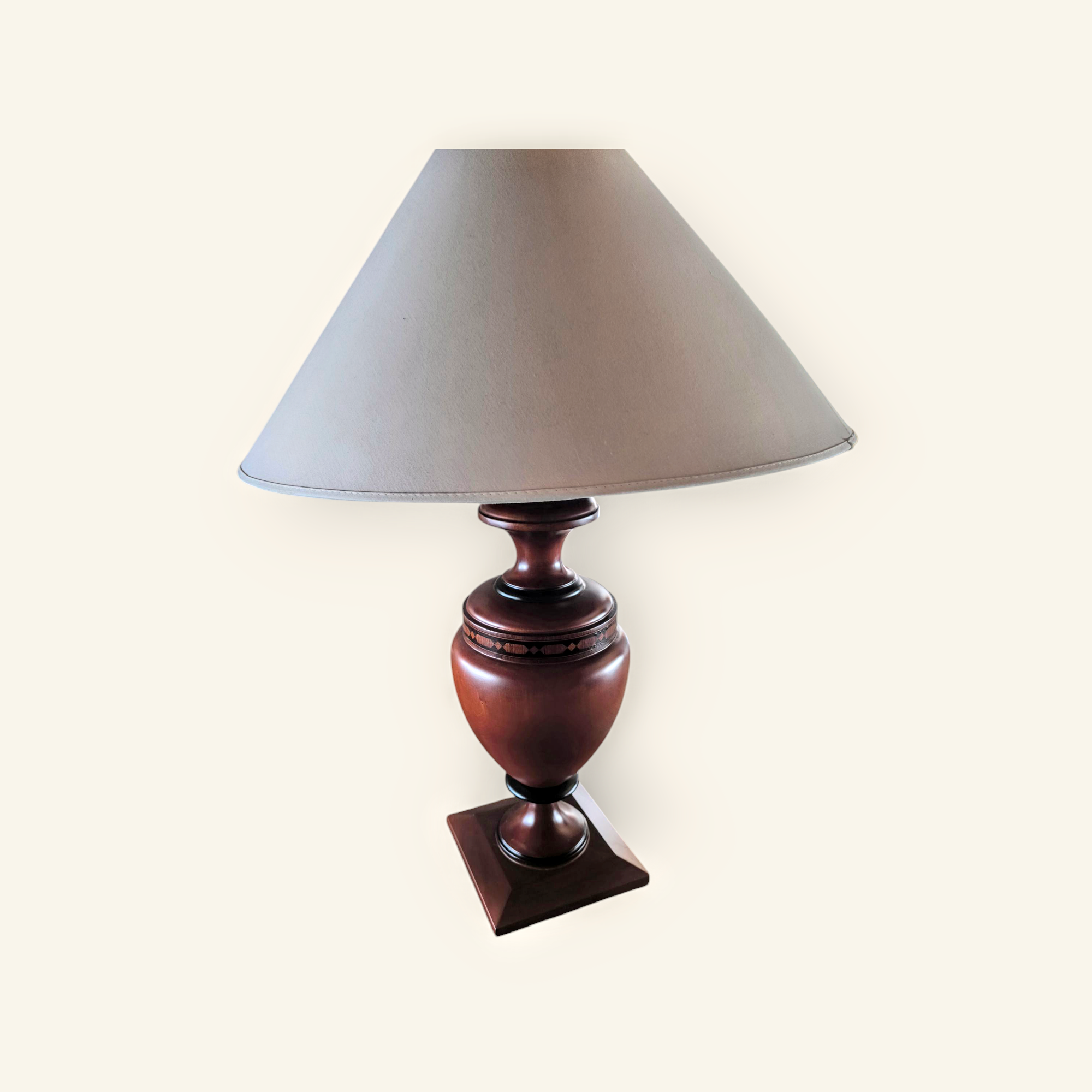 Eladó egy fából készült ,intarzia berakásos nagy méretű asztali lámpa.