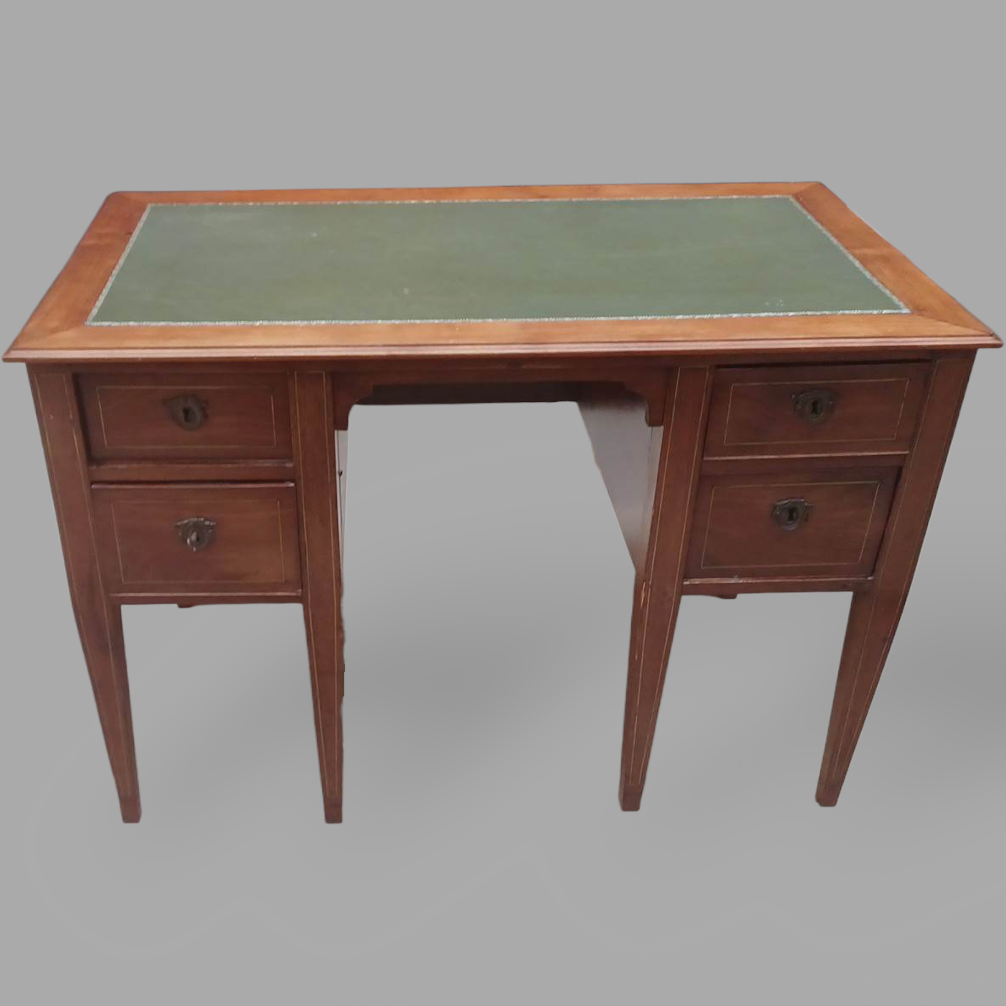 Eladó egy angol stílusú íróasztal .Letisztult vonalvezetés,bőr betéttel a tetején. Egyszerű de mégis különleges darab, két oldalt fiókokkal, élek mentén réz betétekkel.