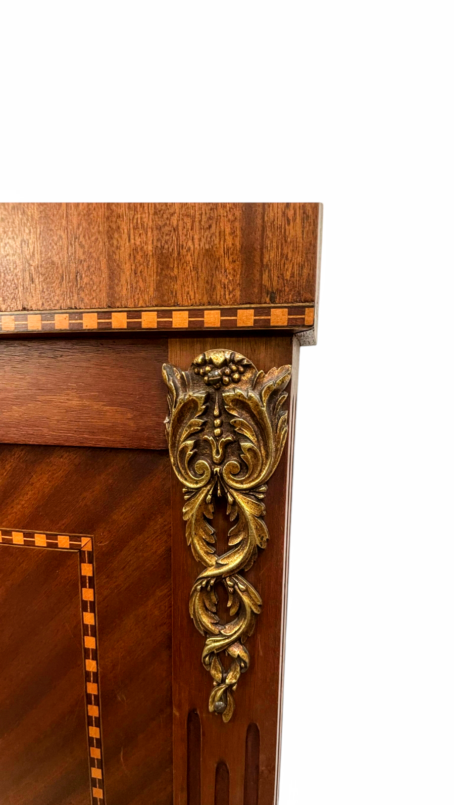 Intarzia berakással és réz applikációkkal.