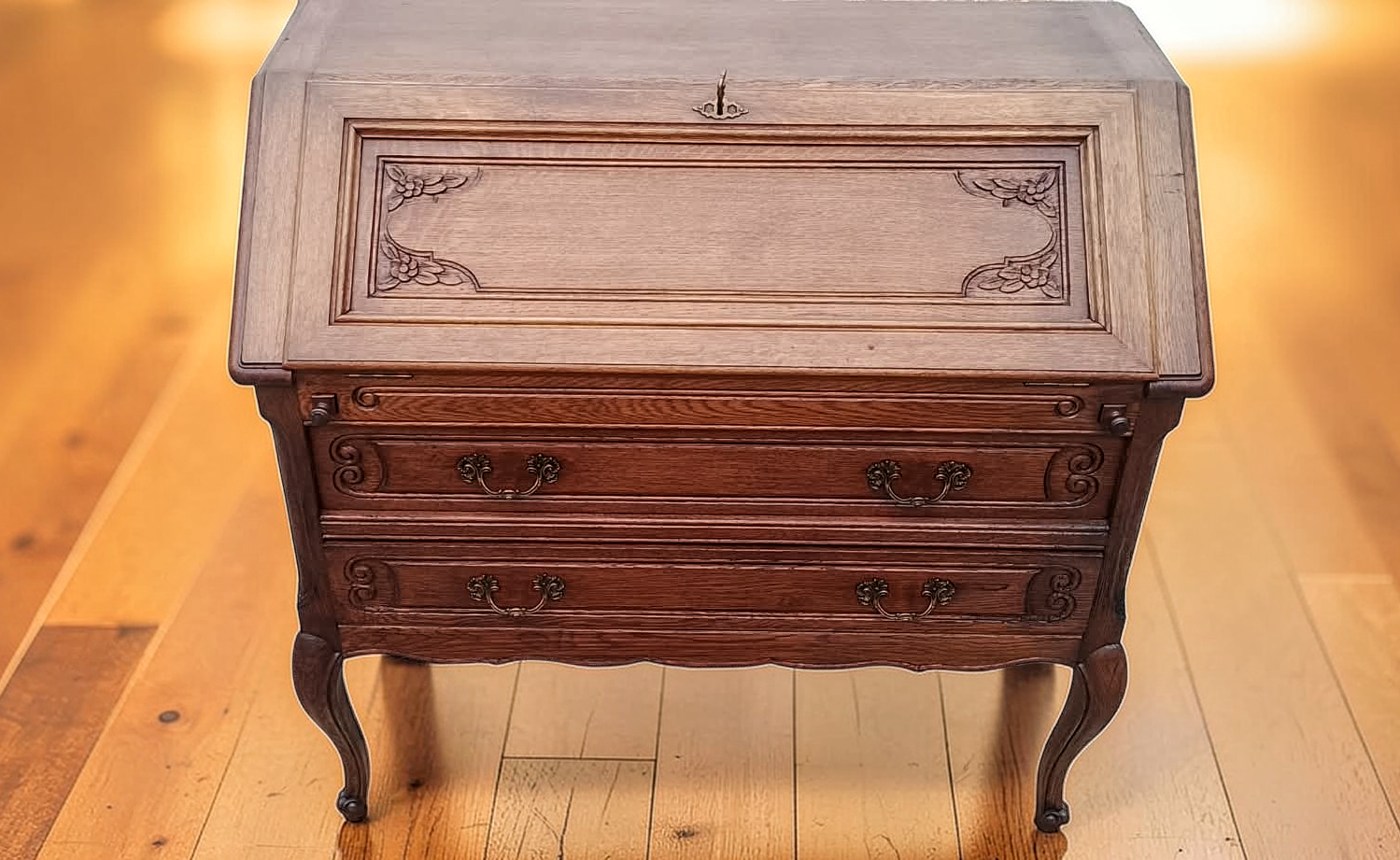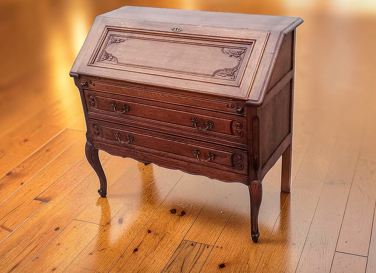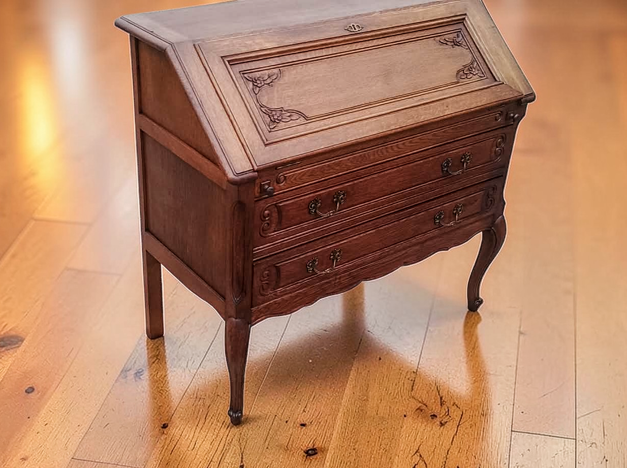 Eladó egy neobarokk stílusú 2 fiókos szekreter.Kecses ívelt lábakkal, alul 2 fiókkal.