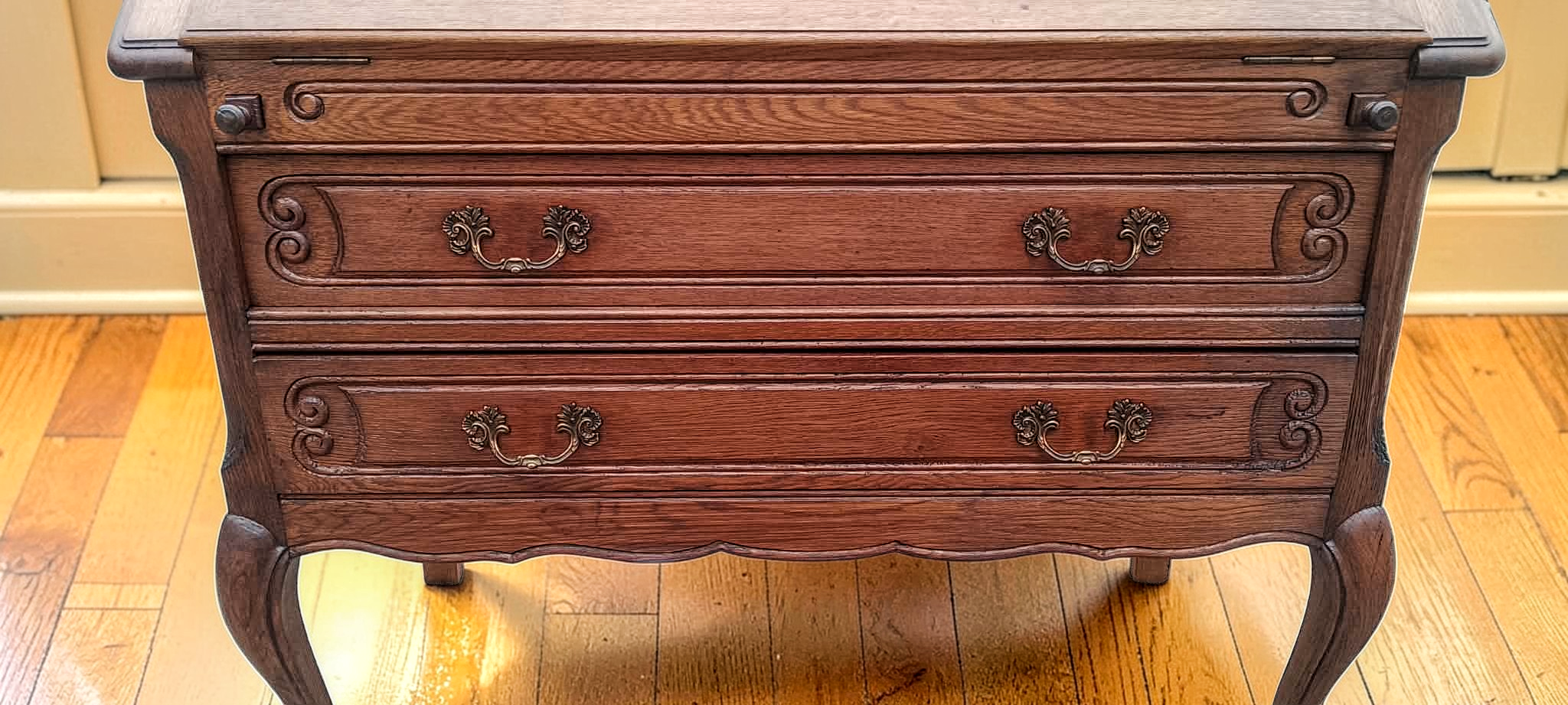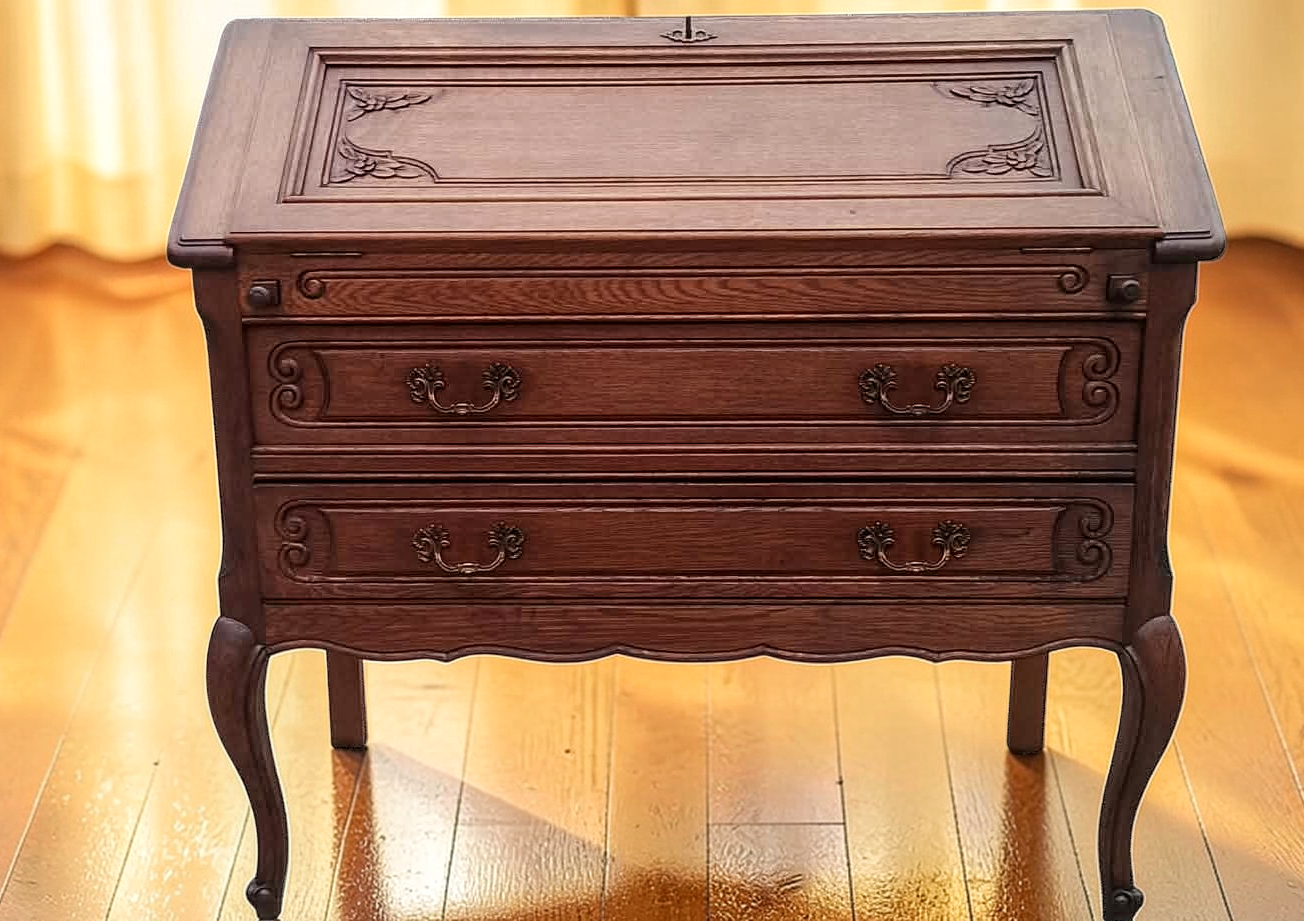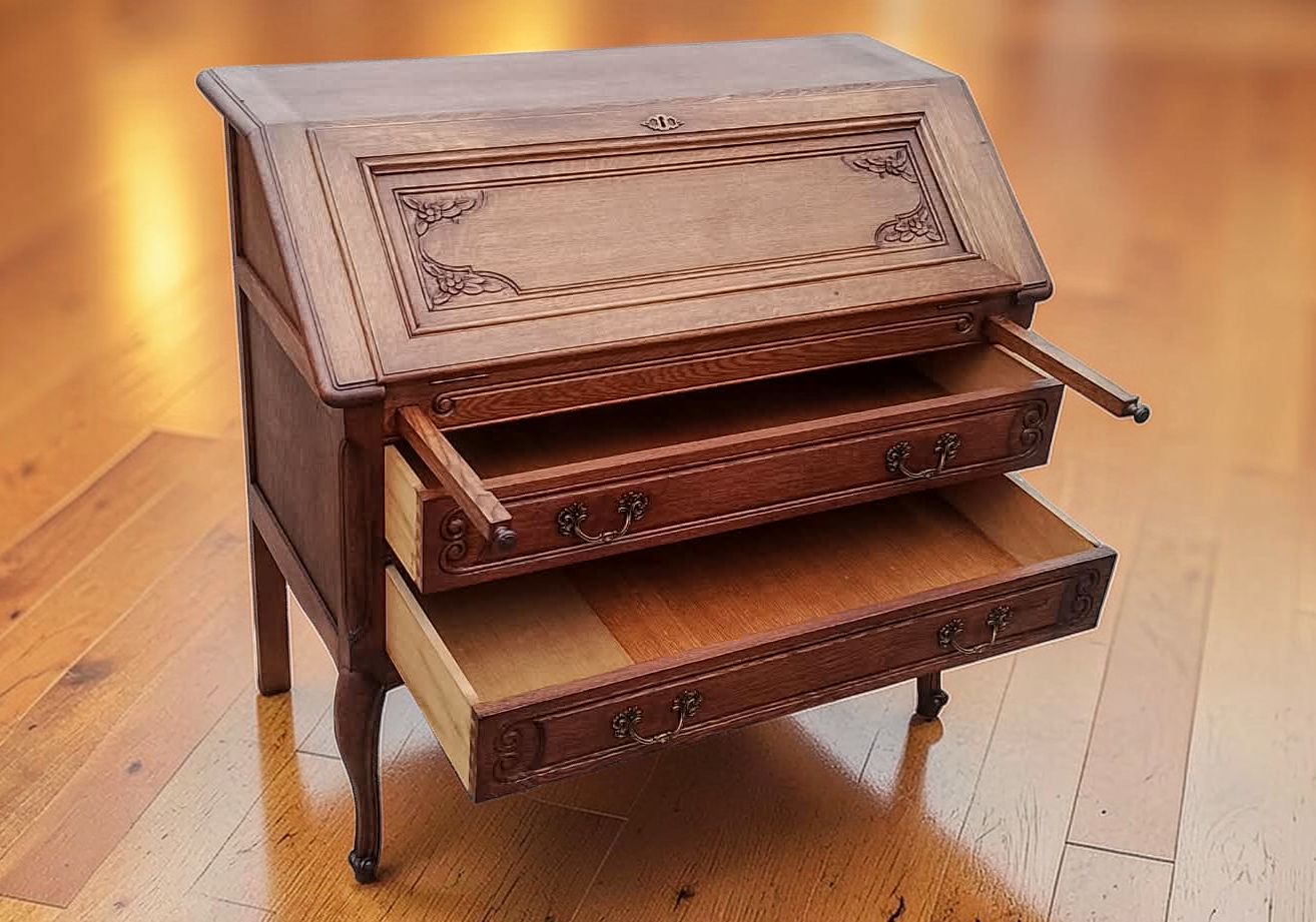 Eladó egy neobarokk stílusú 2 fiókos szekreter.Kecses ívelt lábakkal, alul 2 fiókkal.