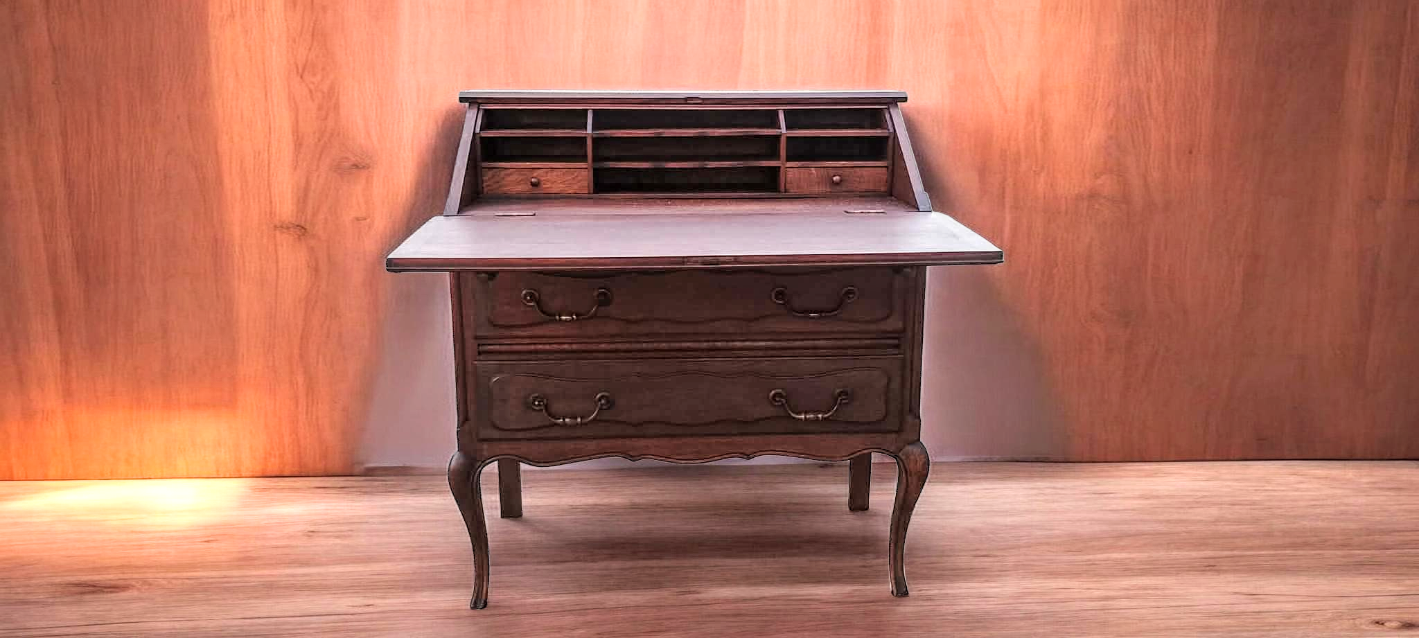 Eladó egy neobarokk stílusú 2 fiókos szekreter.Kecses ívelt lábakkal, alul 2 fiókkal.