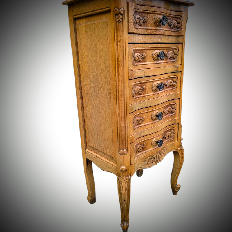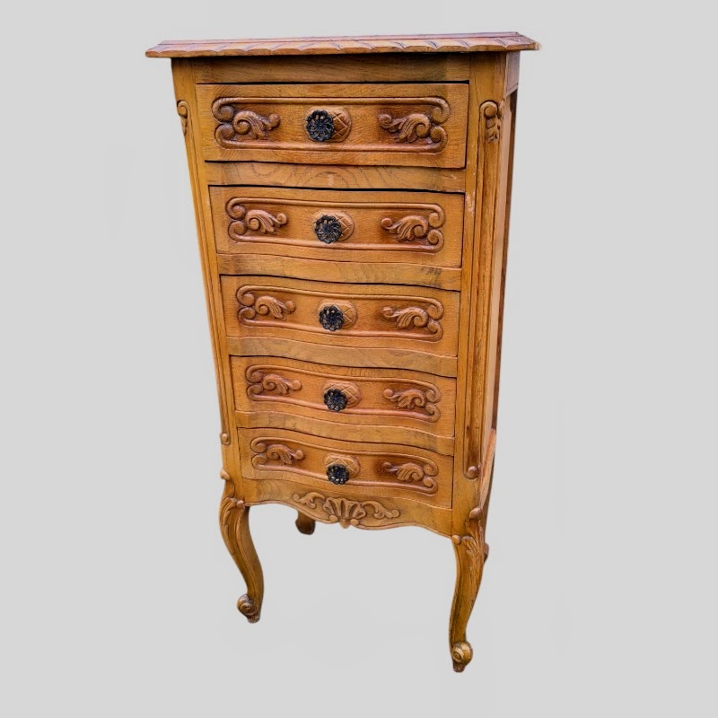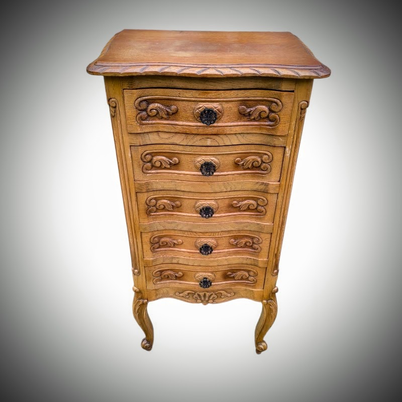 Eladásra kínálunk egy neobarokk 5 fiókos íves elejű komódot.