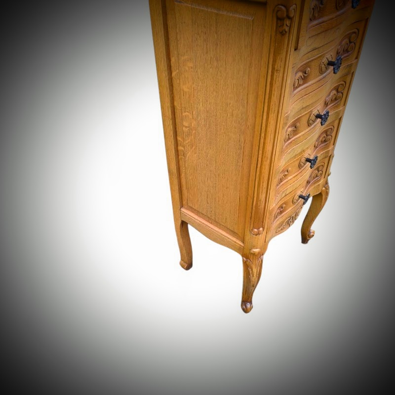 Mívesen kidolgozott fiókokkal.