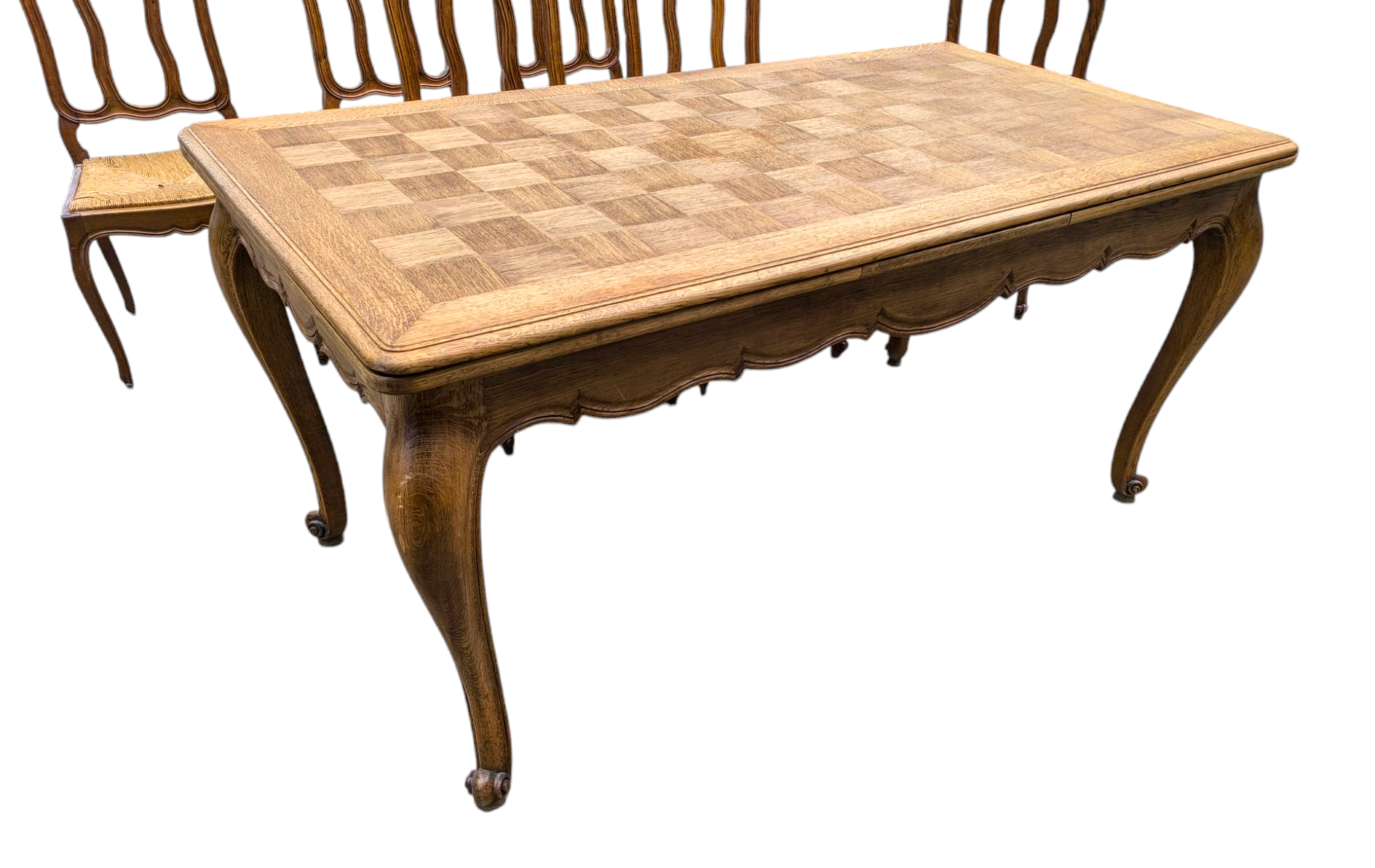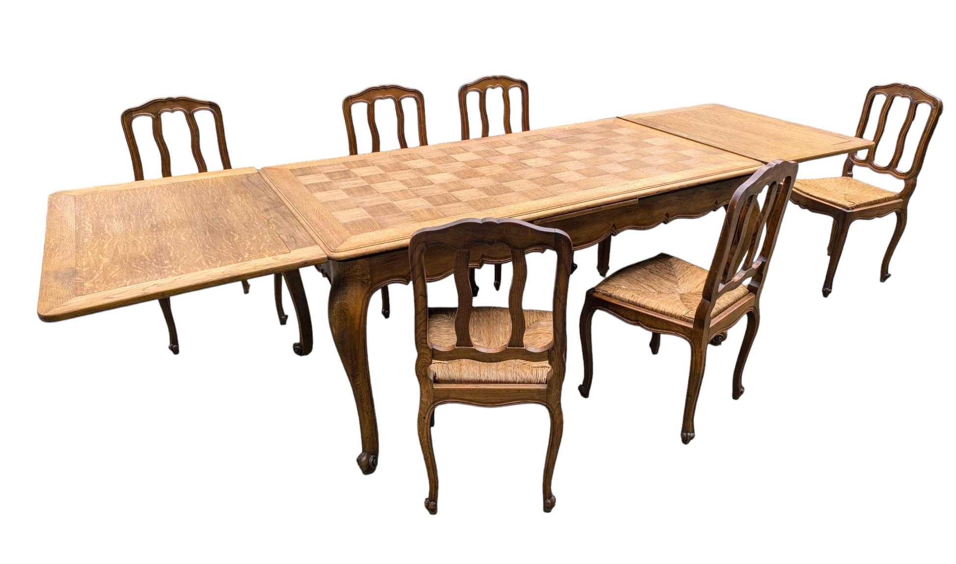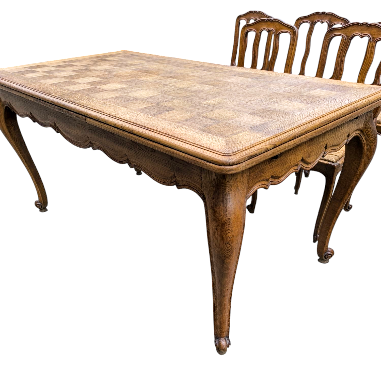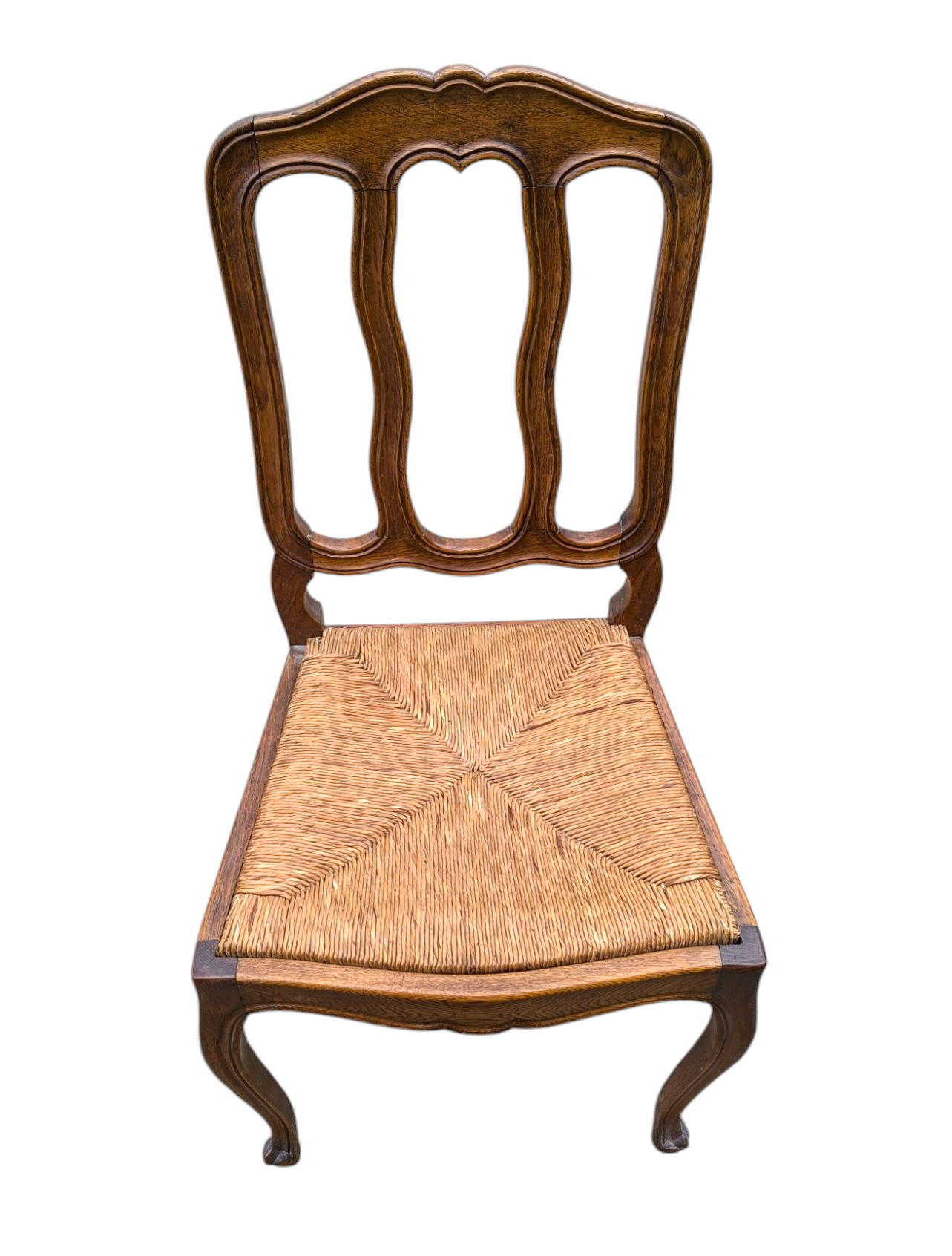 Eladó neobarokk étkező garnitúra szép állapotban. Kecses lábakkal, stabil szerkezettel, két oldalra hosszabbítható asztallappal. Hat darab kecses fa székkel,rattan ülőlappal amely kivehető így könnyen tisztítható. Teljes egészében fából készült. A termékeink között hozzá illő vitrin,tálaló és egyéb bútorok is találhatóak.